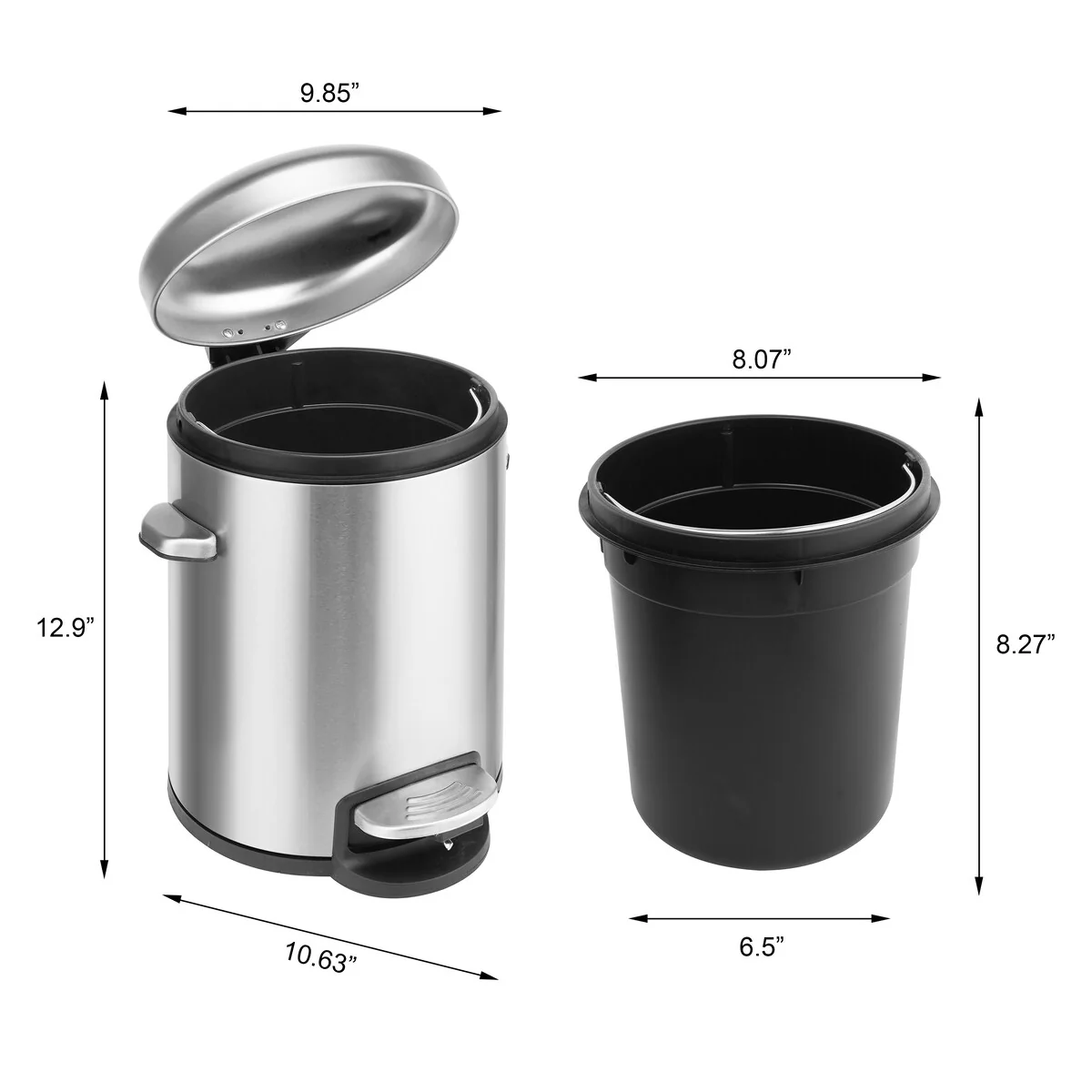 Innovaze 1.32 Gallon Stainless Steel Round Step-on Bathroom and Office Trash Can