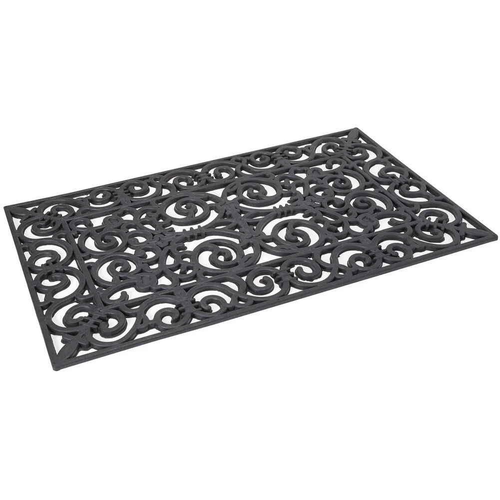 Envelor Fleur De Lis Wrought Iron Rubber Entrance Mat Welcome Doormat, 18 In. x 30 In.