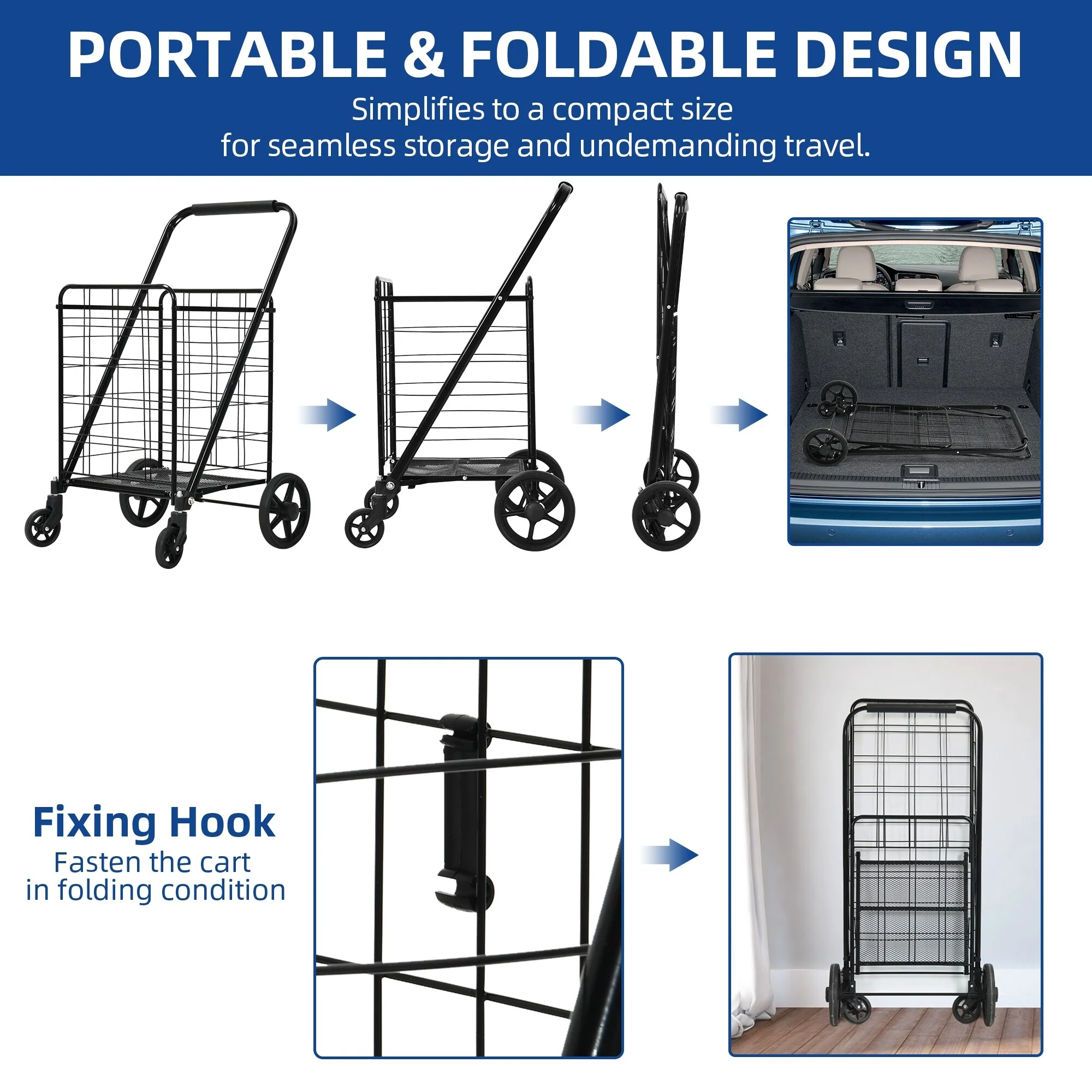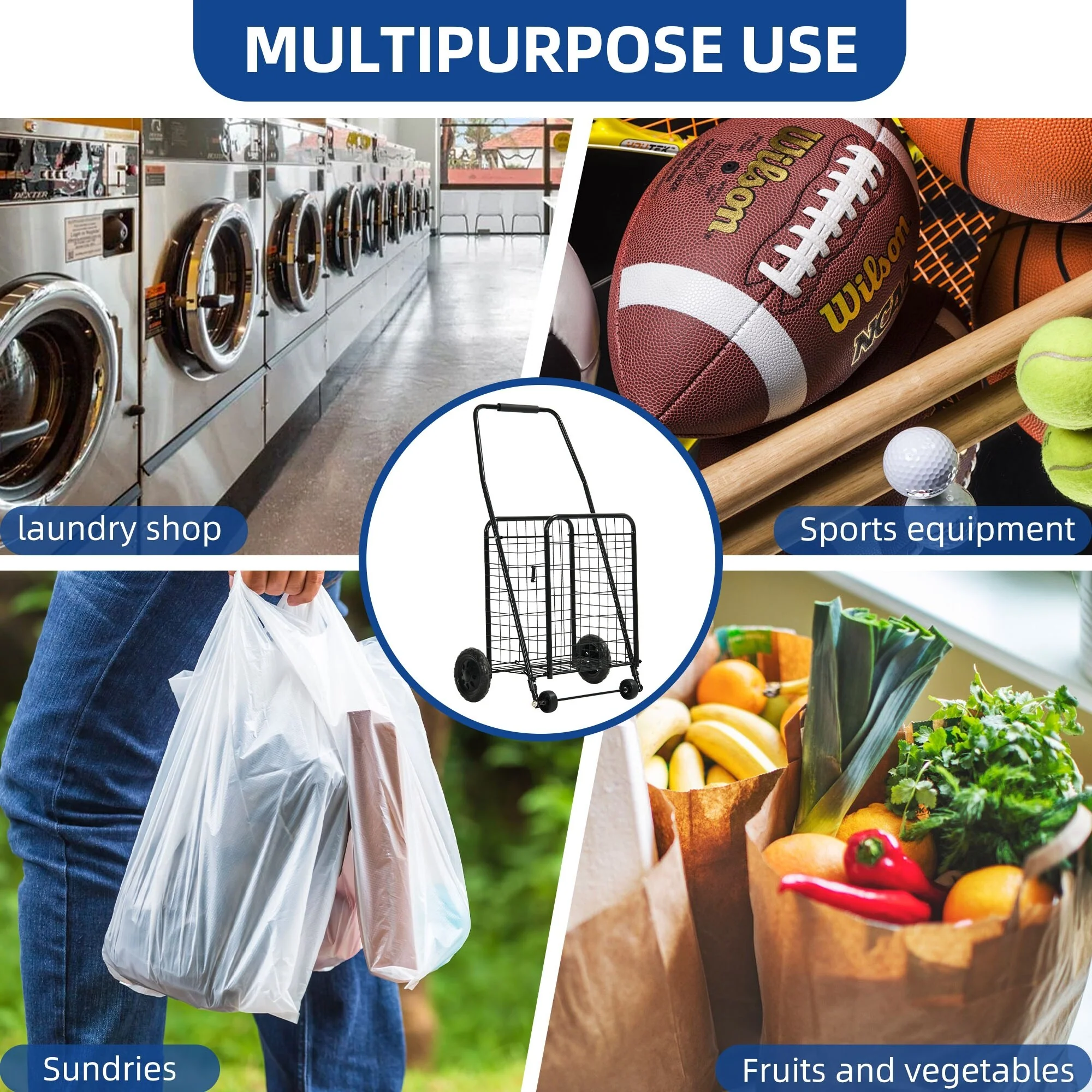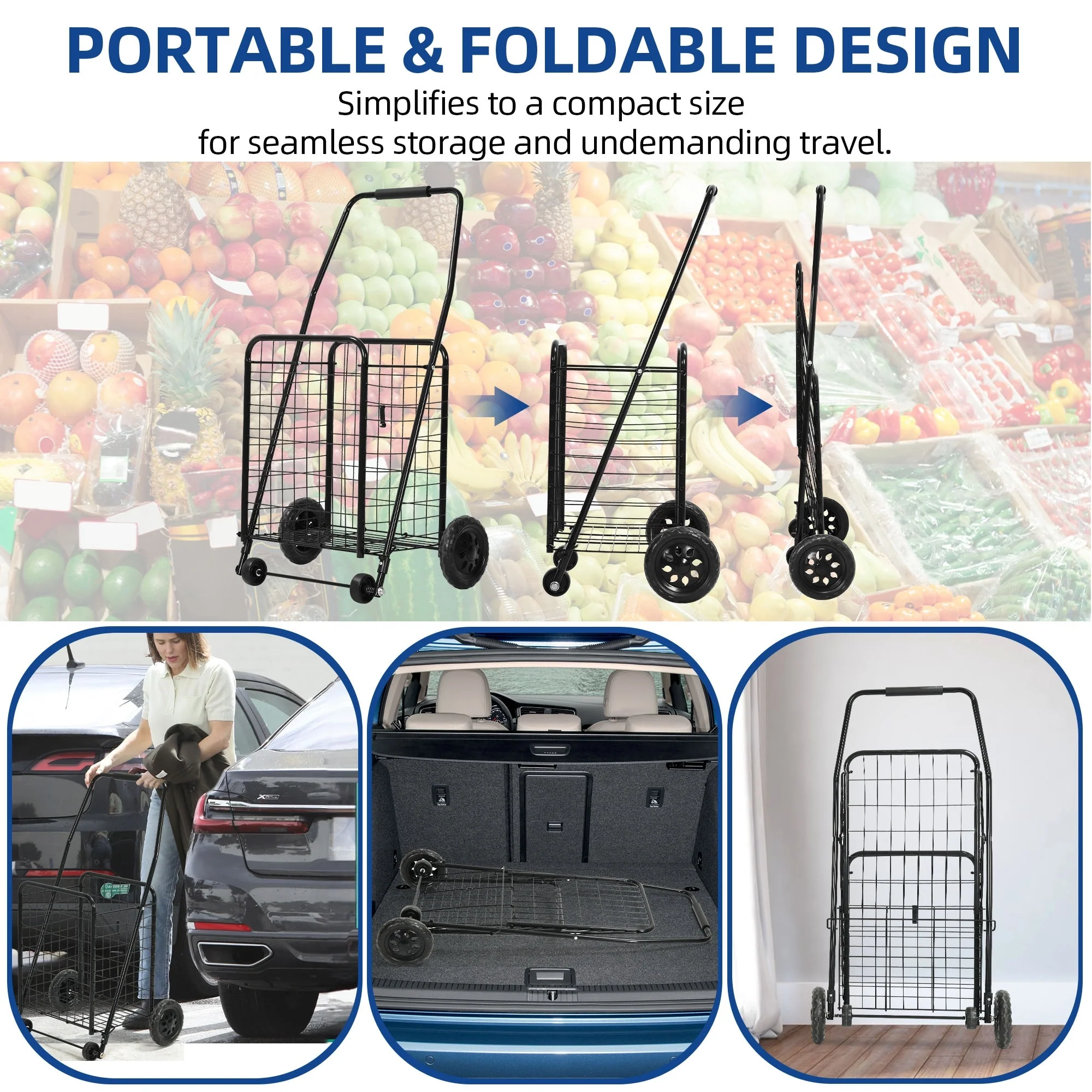 Moasis Utility Folding Shopping Cart Portable Trolley with Swivel Wheels