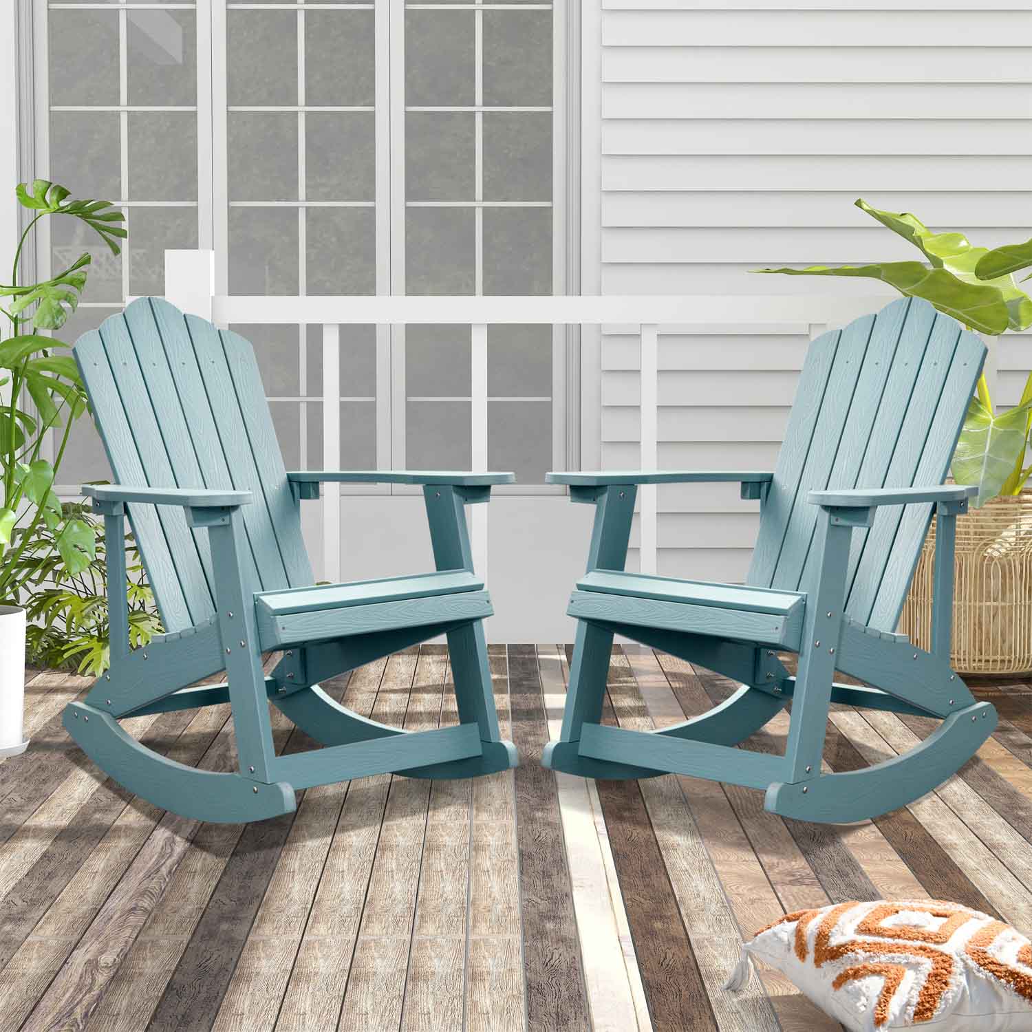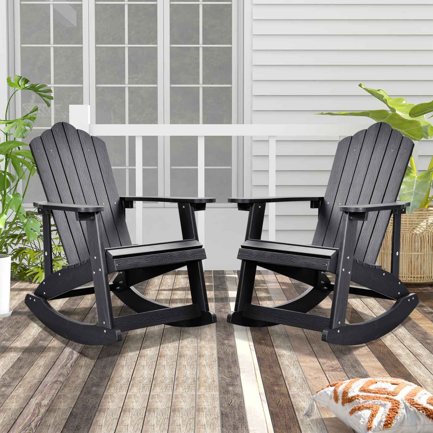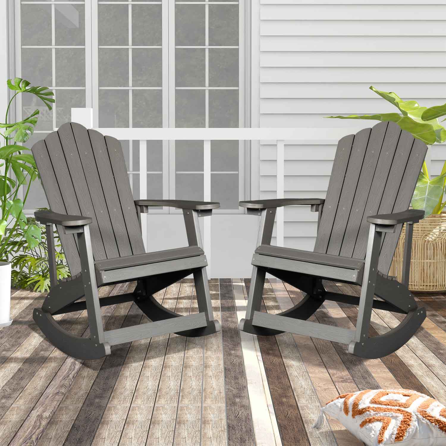 Ovios Rocking Adirondack Chair 2-Piece Waterproof Plastic Frame