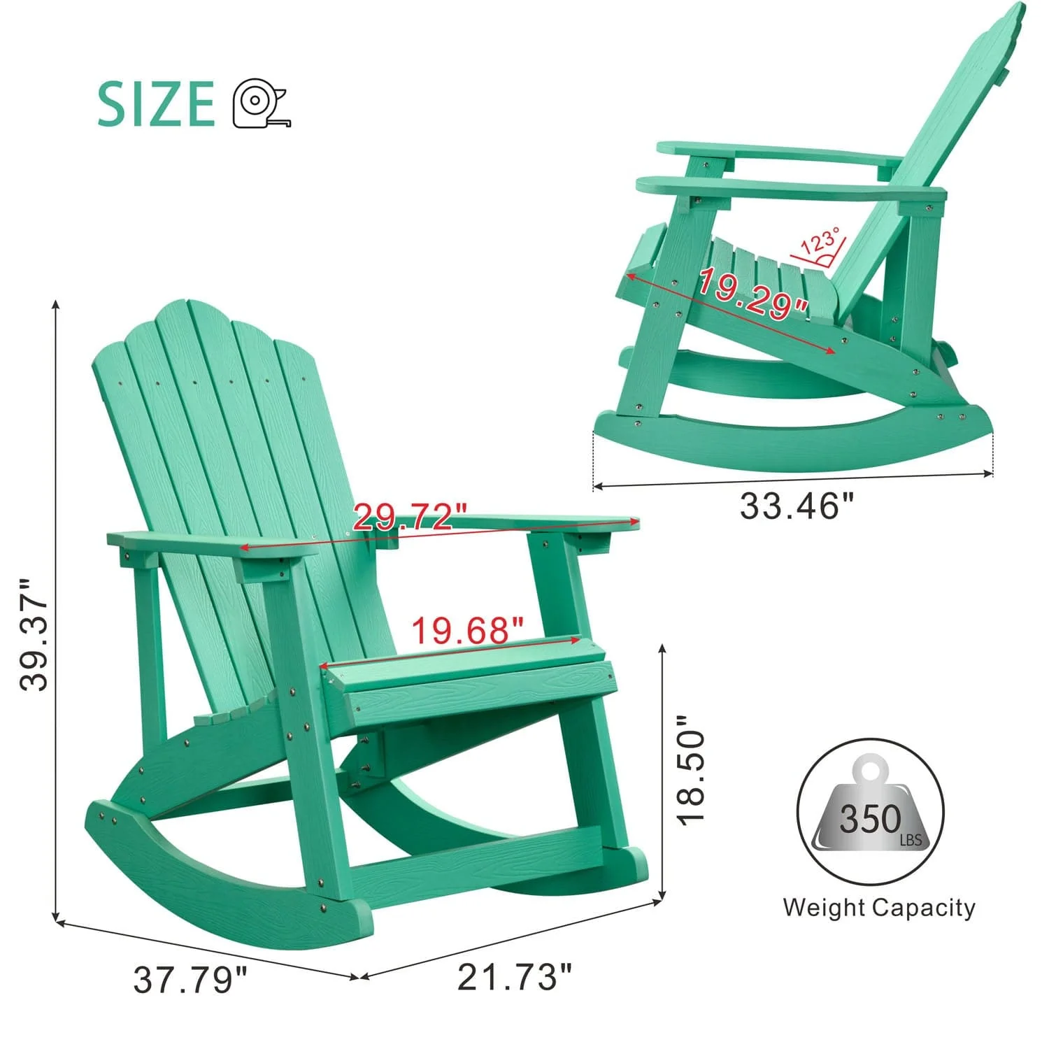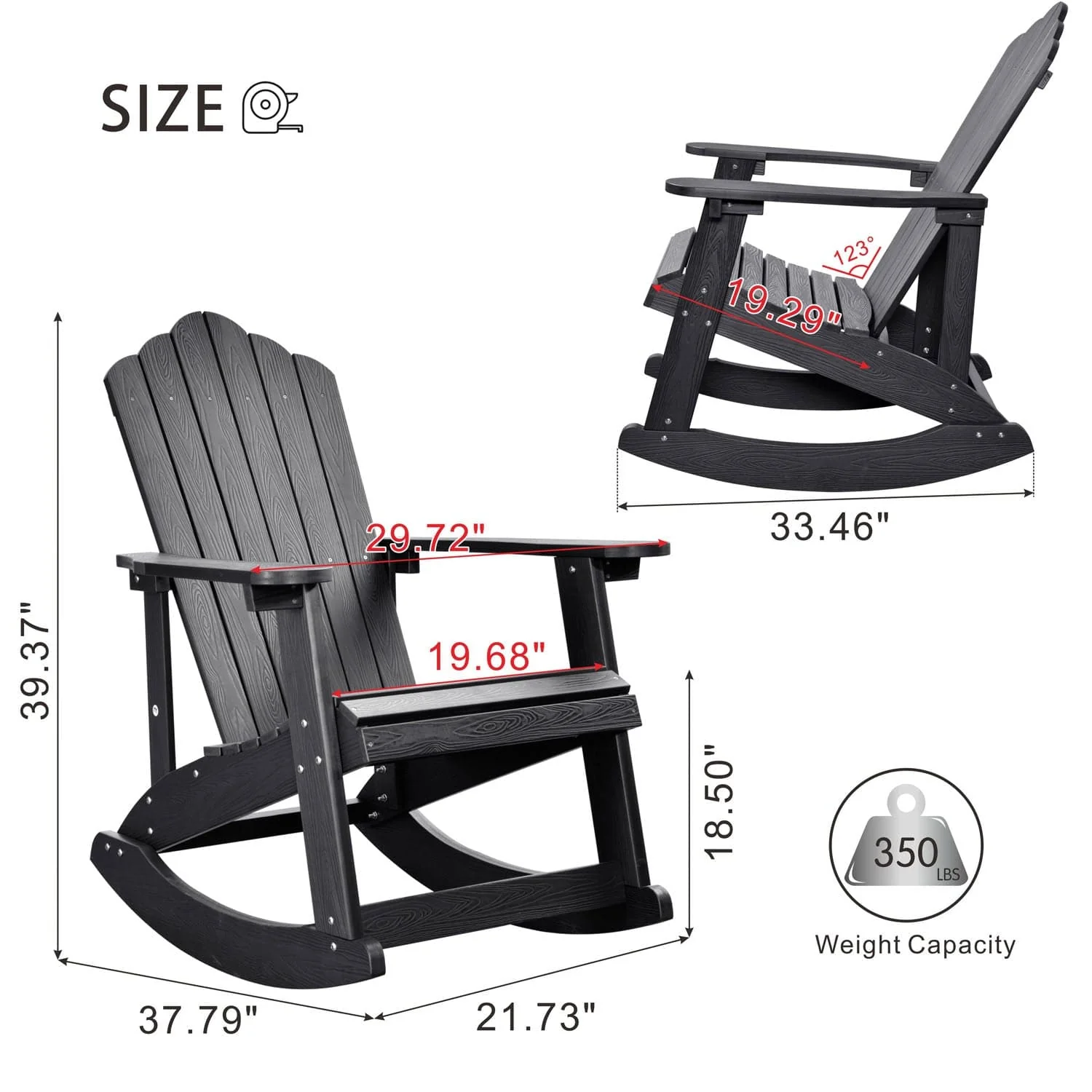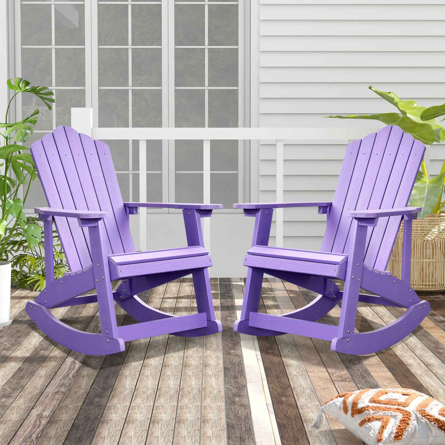 Ovios Rocking Adirondack Chair 2-Piece Waterproof Plastic Frame