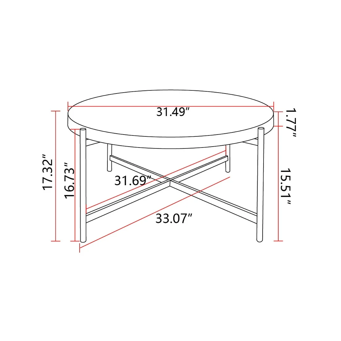 Round Coffee Table with Cross Legs Metal Base (Set of 2)