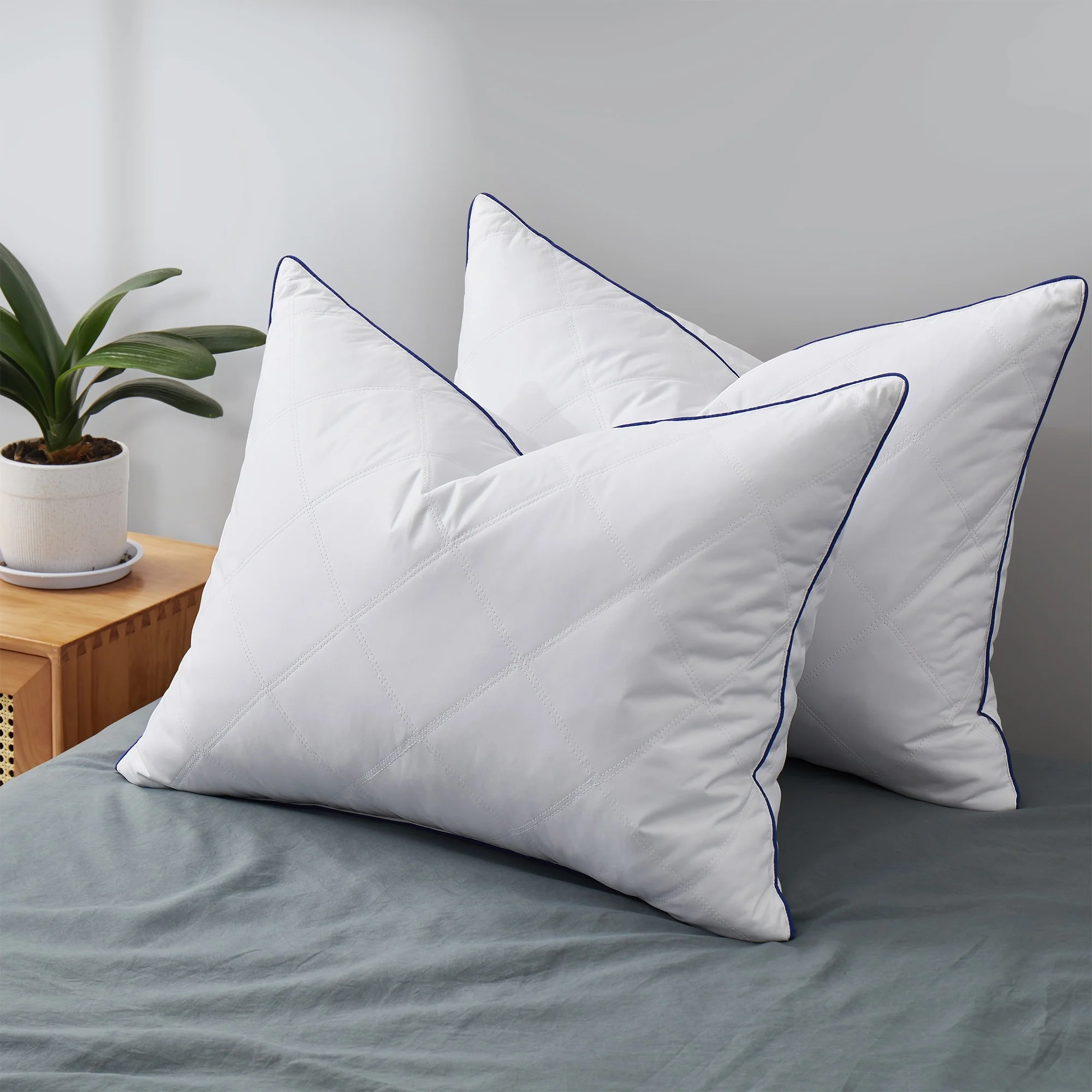 Set of 2 Medium Goose Feather Bed Pillows with Soft Microfiber Cover - White