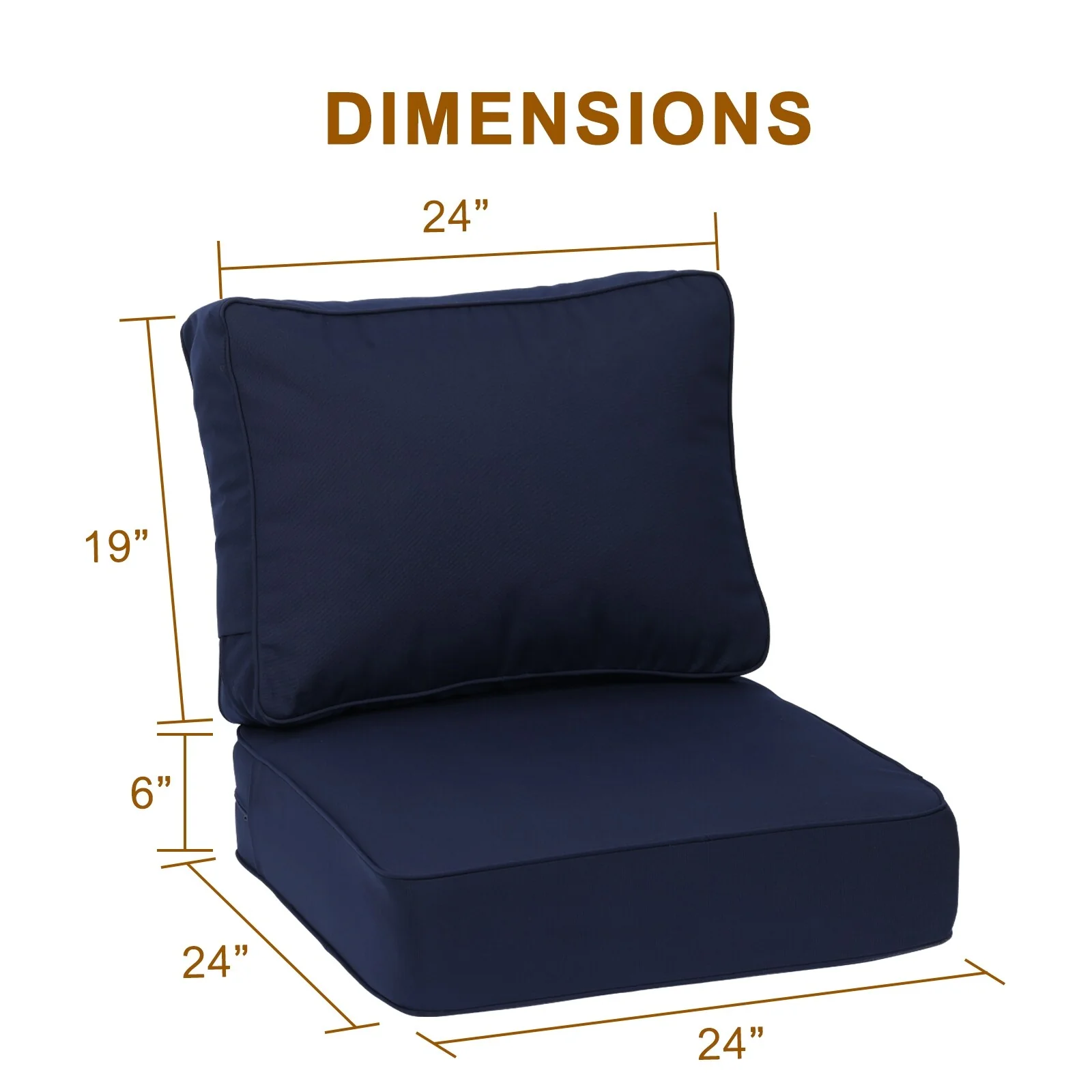 Aoodor 24x24x6 Inch Outdoor Patio Chair Cushions Set, Weather-Resistant Sunbrella Fabric Outdoor Cushion - 24"x24"