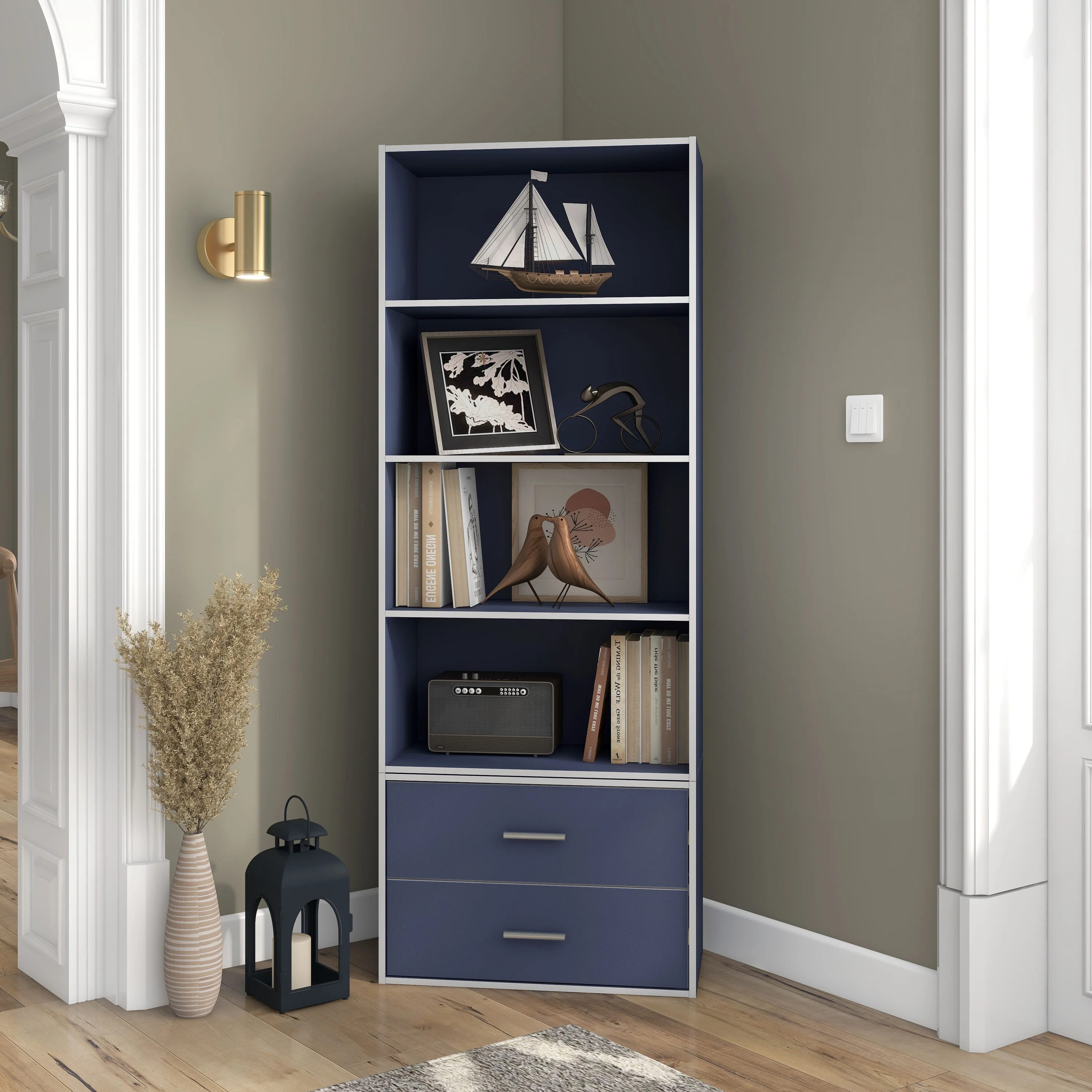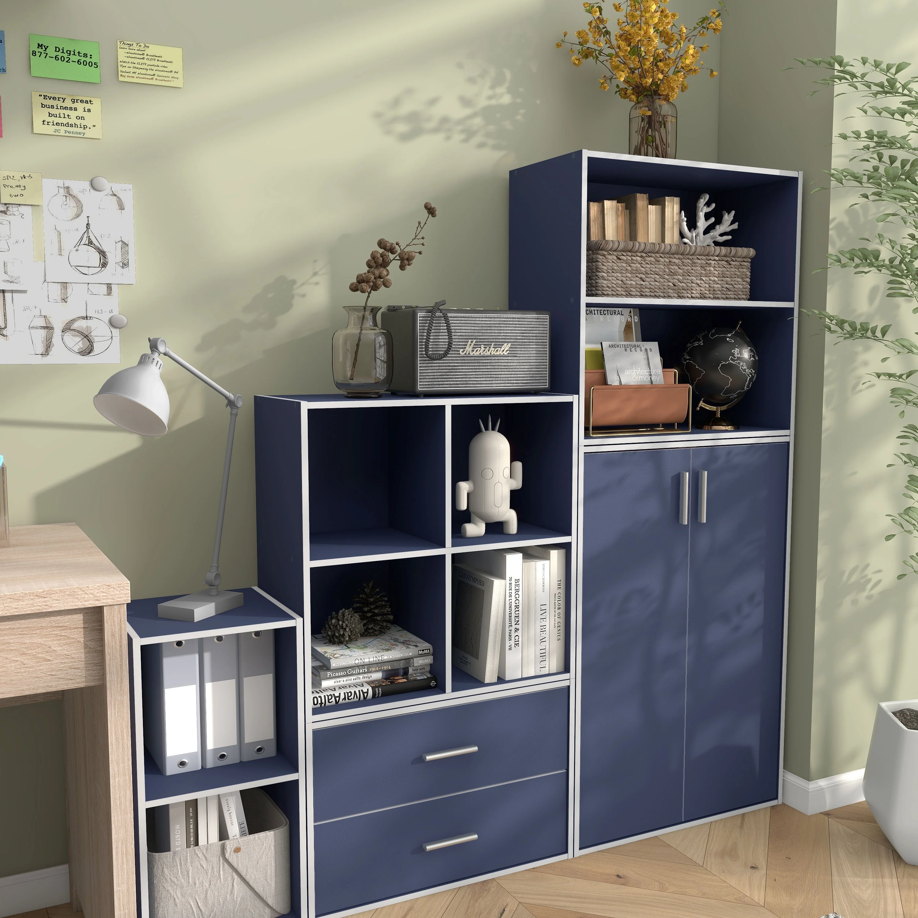 DH BASIC Modern Wood Customizable Stackable Storage Organizer - Cube Shelves, Drawer Cabinet, Bookcase with Doors by Denhour