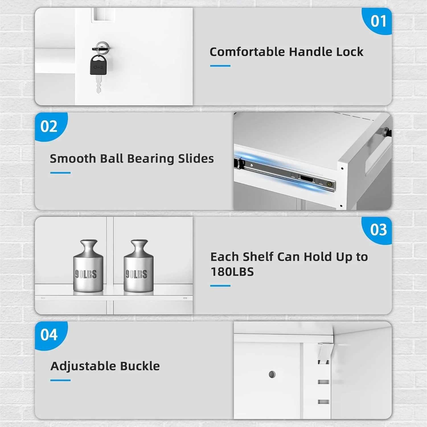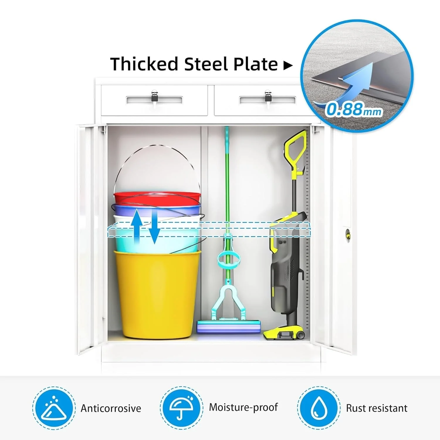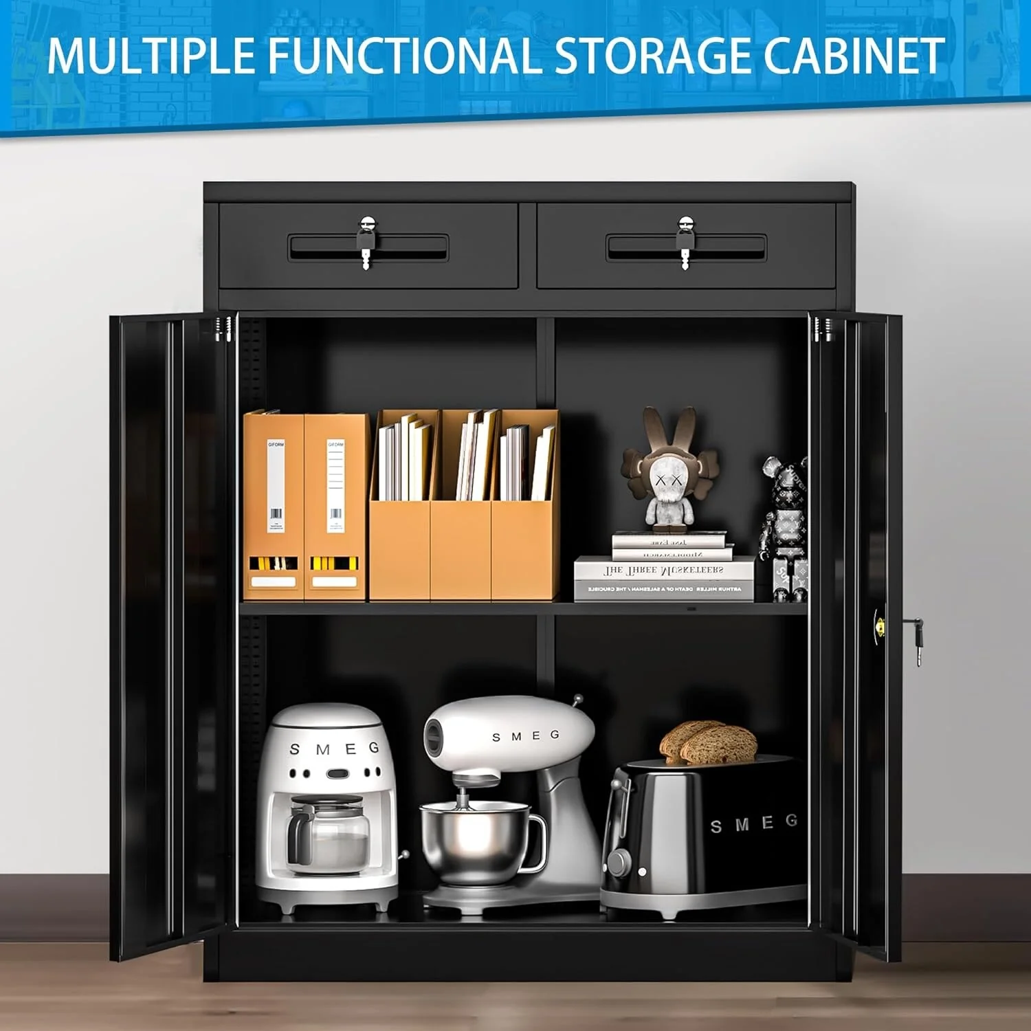 42'' Locking Metal Storage File Cabinet with Drawers and Adjustable Shelves for Home Office, Garage