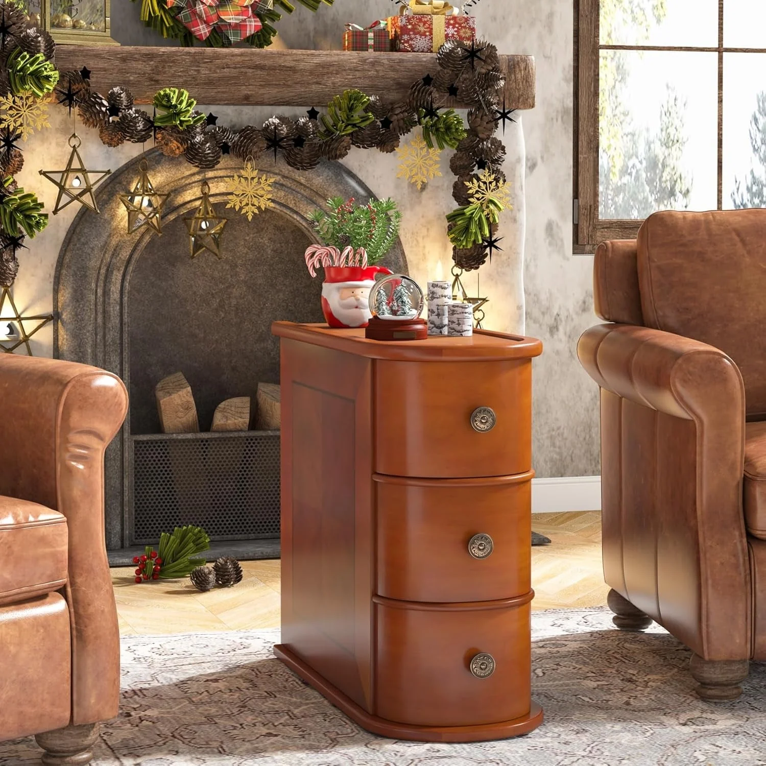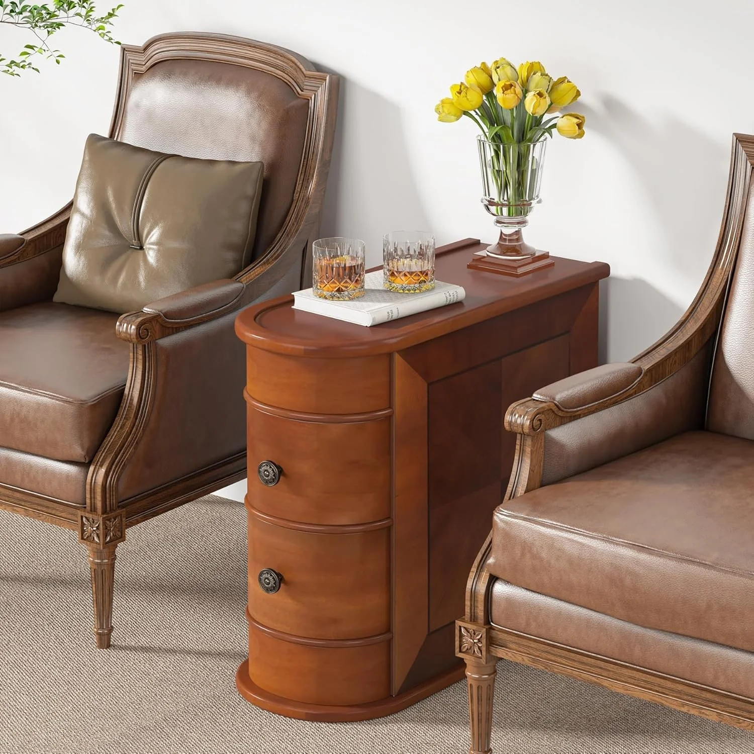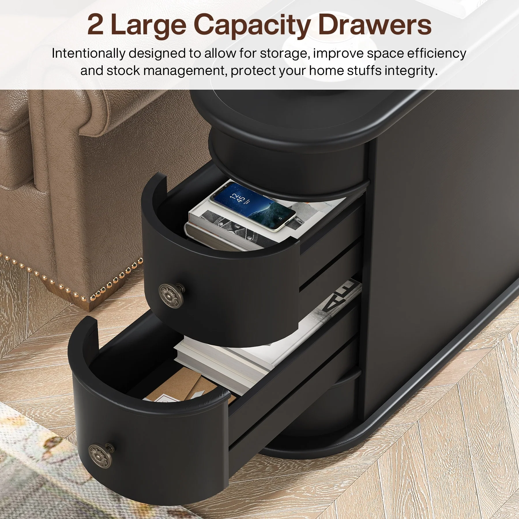 Sofa End Table, Wood Nightstand with 2 Drawers No Assembly Required