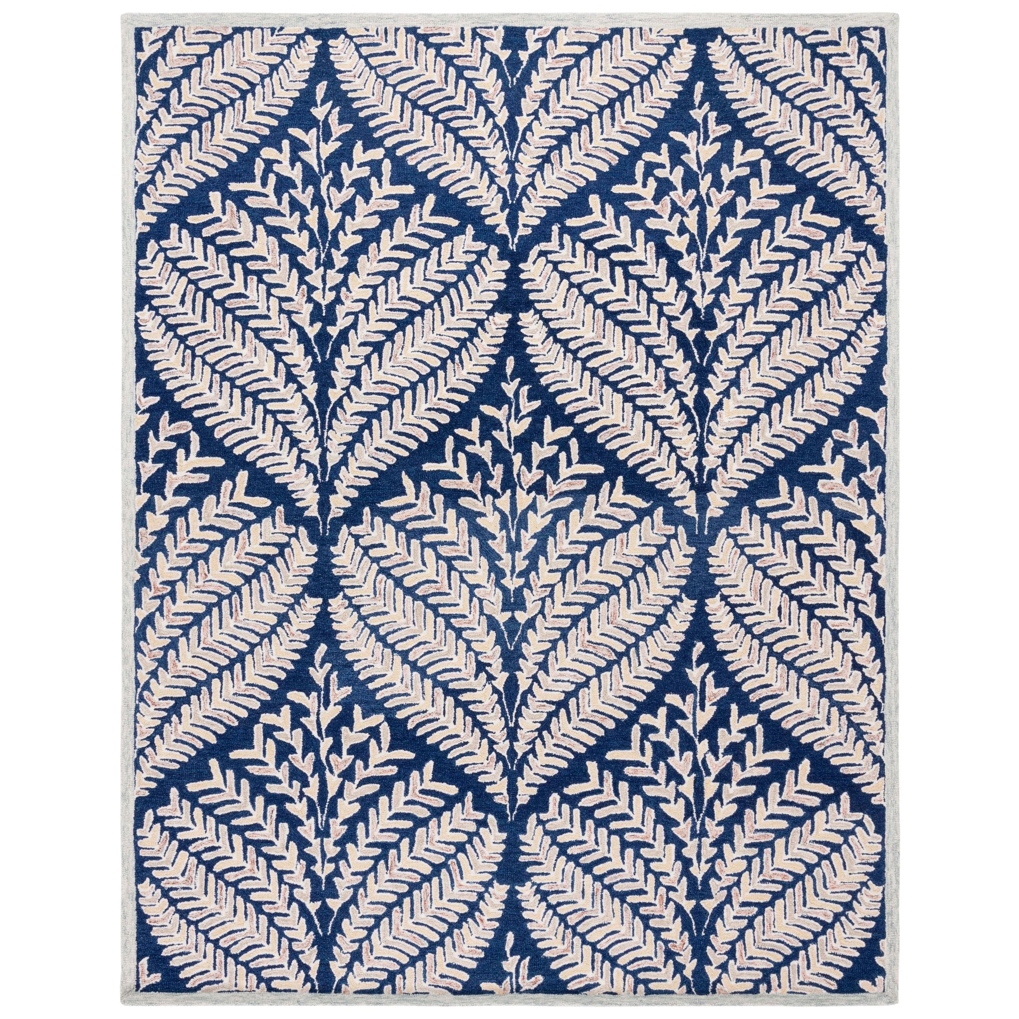 Brown Wicker Navy Blue Cushion