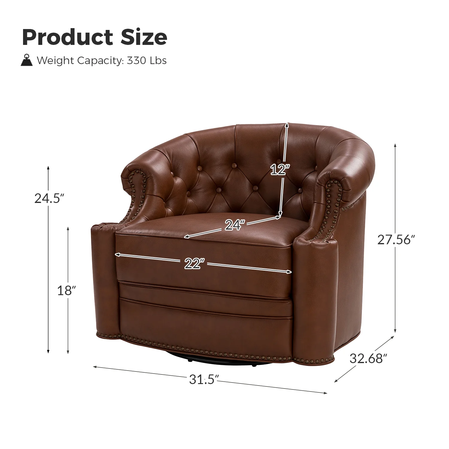 Alonso Classic Chesterfield Genuine Leather Swivel Chair