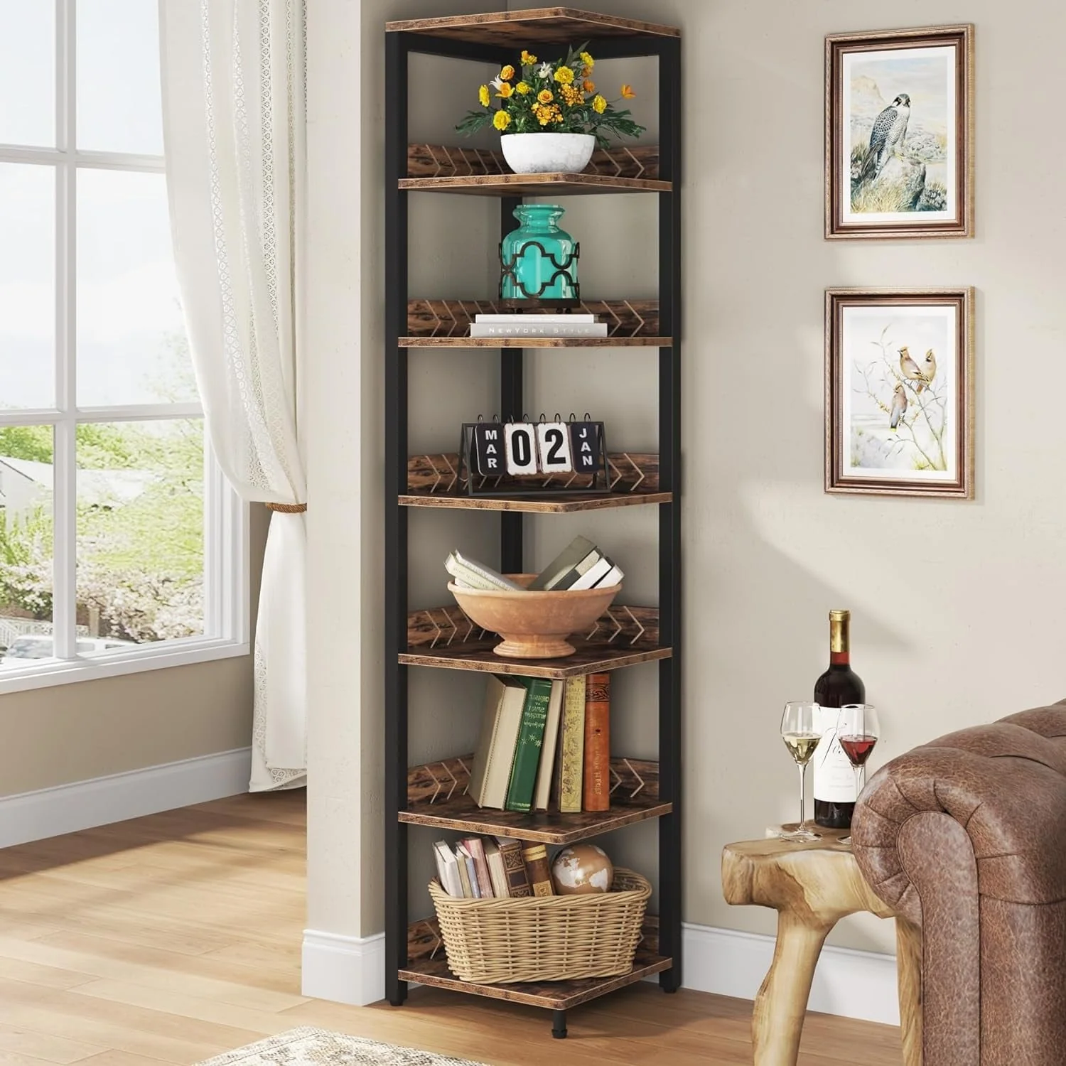 6-Tier Corner Shelf, 76.7-Inch Tall Narrow Bookshelf Storage Rack