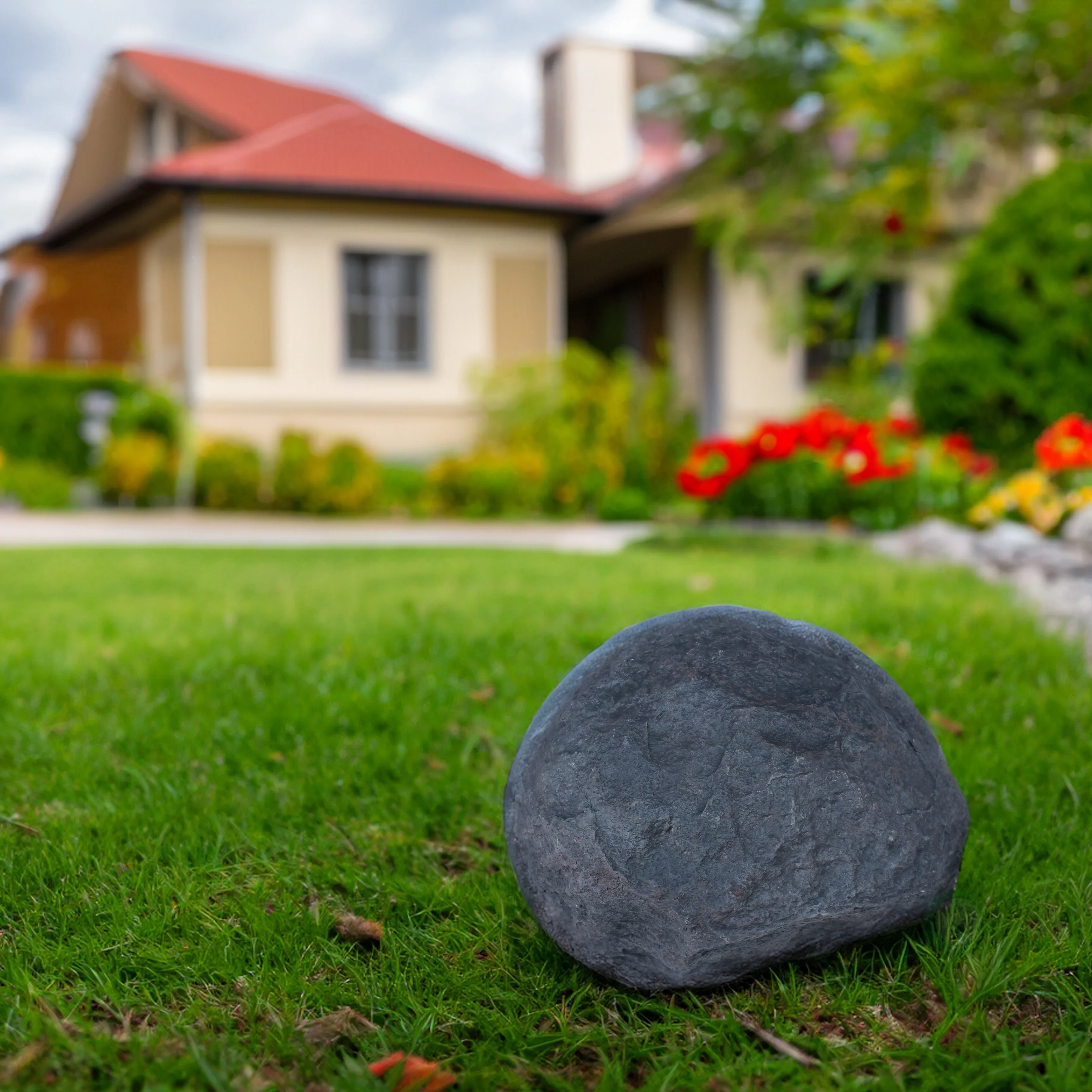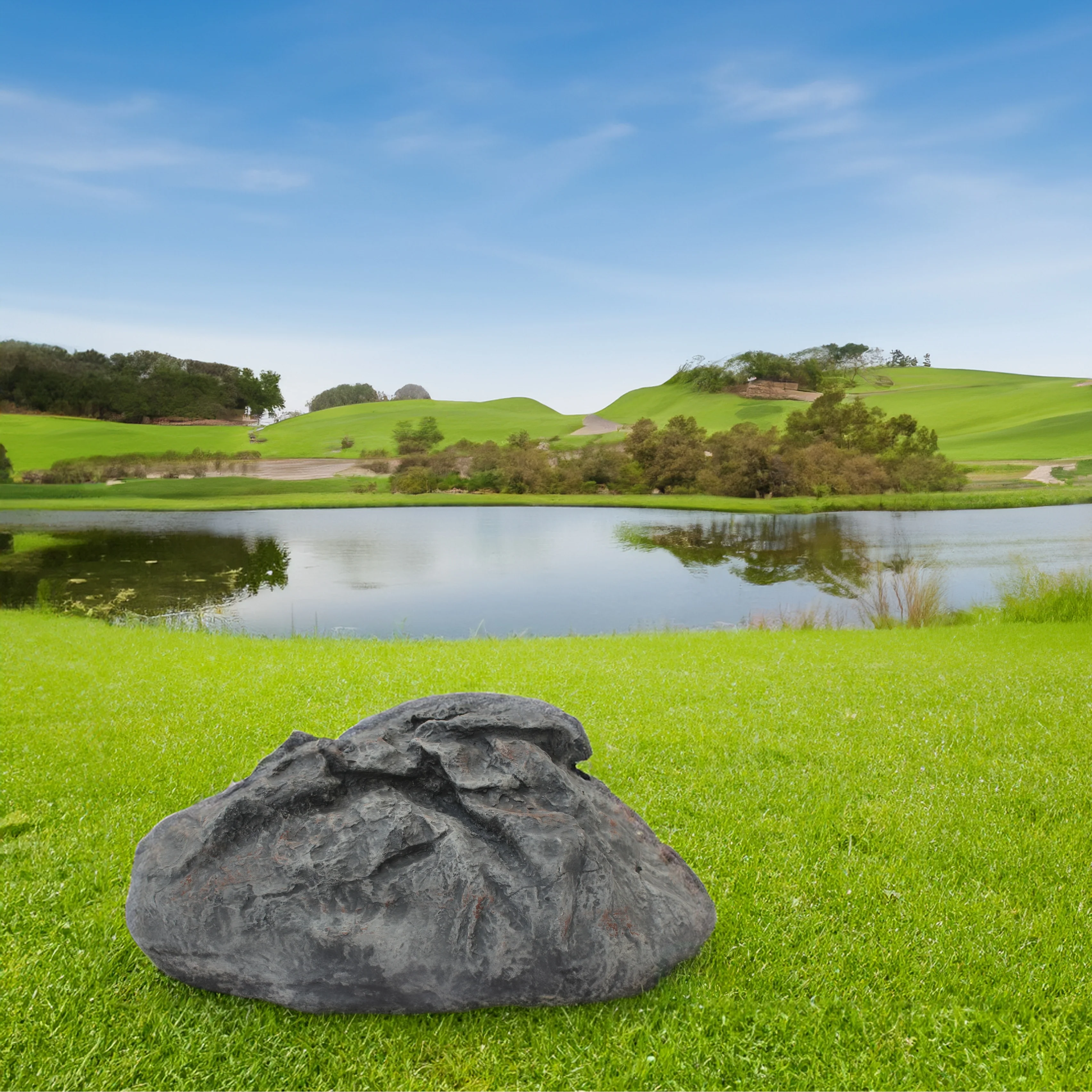 Decorative Outdoor Weather-Resistant Artistic Artificial Faux Stone Rock, Garden Patio Granite Grey Fiberglass Stone