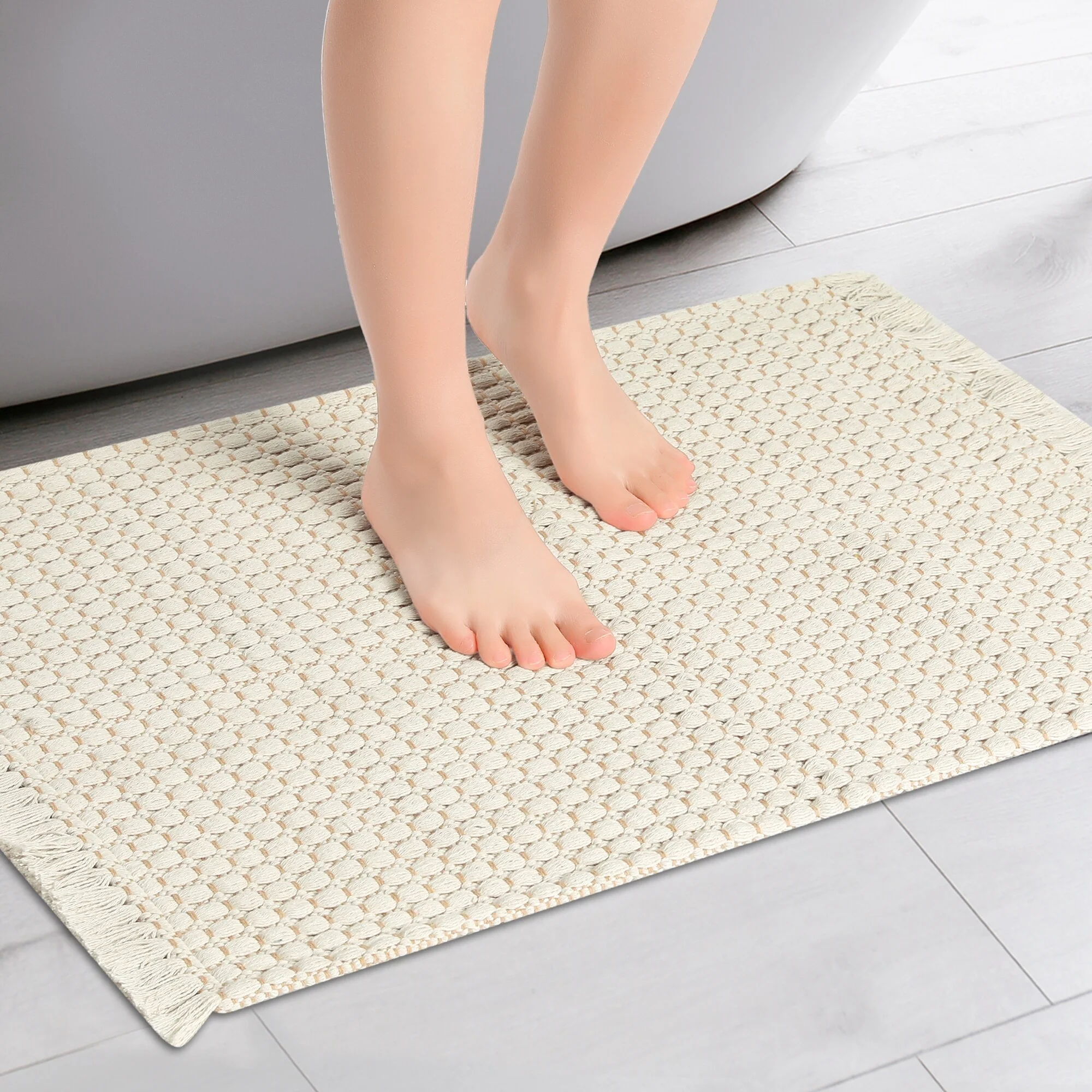 Boho Bathroom Rug, Woven Tecture Rug for Bedroom Throw Rug with Fringe