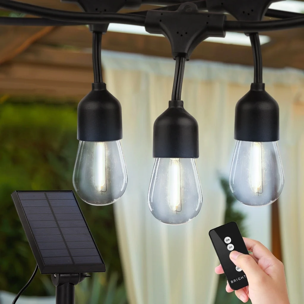 Brightech Ambience Pro 12-Light 27 ft. Outdoor Solar 1W 3000k LED S14 Hanging Remote Control Edison Bulb String-Light
