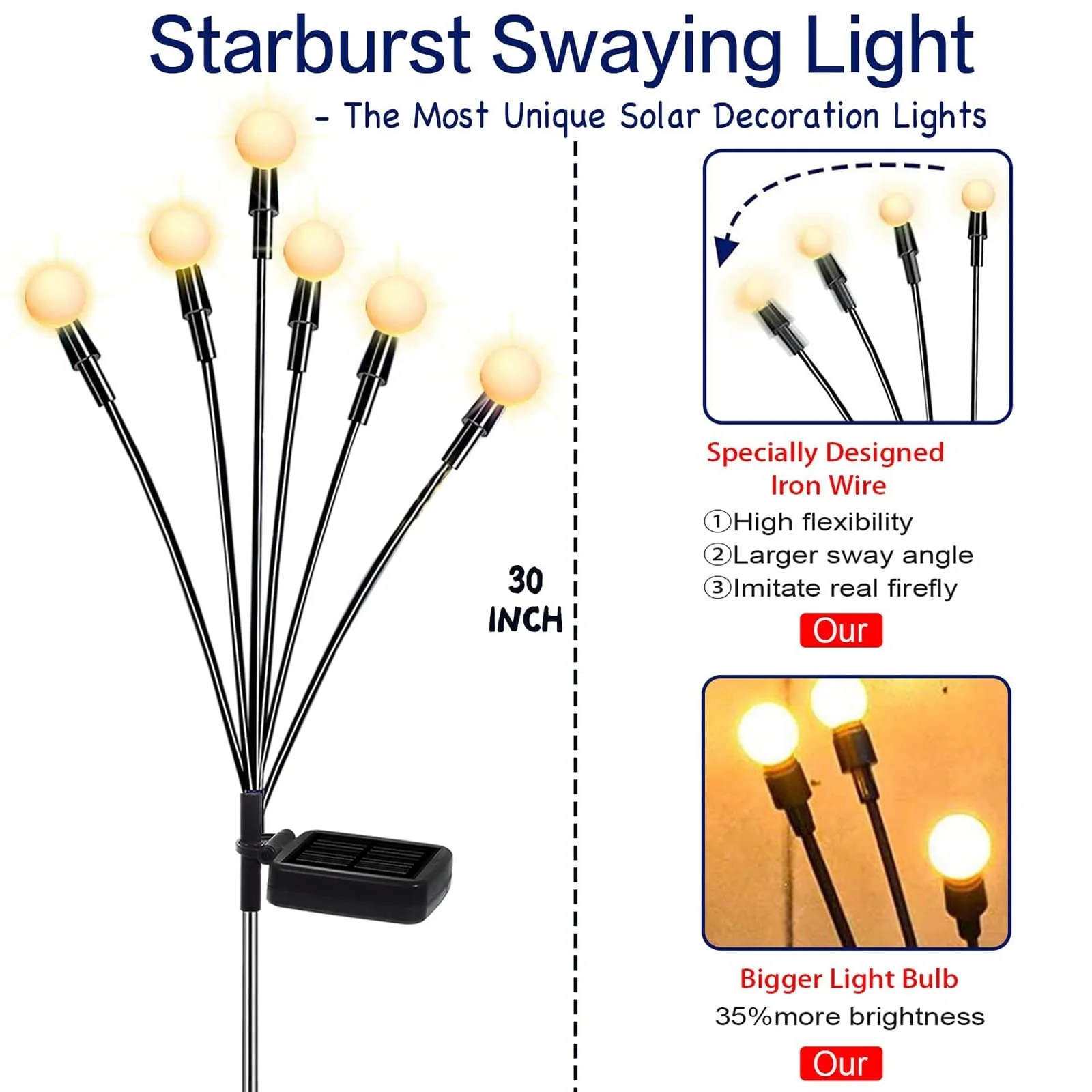 Solar Powered Firefly Lights,8 Pack 8 Led Solar Lights Outdoor Waterproof,Warm White Light Bulbs Starburst Swaying