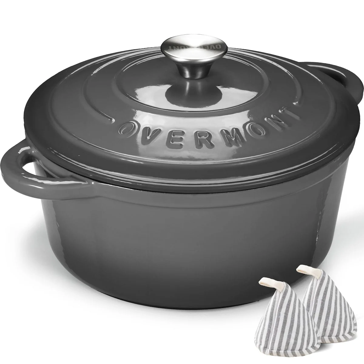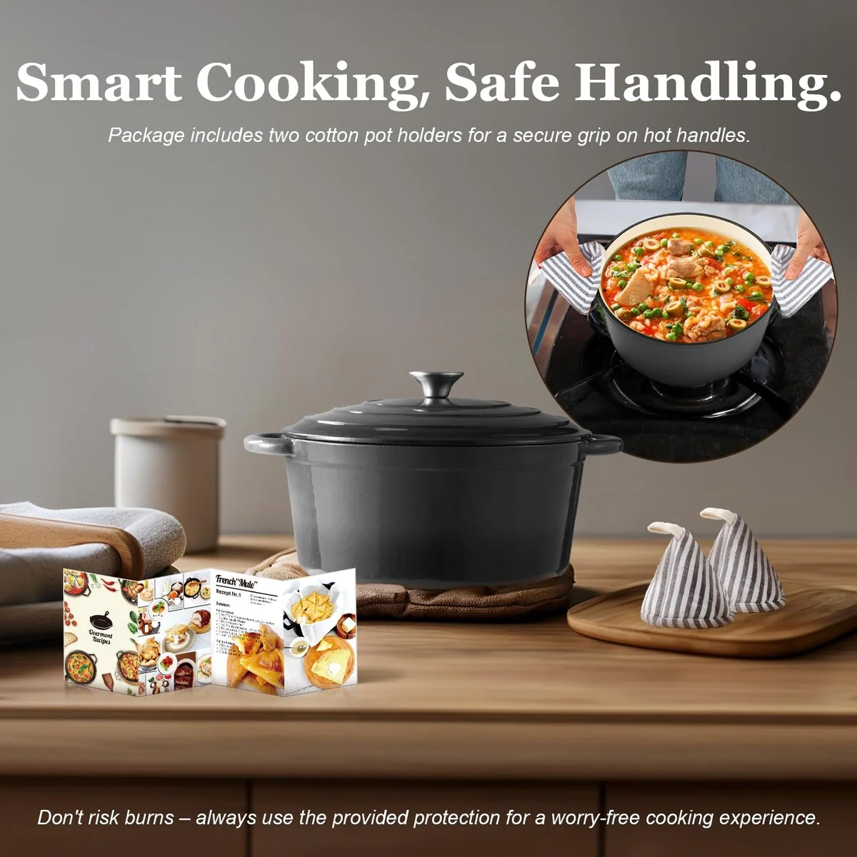 Cast Iron Dutch Oven - 5.5QT Pot with Lid Cookbook & Cotton Potholders - Heavy-Duty Cookware for Braising, Stews, Roasting