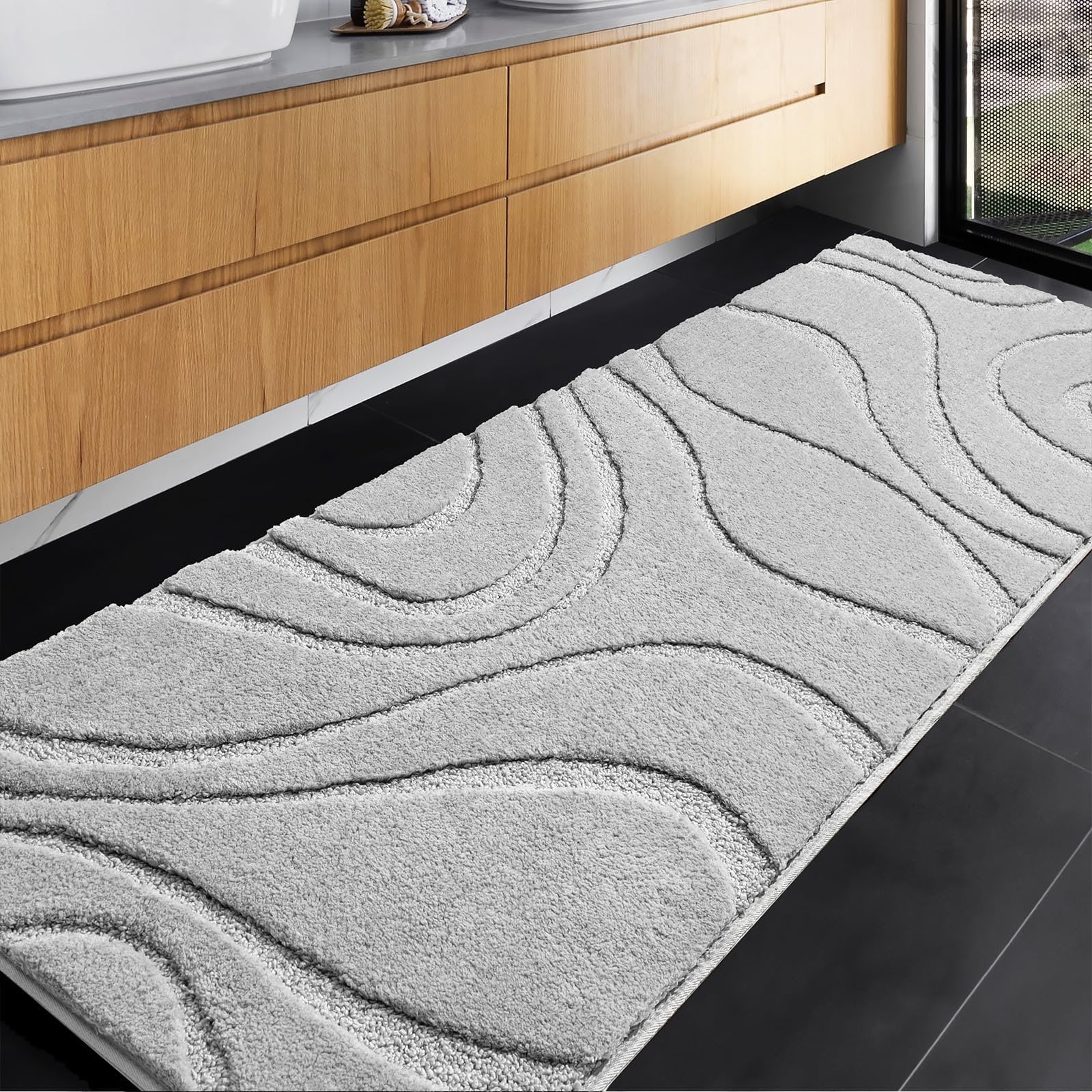 Rugs Runner 24 x 60 Inch, Extra Long Non-Slip, Machine Washable Bath Mats, Light Gray Soft Carpets for Bathroom Showe
