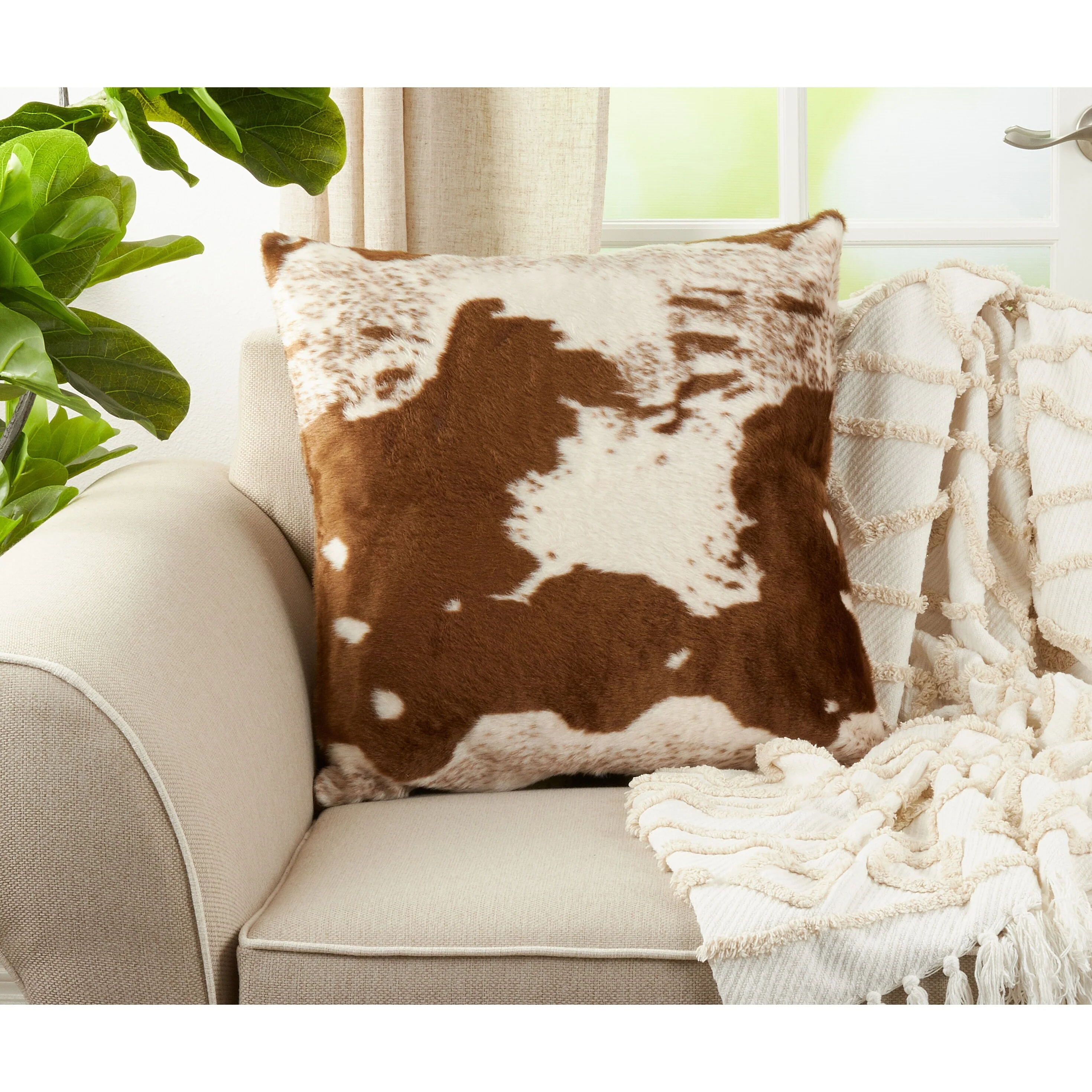 Urban Faux Cowhide Poly Filled Throw Pillow