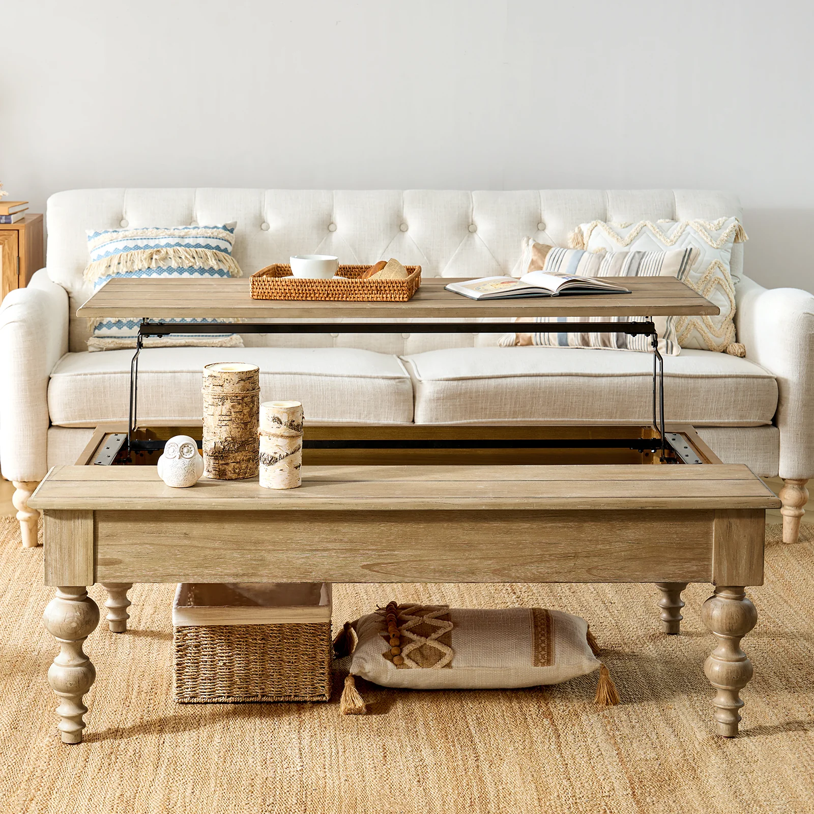 Cynthia Lift Top 4 Legs Ottoman Coffee Table with Storage
