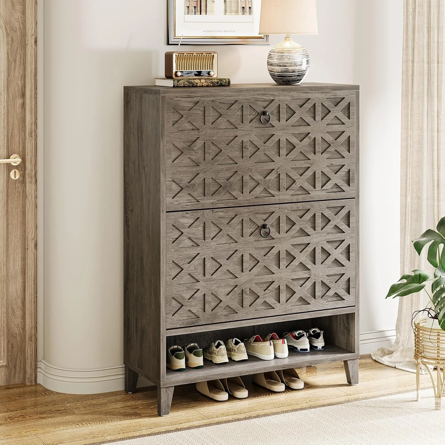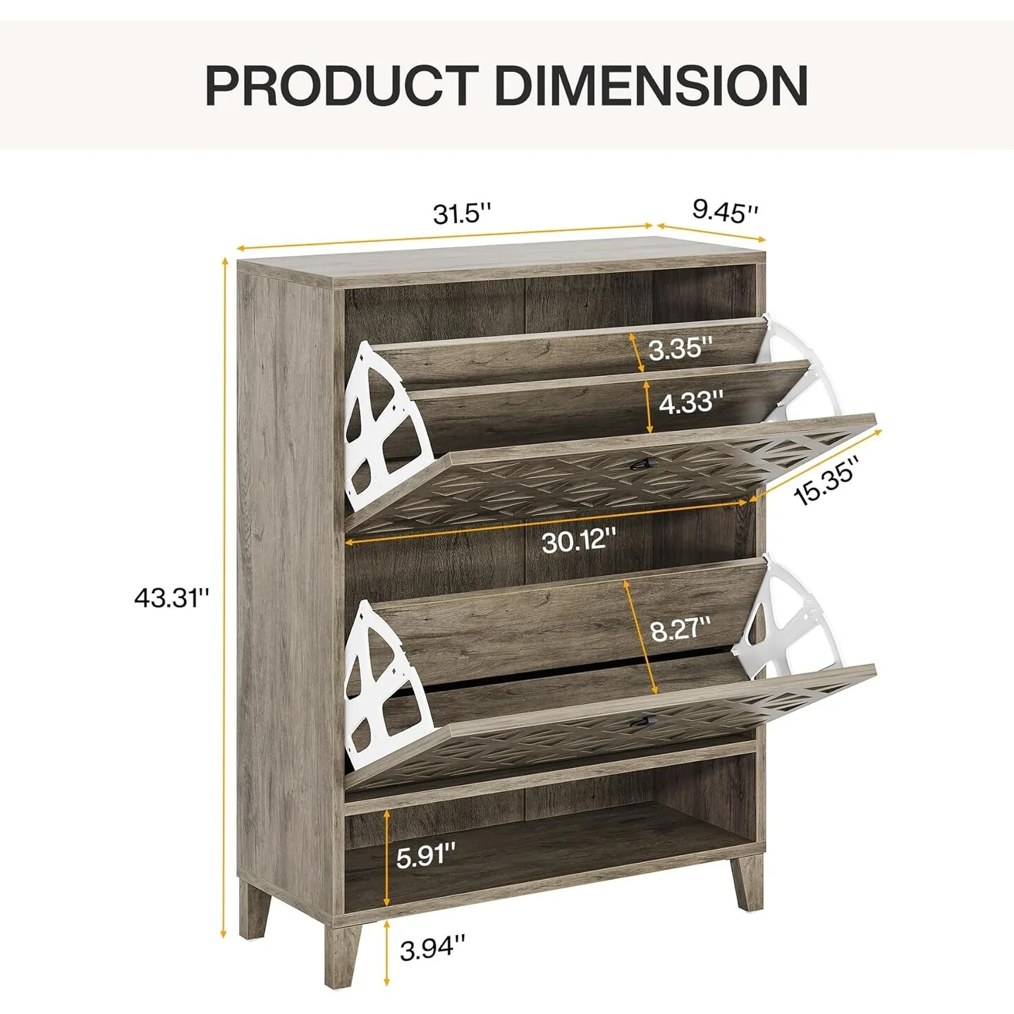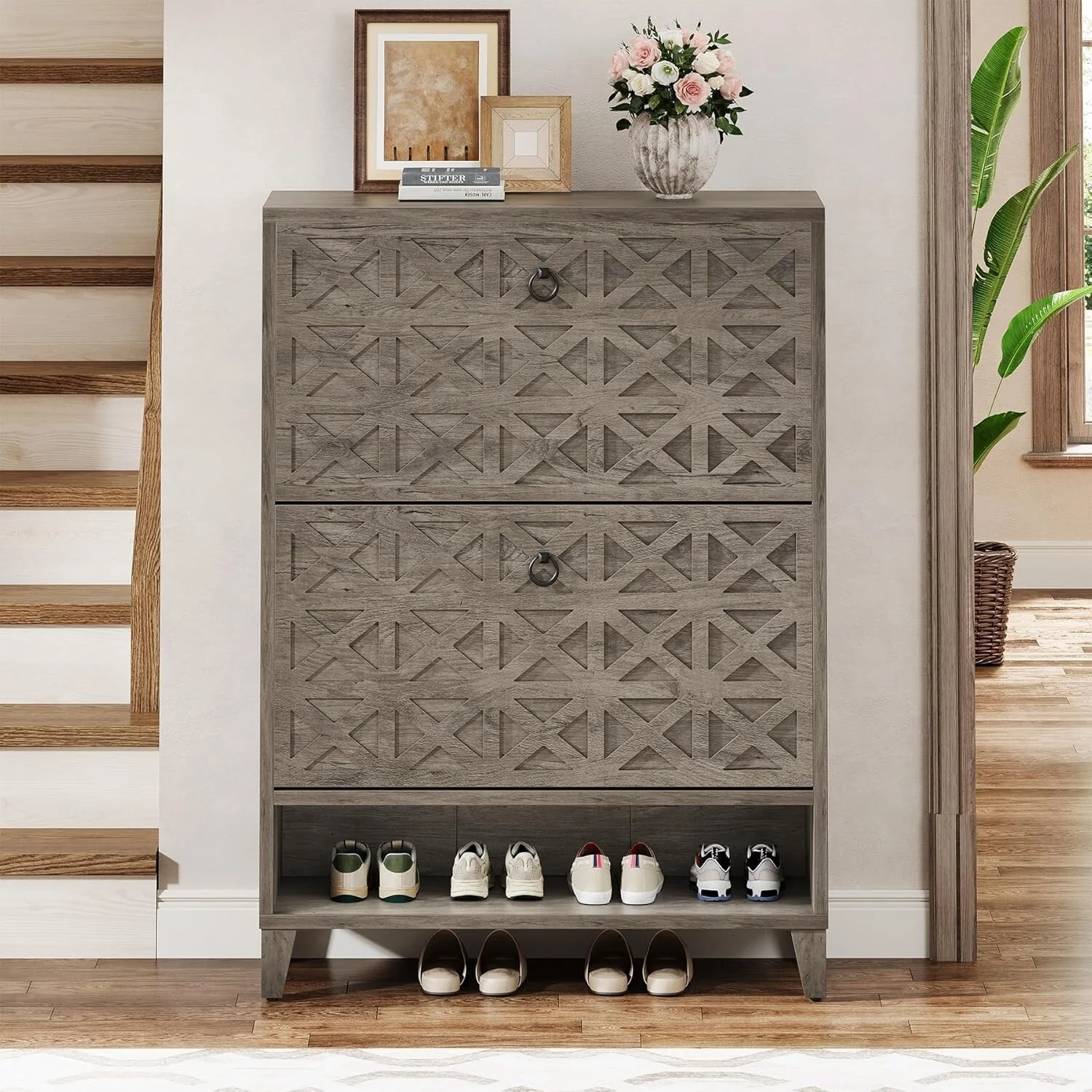 Narrow Hidden Shoe Storage Cabinet with 2 Flip Drawers