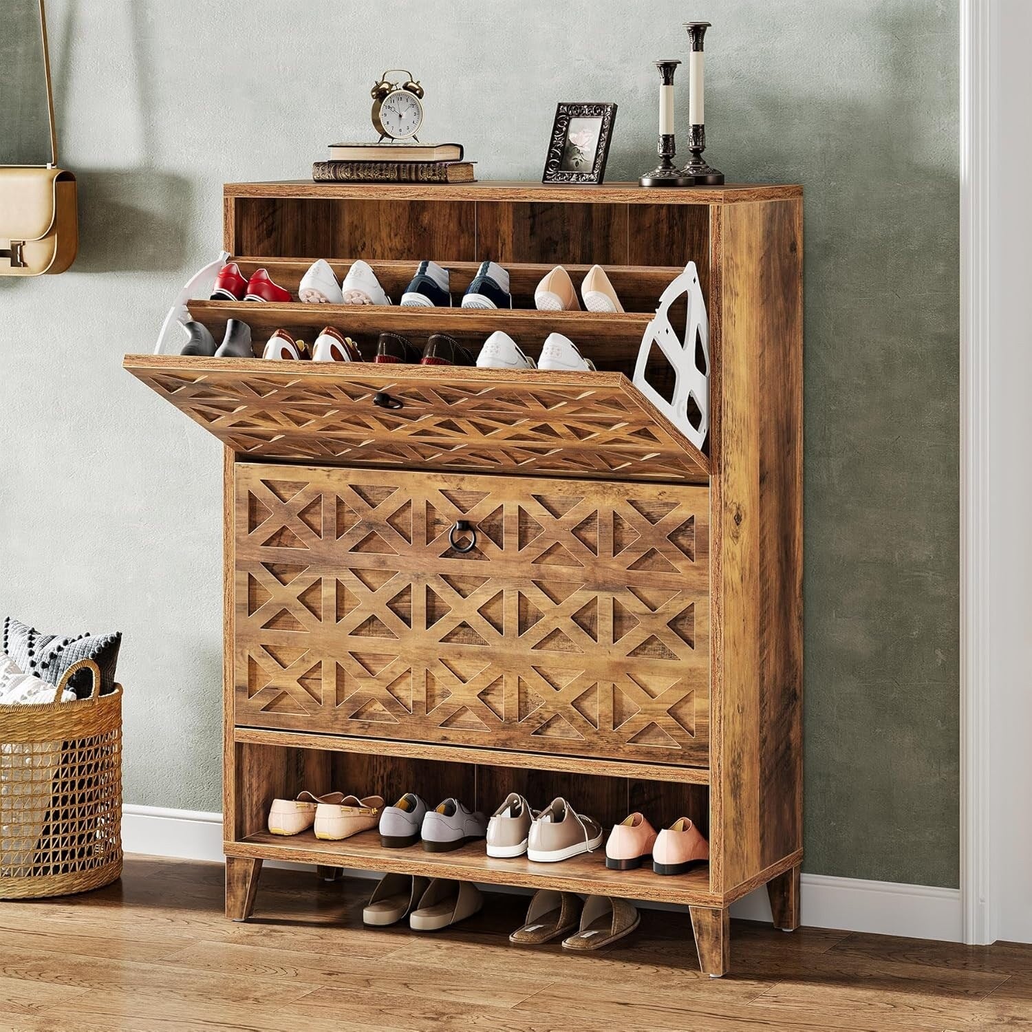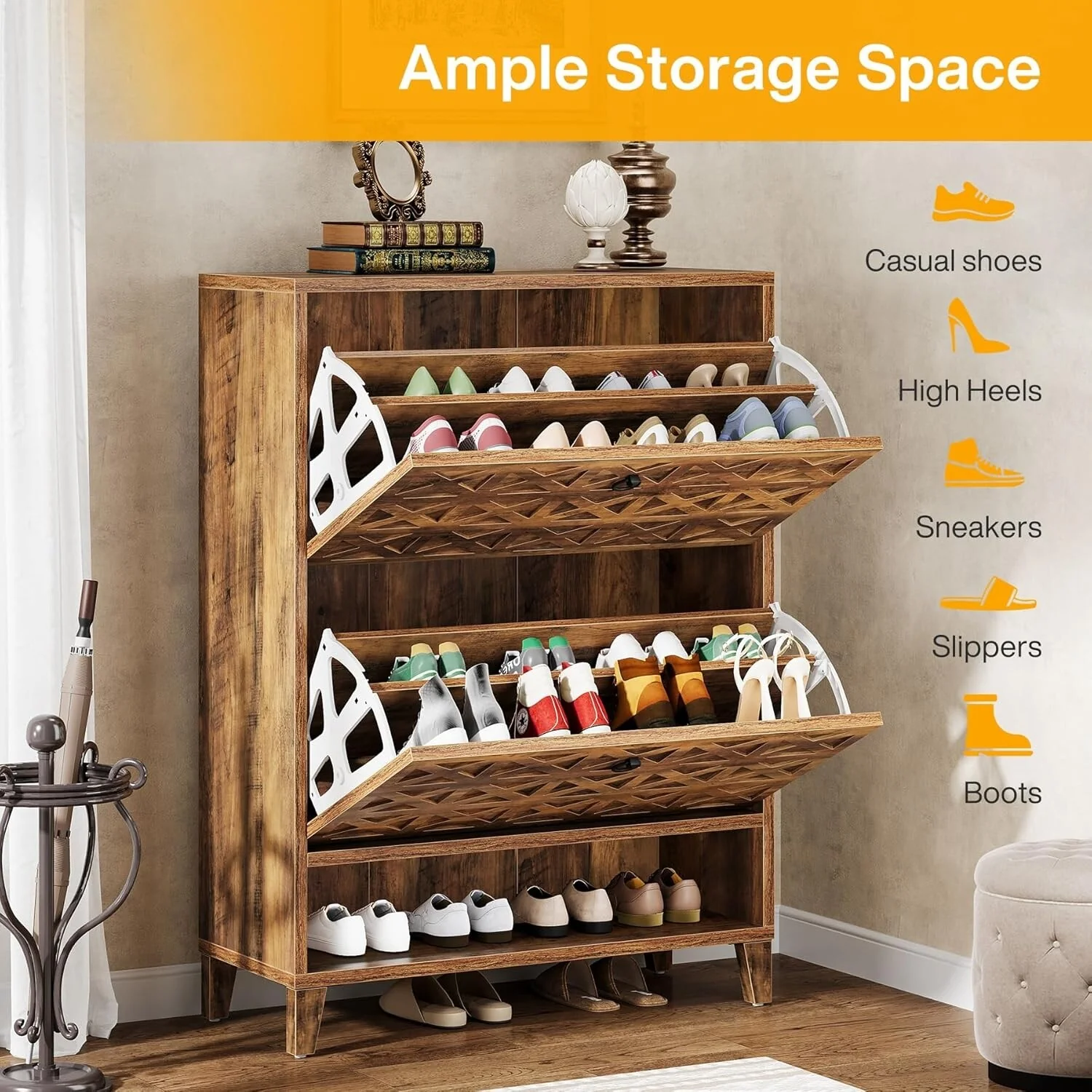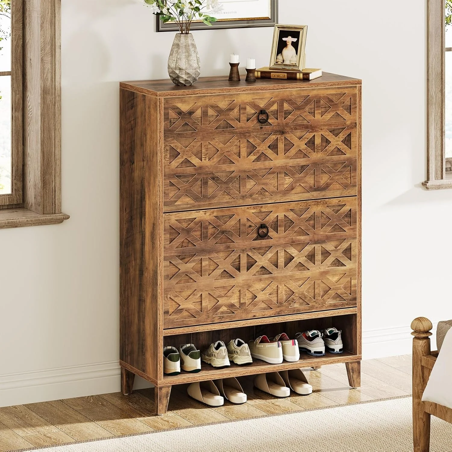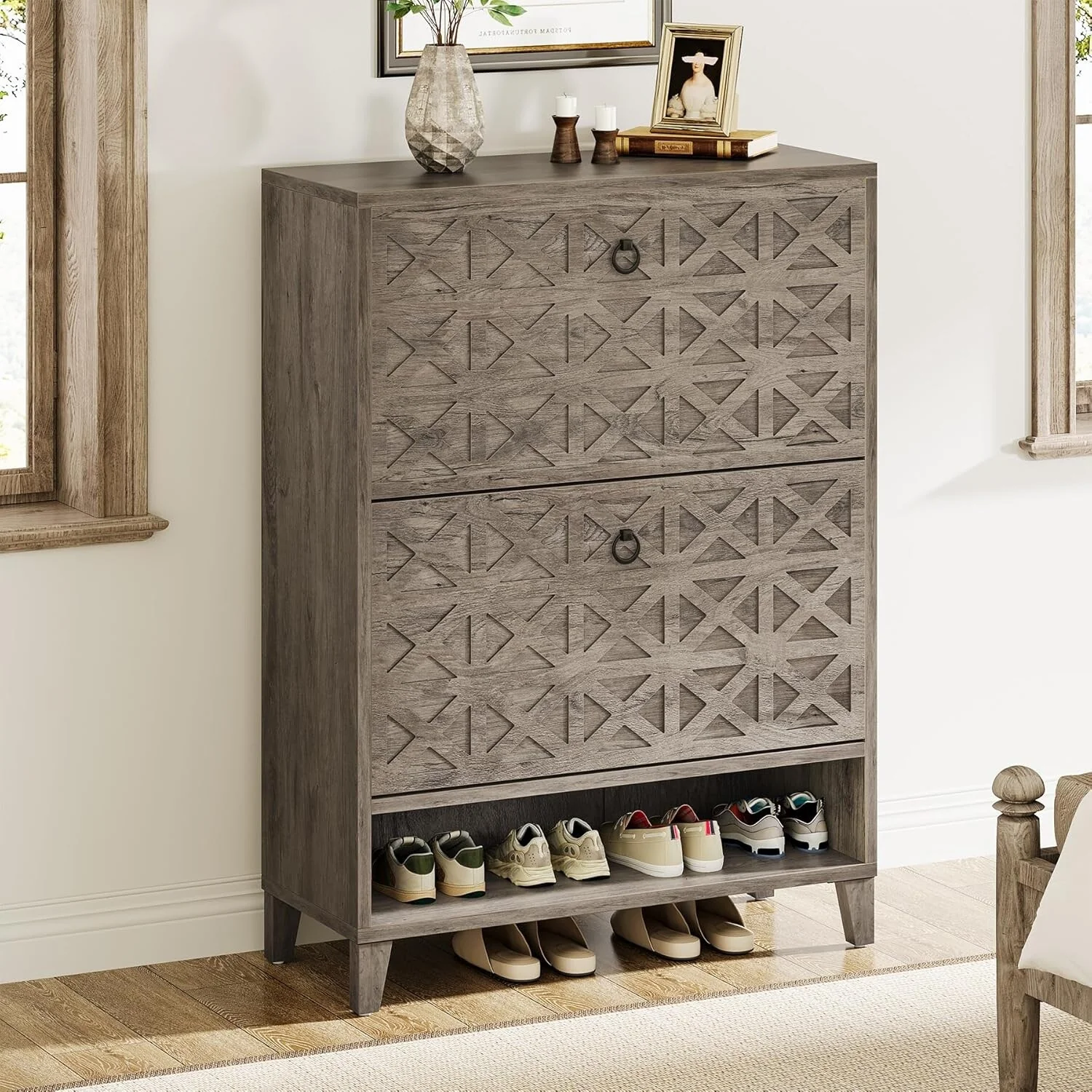 Narrow Hidden Shoe Storage Cabinet with 2 Flip Drawers