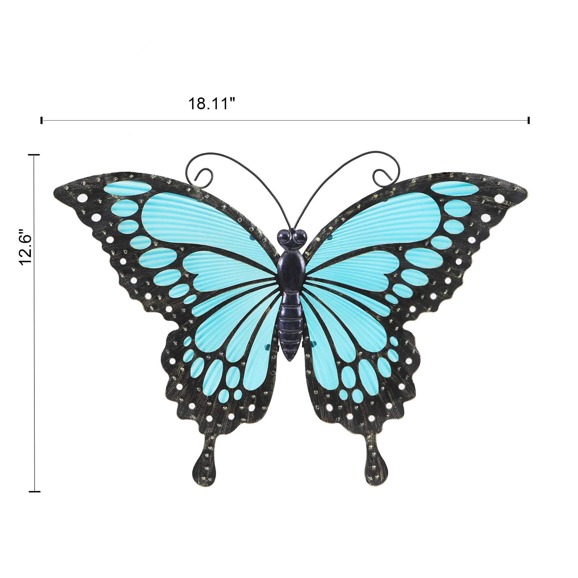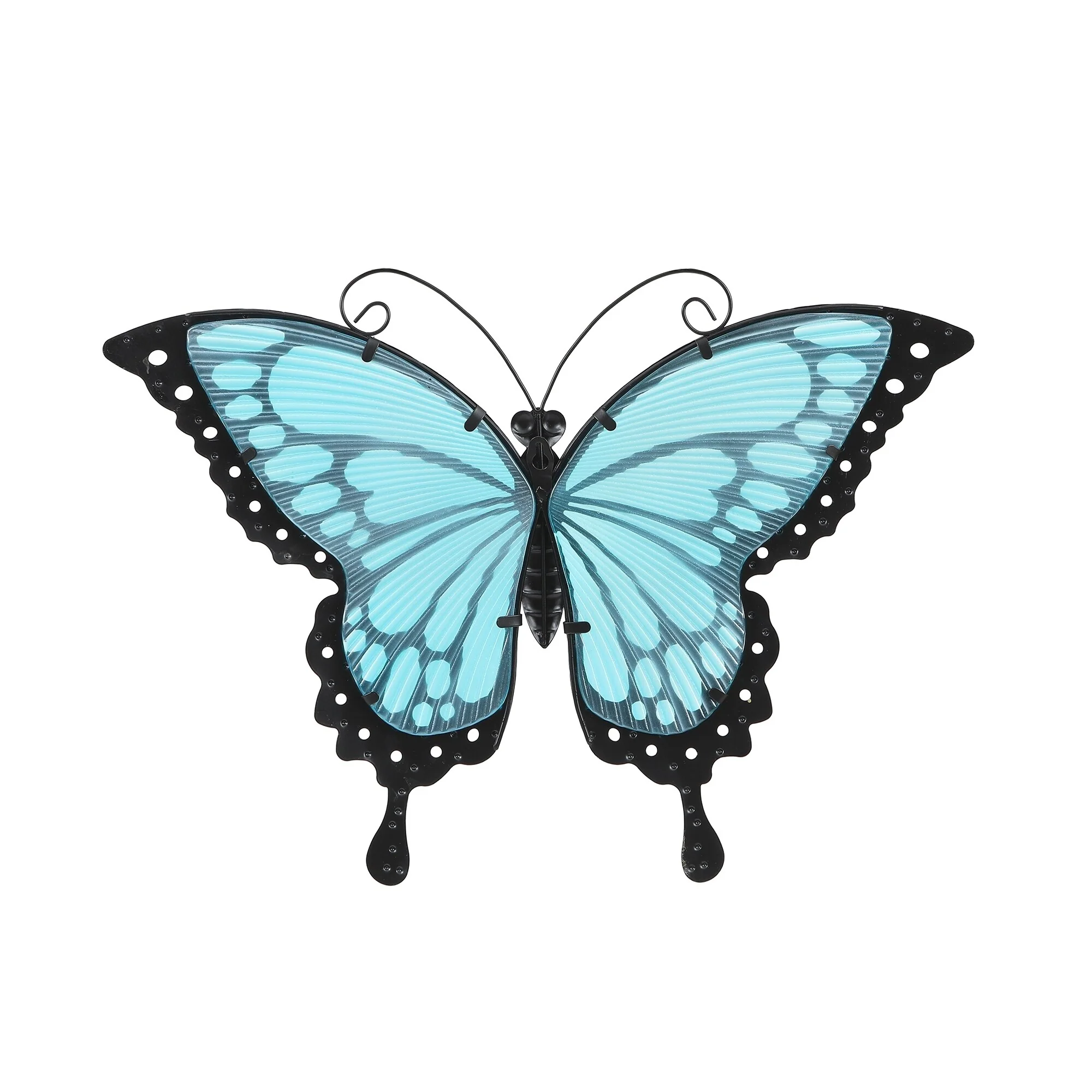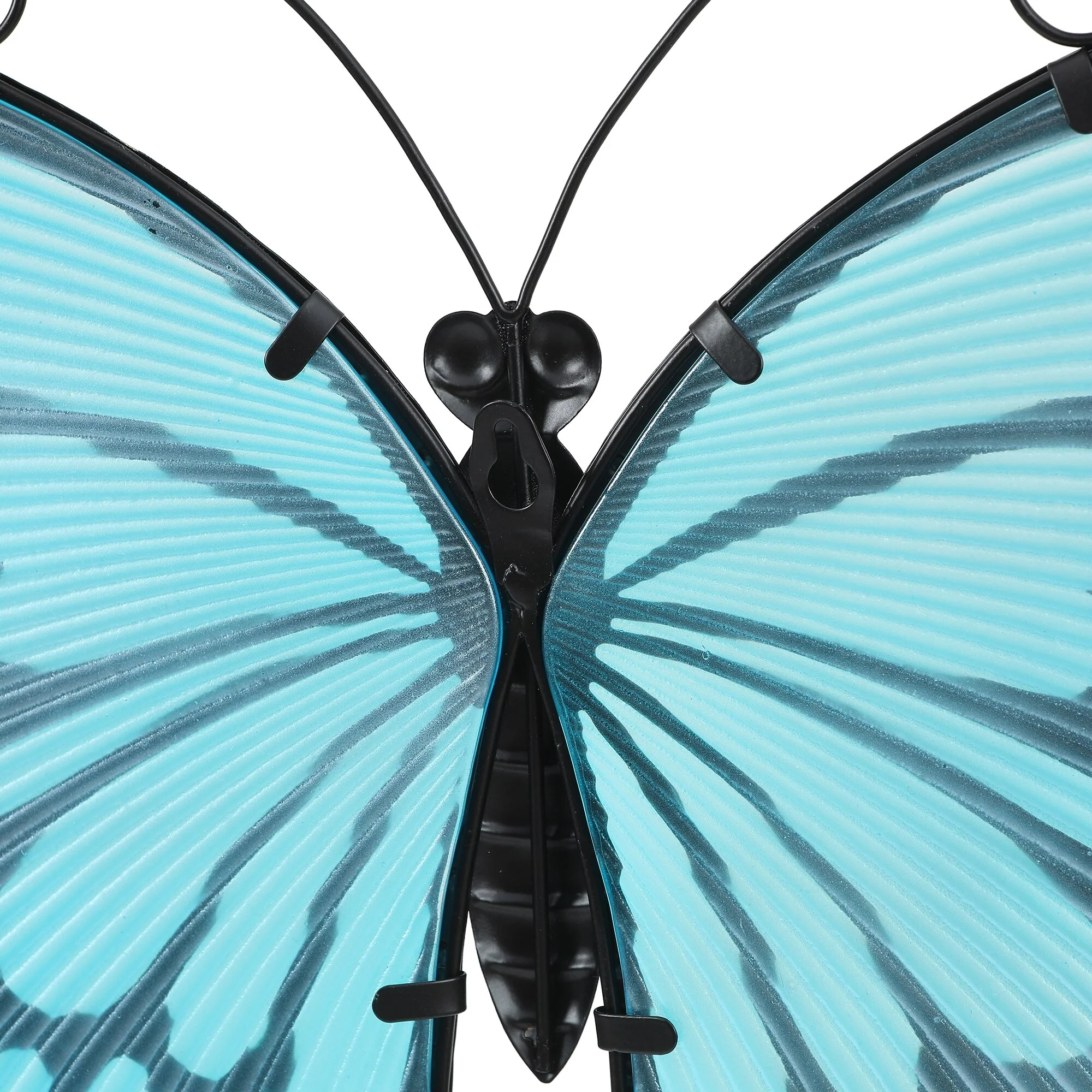 Blue Butterfly Glass and Metal Outdoor Wall Decor