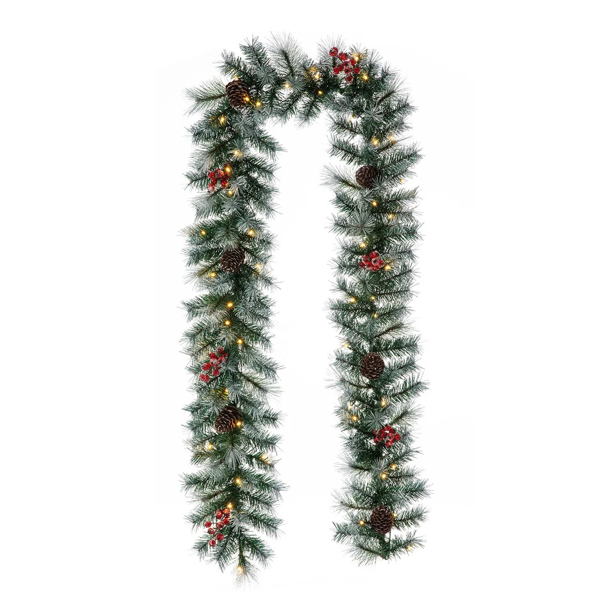 Glitzhome 9ft Pre-Lit Greenery Christmas Garland with 50 Warm White Lights(Includes Timer)