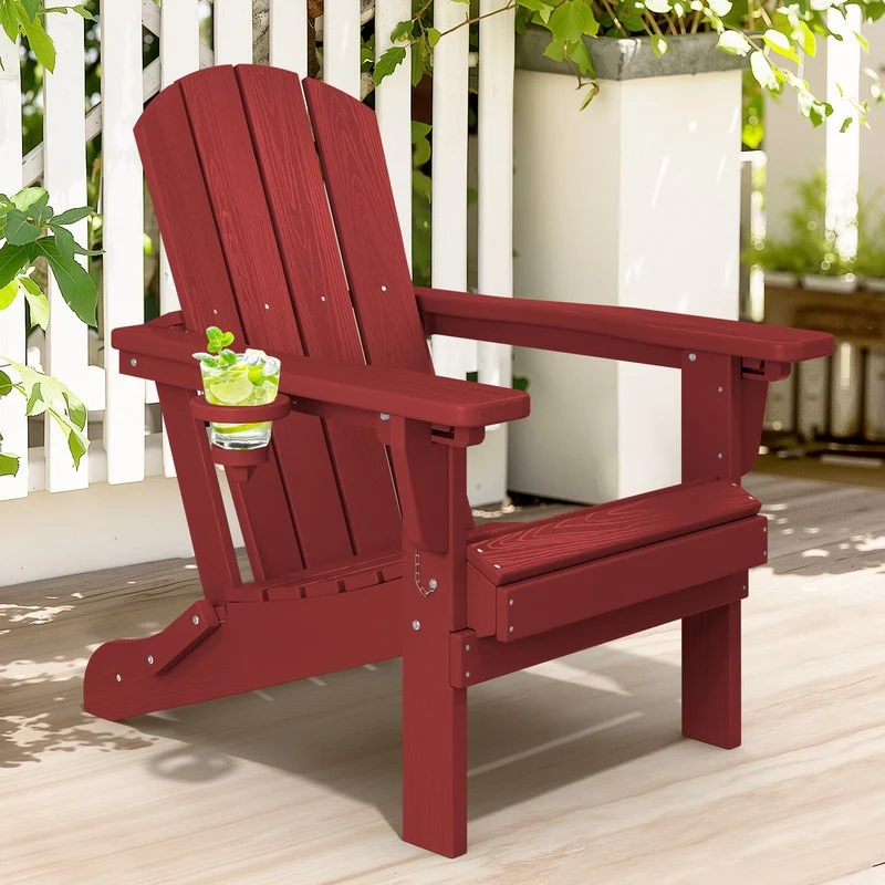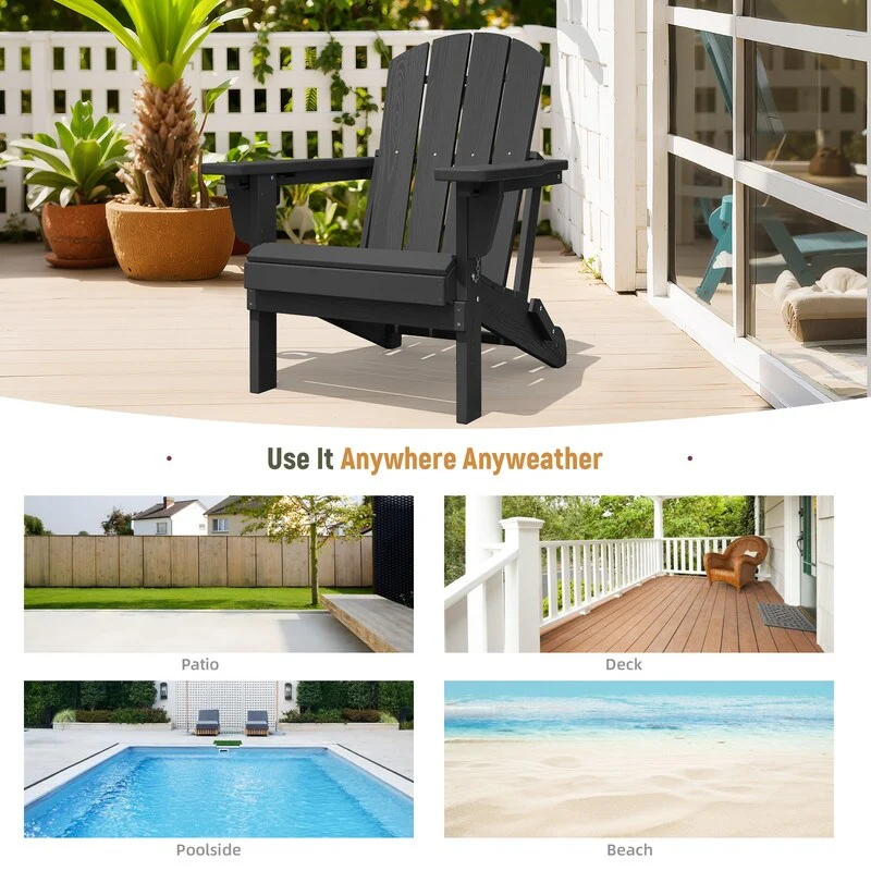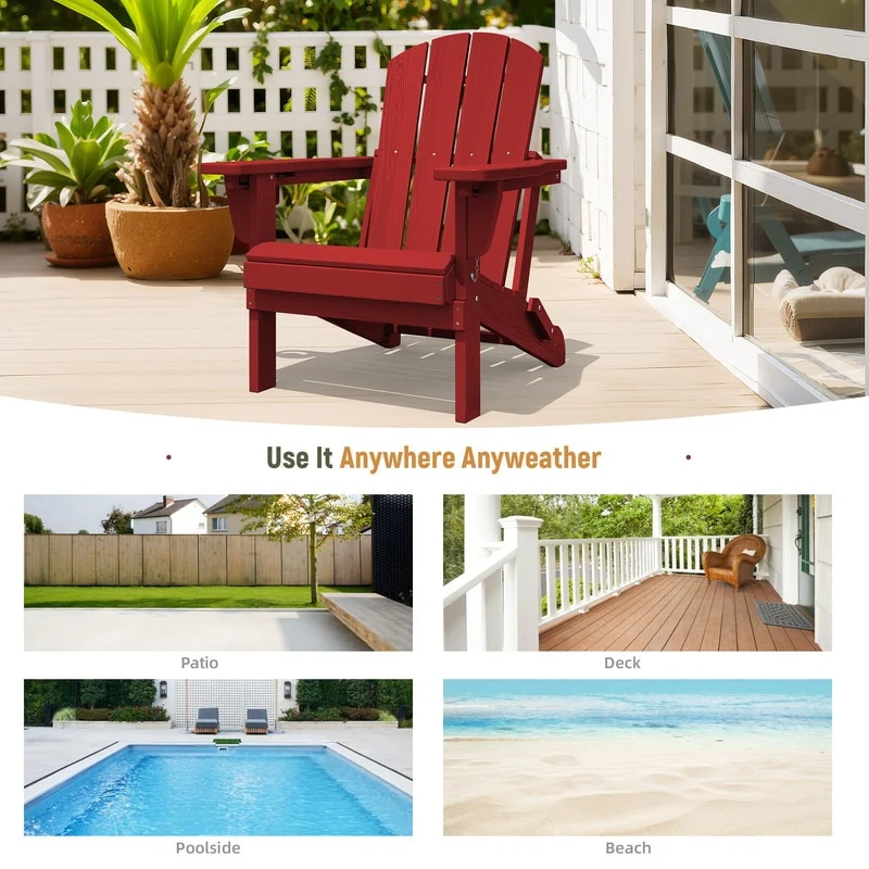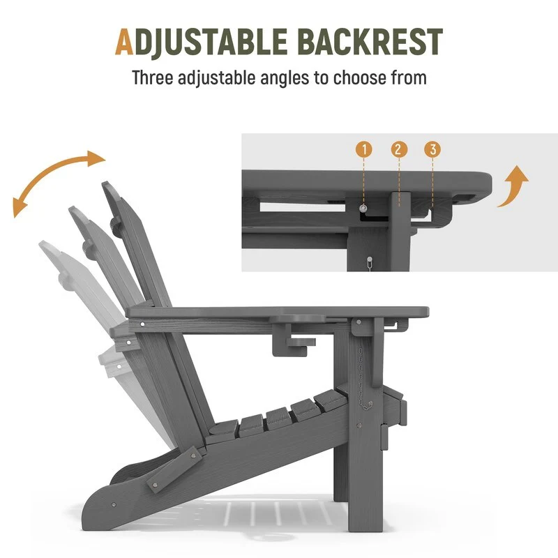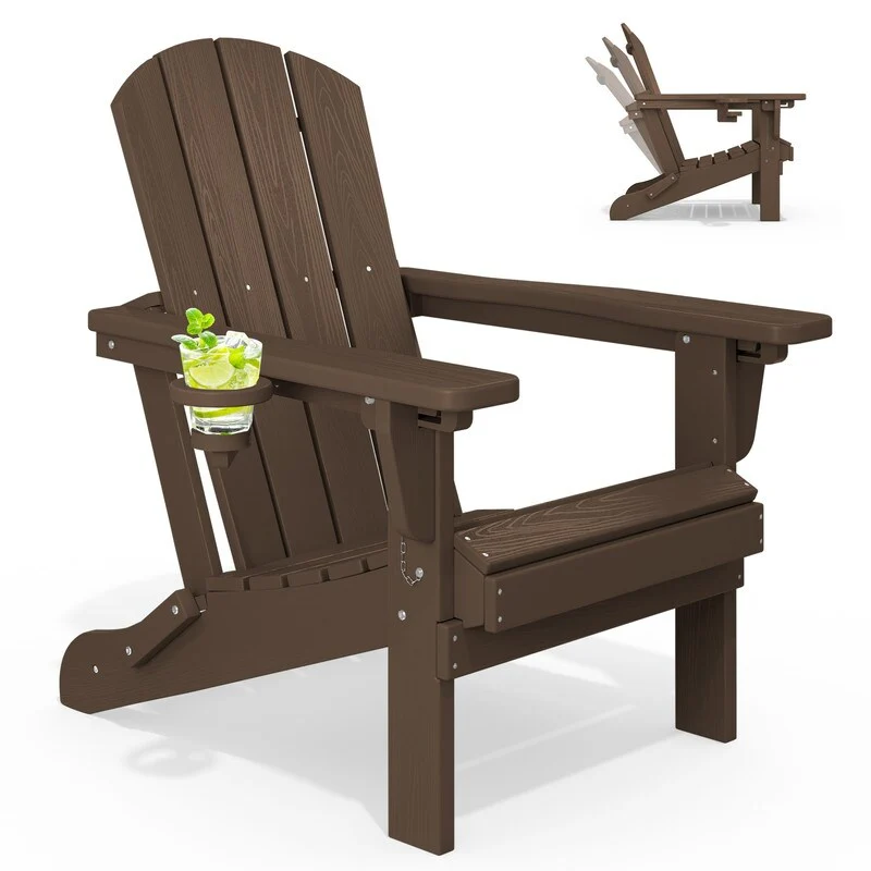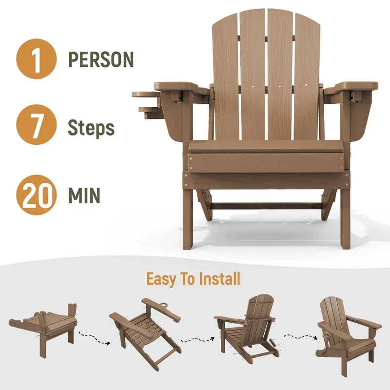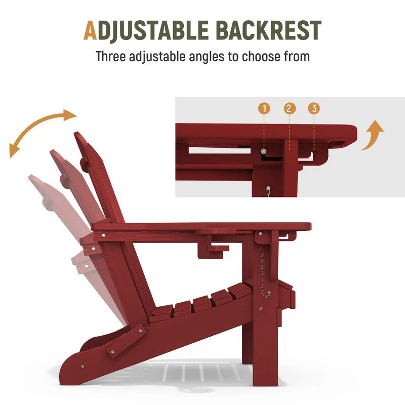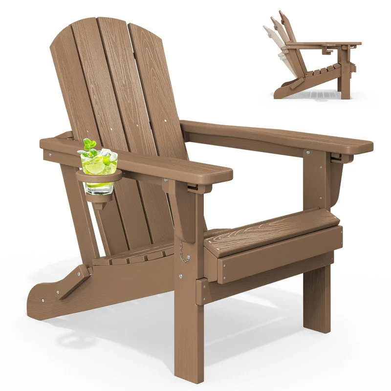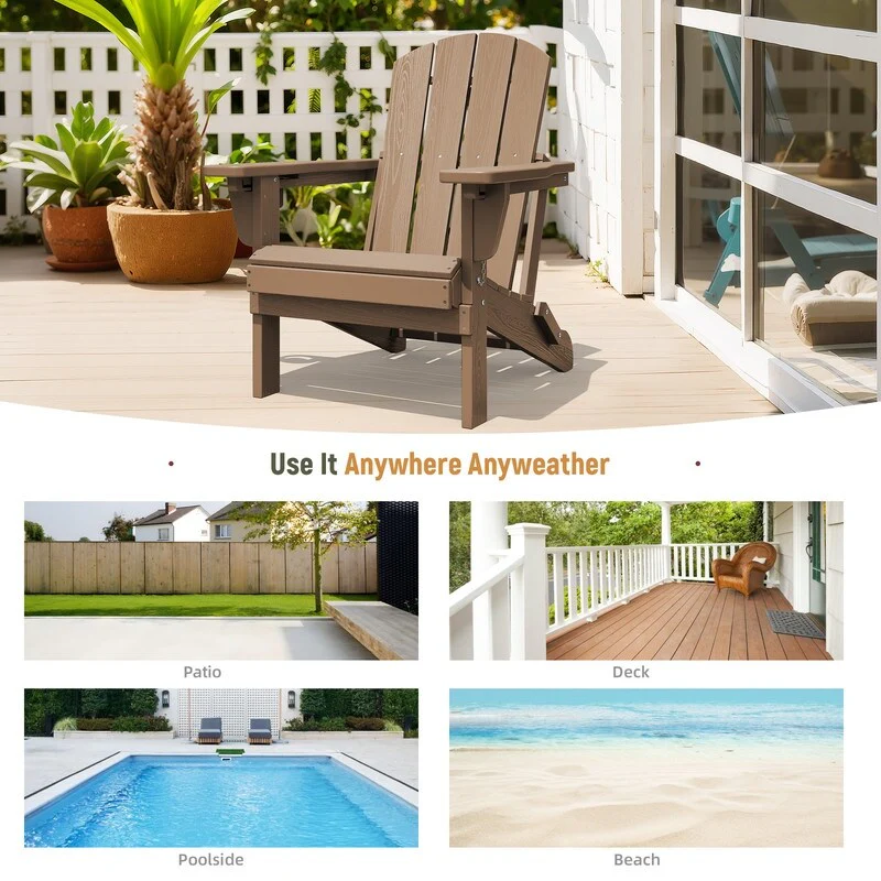 3-Position Reclining Folding Outdoor Chair �C PE Wood Grain, Weather-Resistant