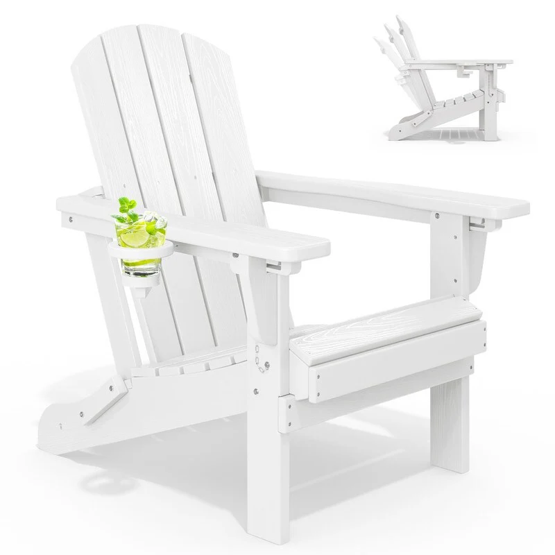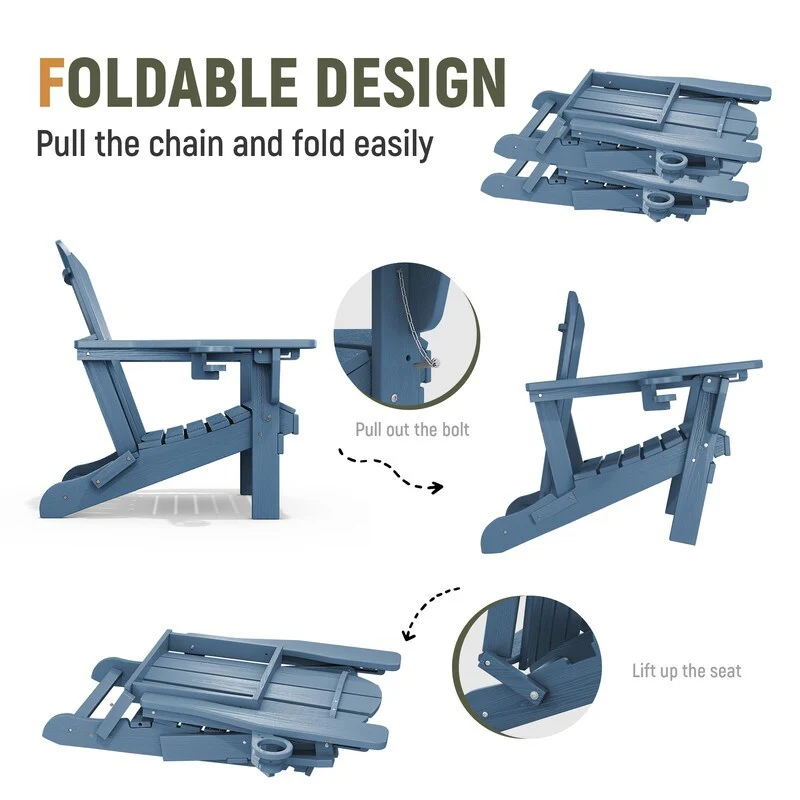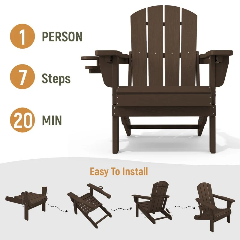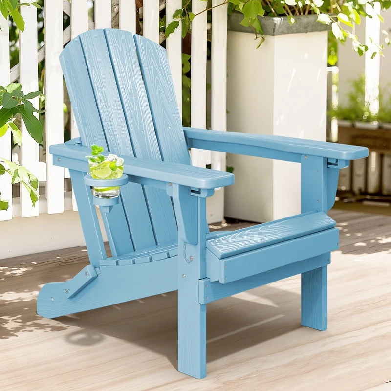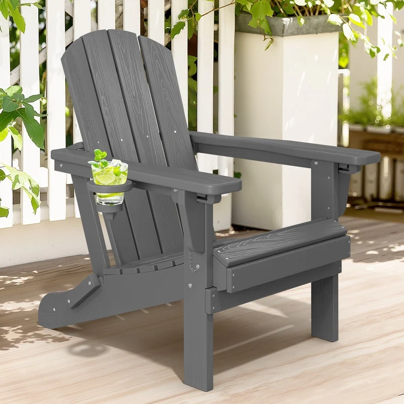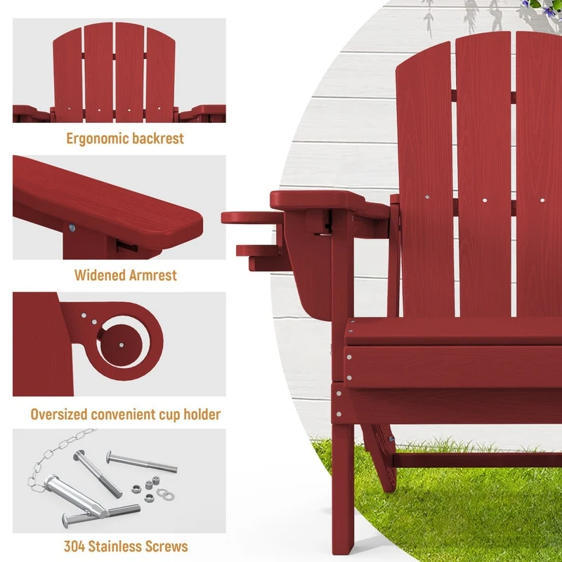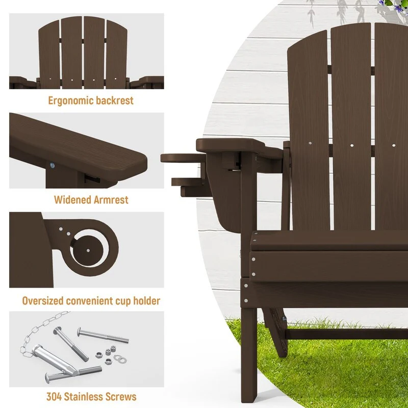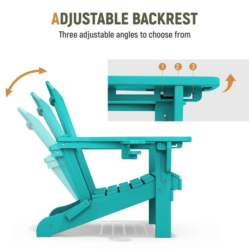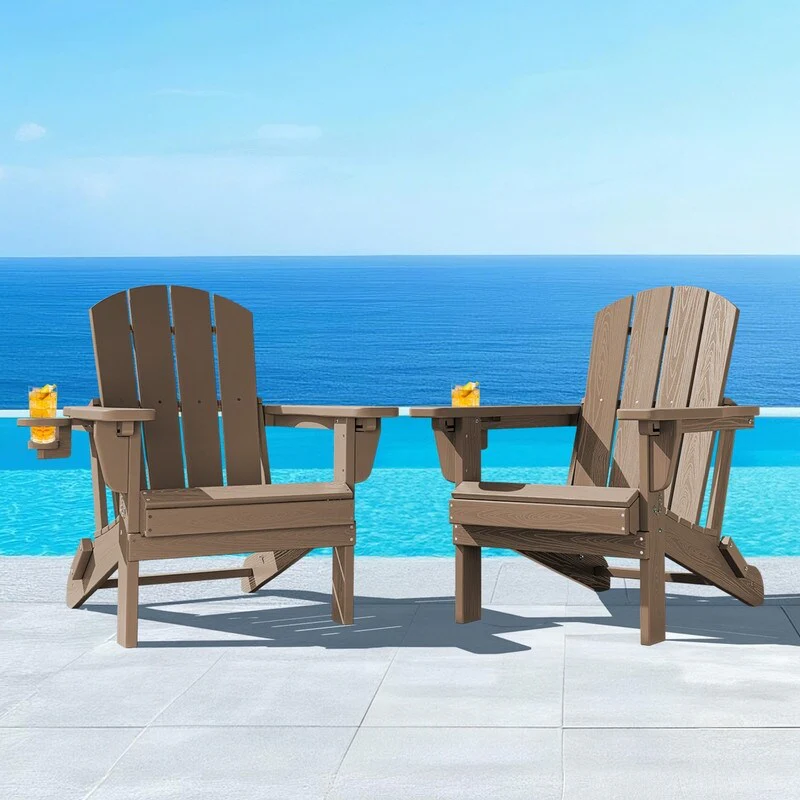 3-Position Reclining Folding Outdoor Chair �C PE Wood Grain, Weather-Resistant