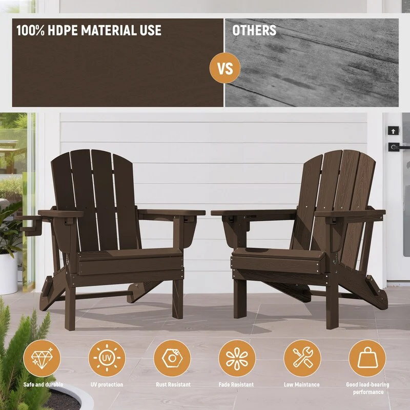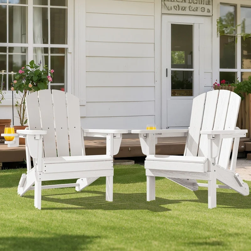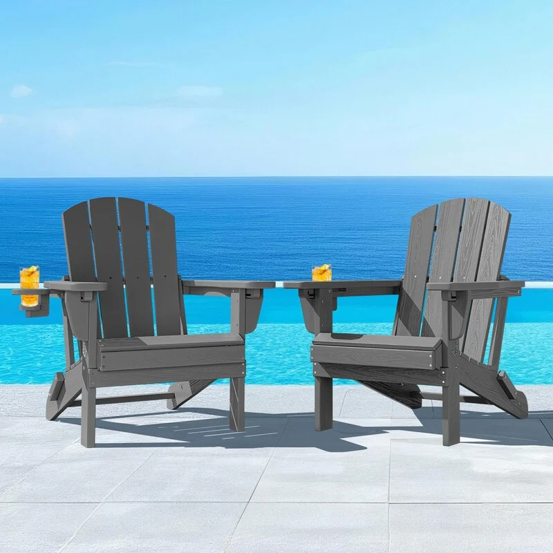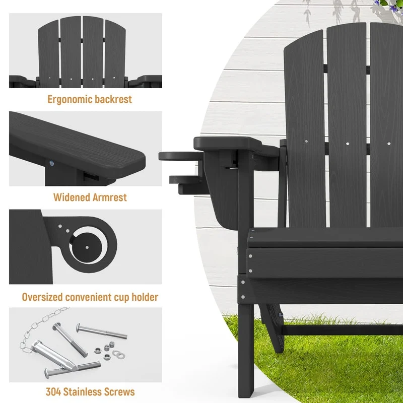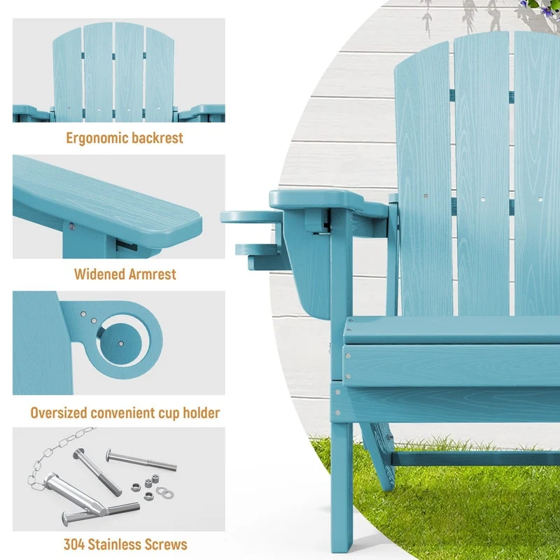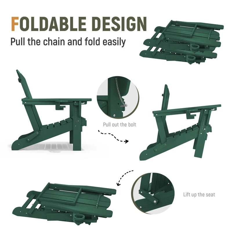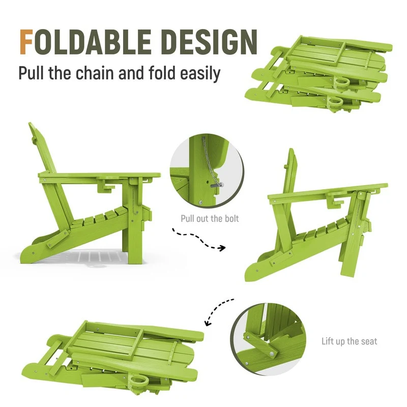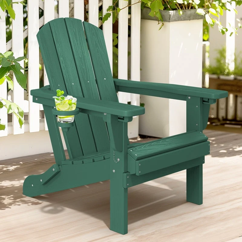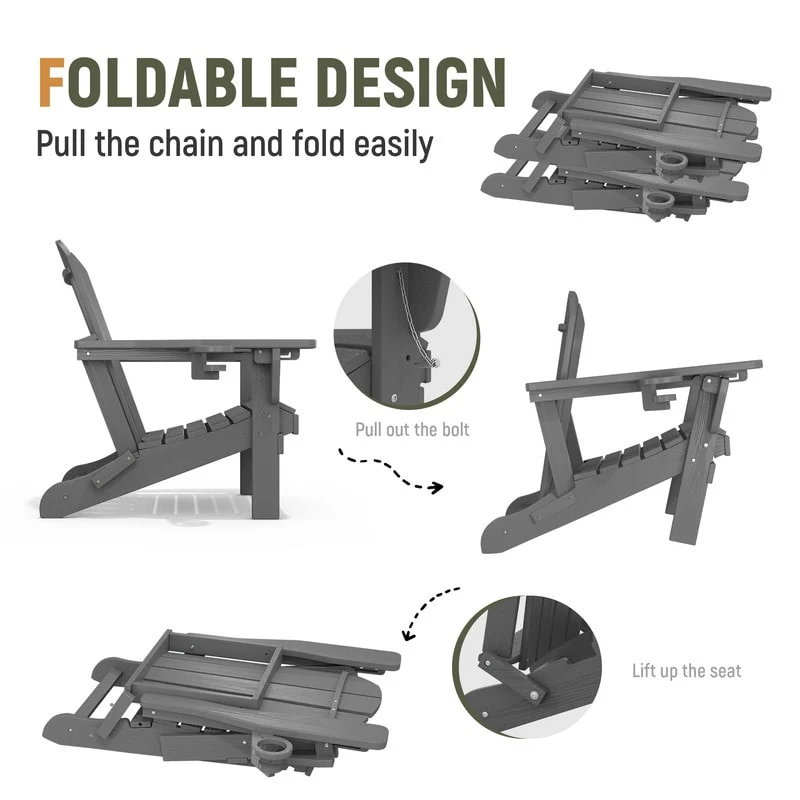 3-Position Reclining Folding Outdoor Chair �C PE Wood Grain, Weather-Resistant