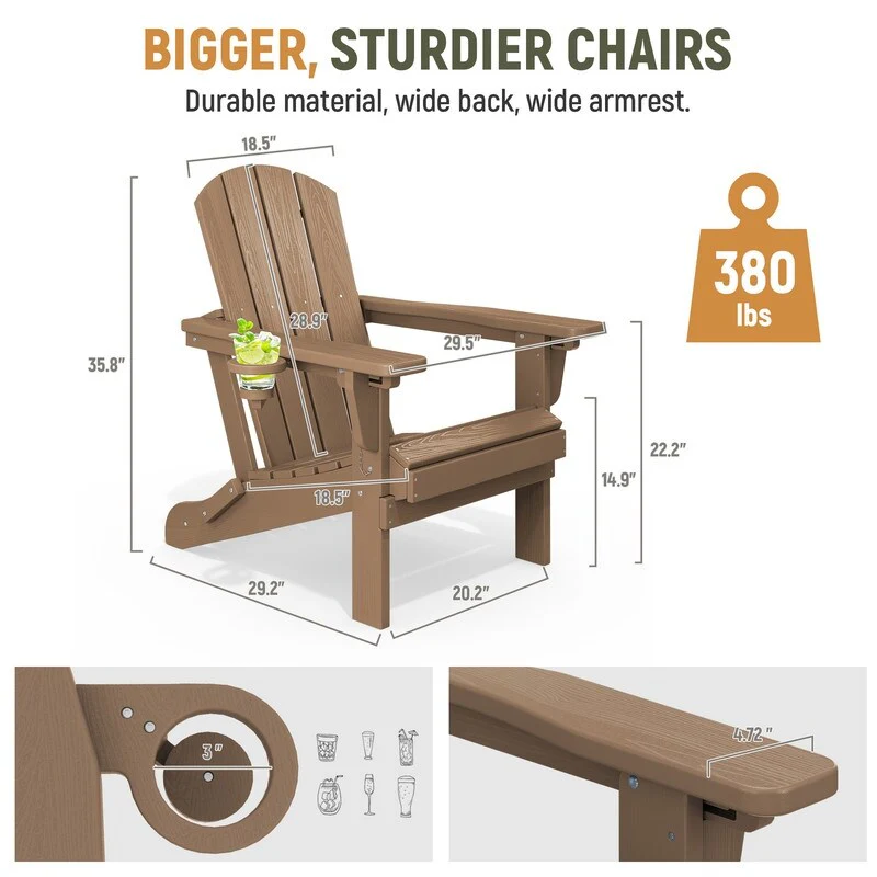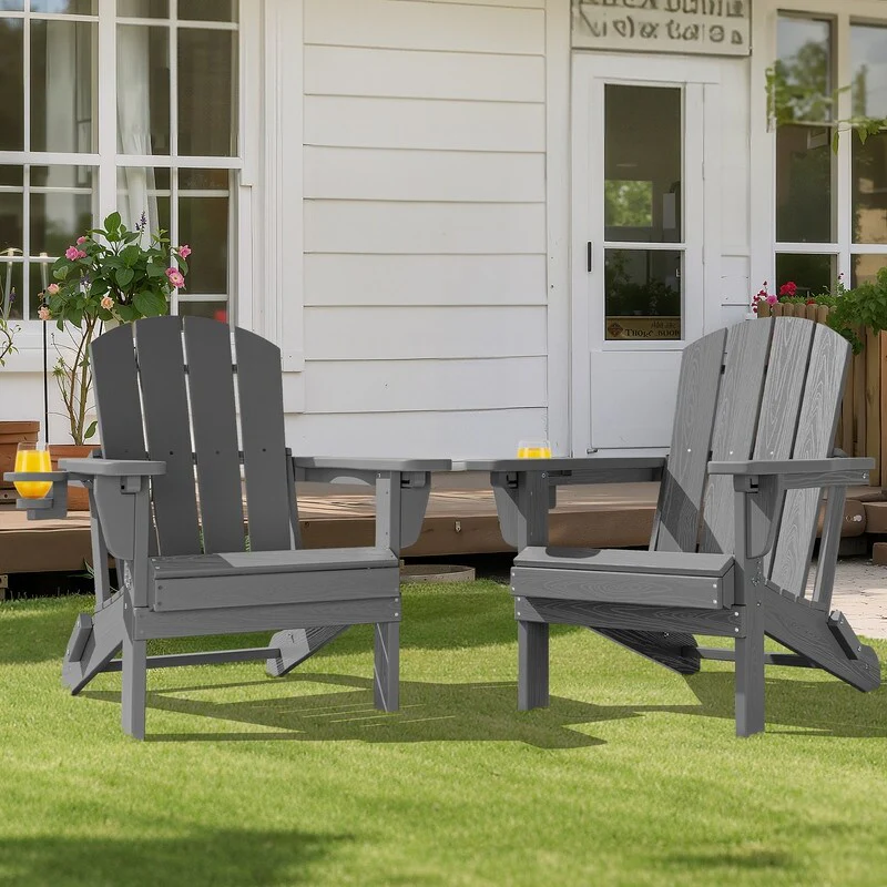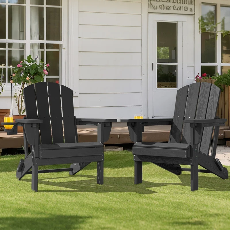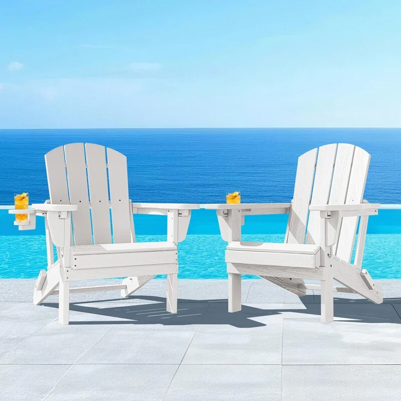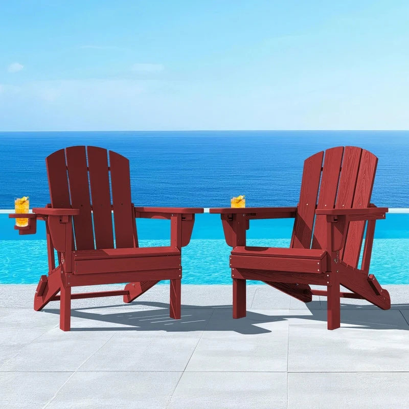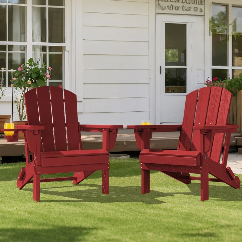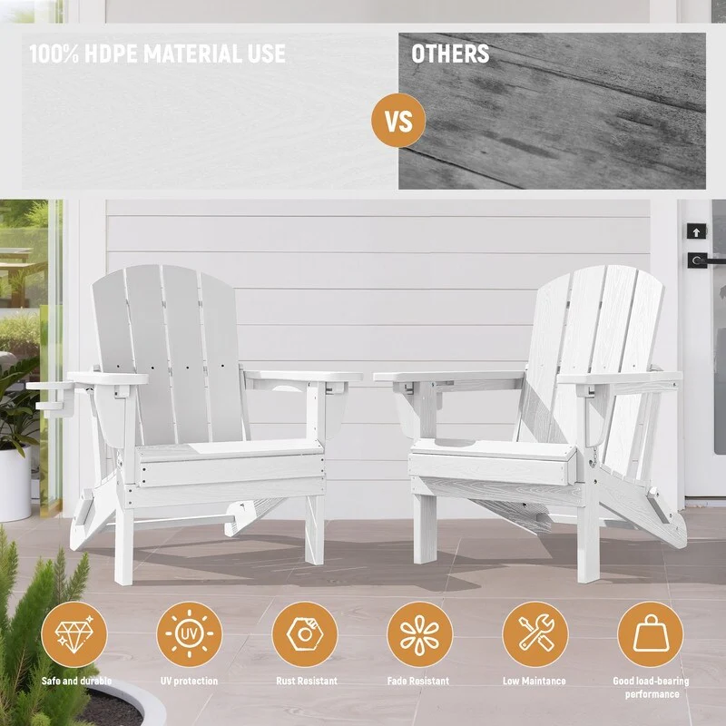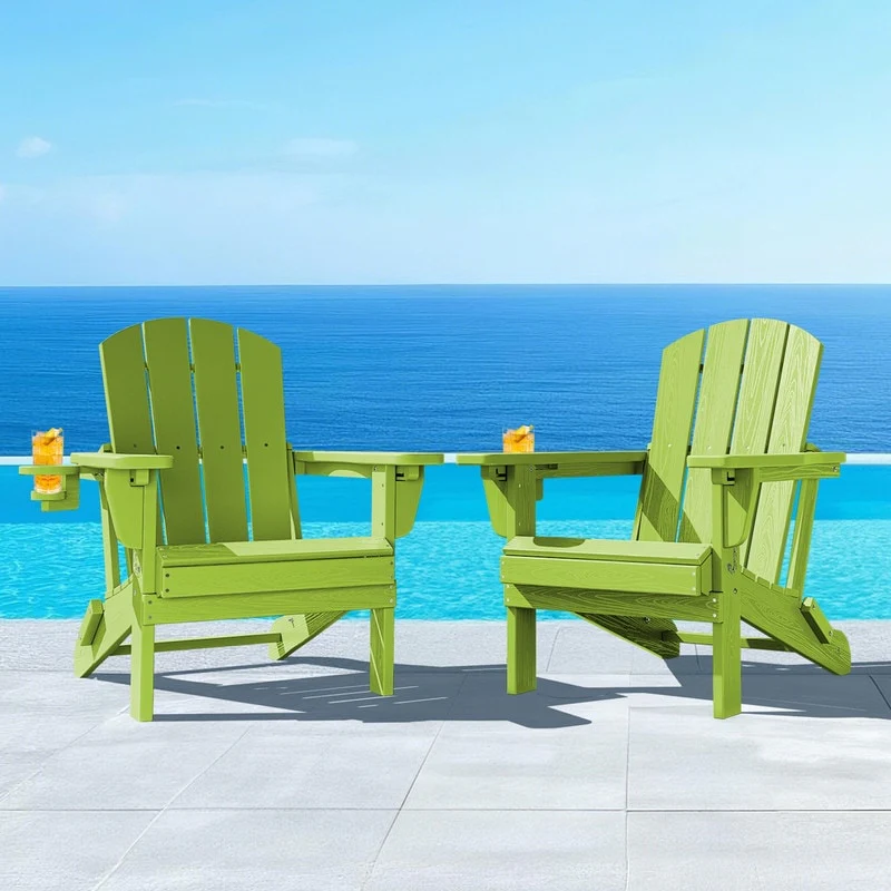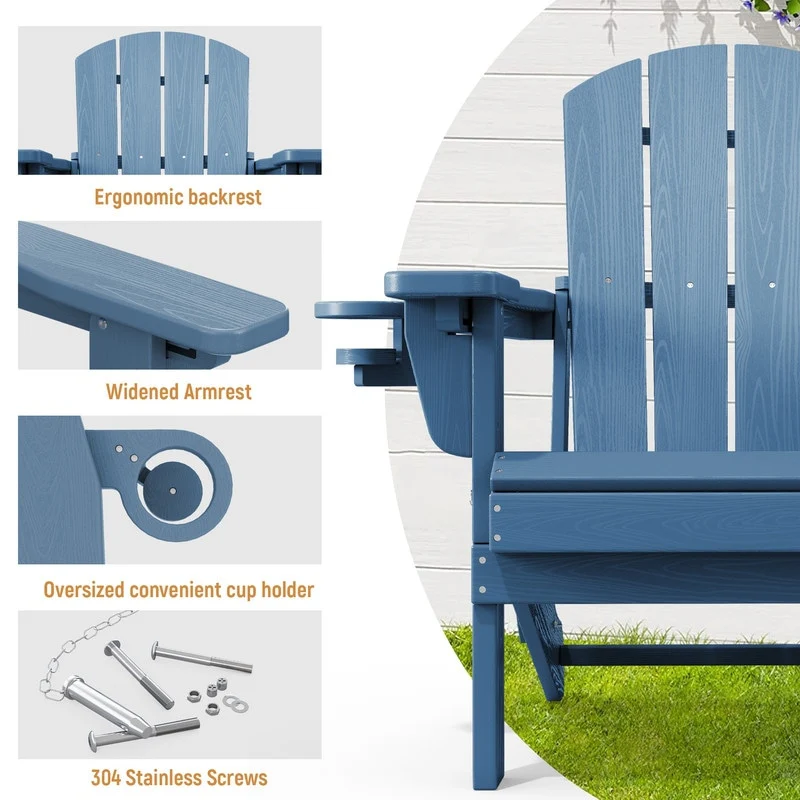 3-Position Reclining Folding Outdoor Chair �C PE Wood Grain, Weather-Resistant