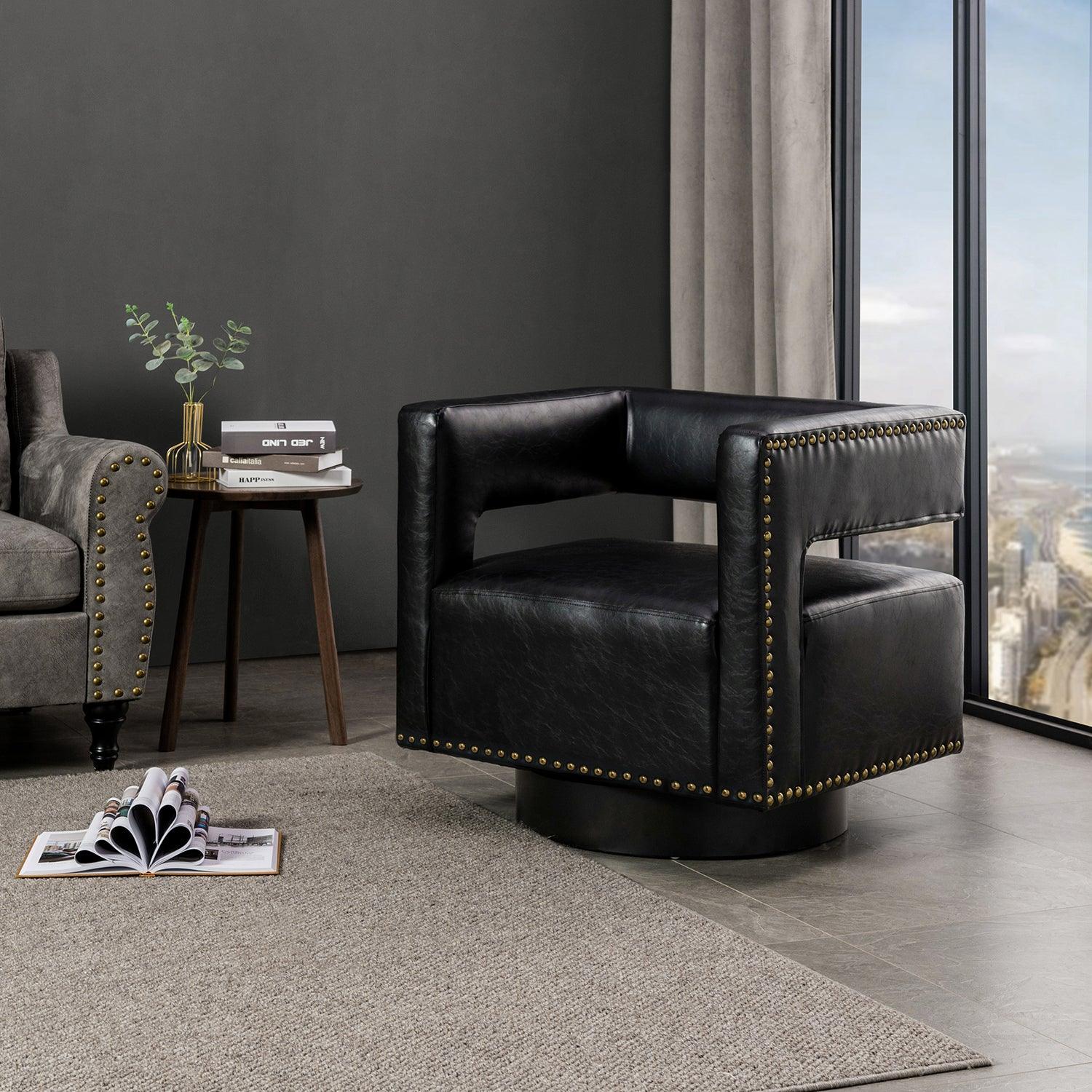 Martaci Vegan Leather Swivel Barrel Armchair