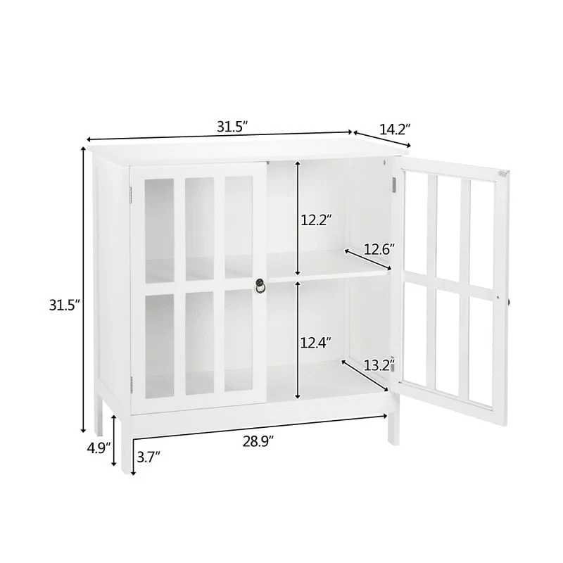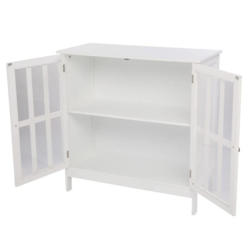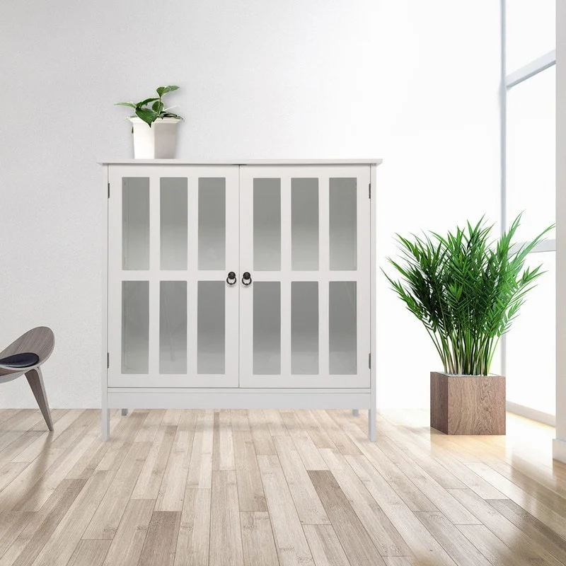 Transparent Door Free Standing Accent Storage Cabinet For Kitchen Dining White