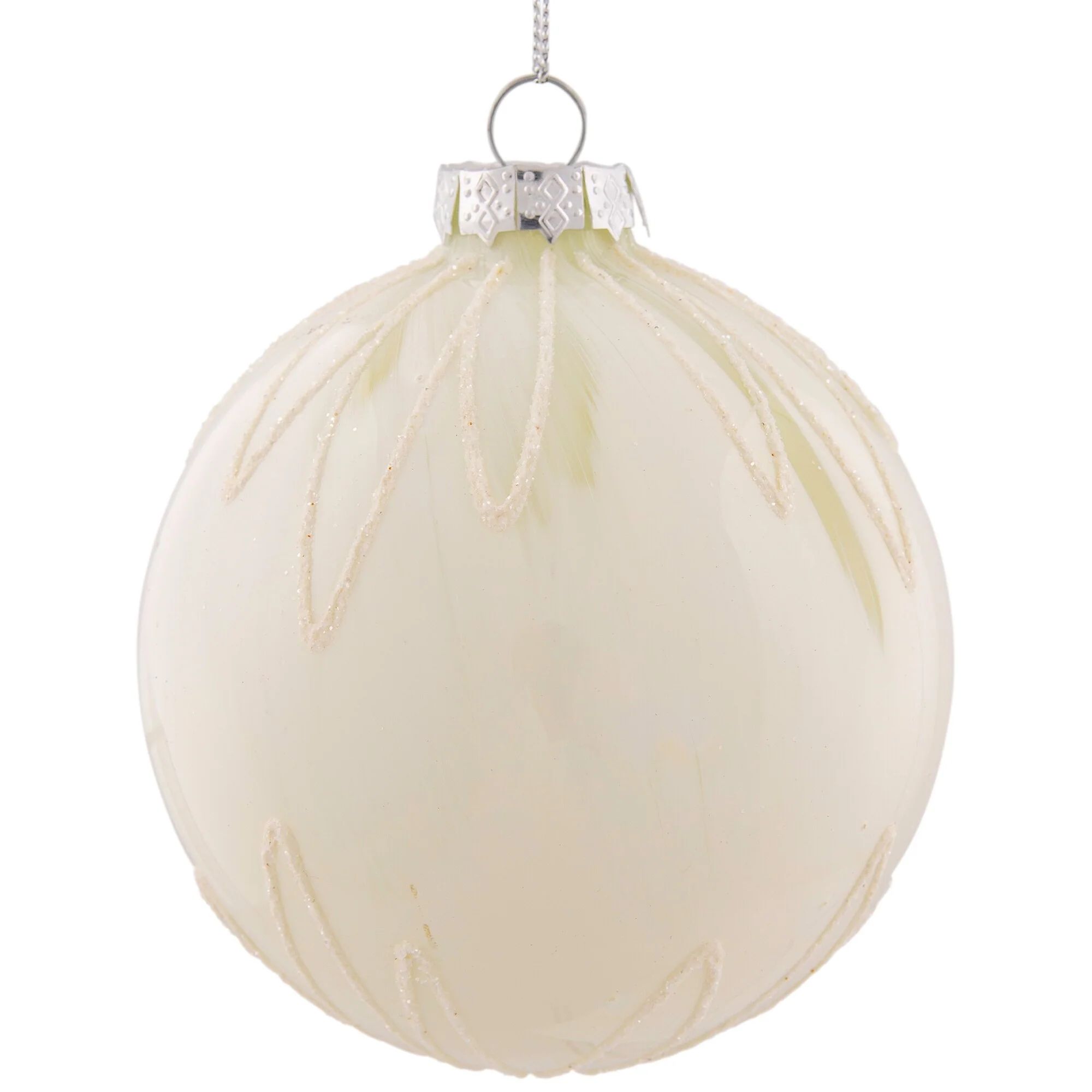 Starburst Glass Ball Christmas Ornament - 4" - Brushed White