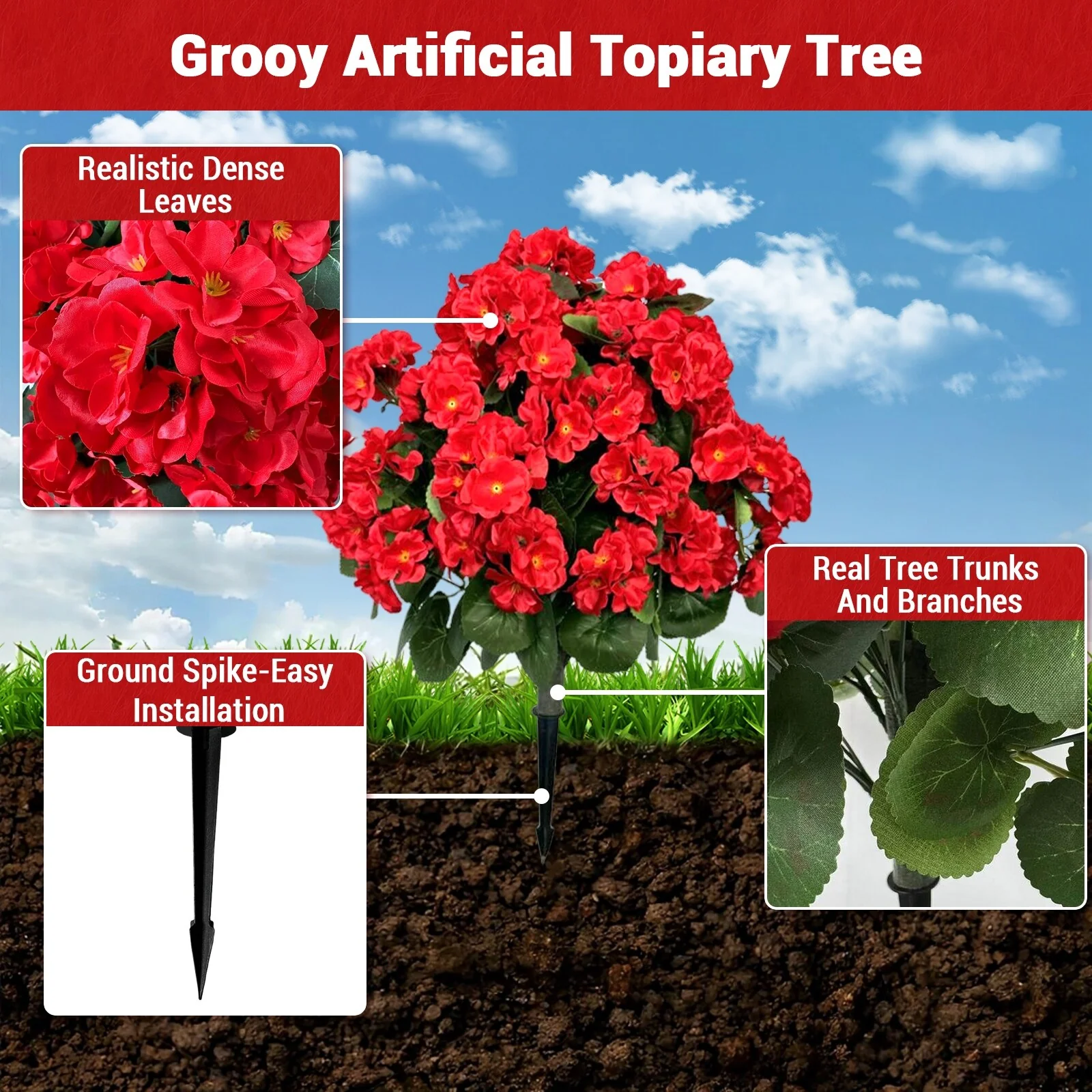Set Of 2 Artificial Begonias With Ground Spike, 60 Cm Outdoor Decoration Artificial Plant With Flower