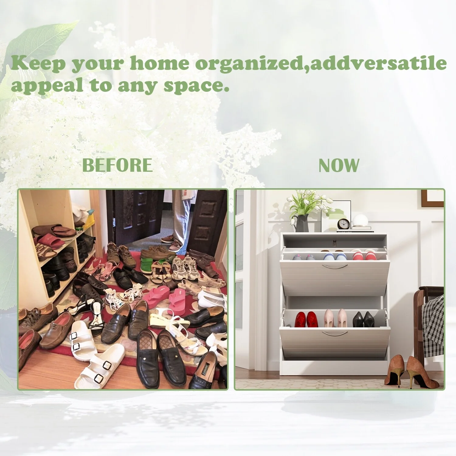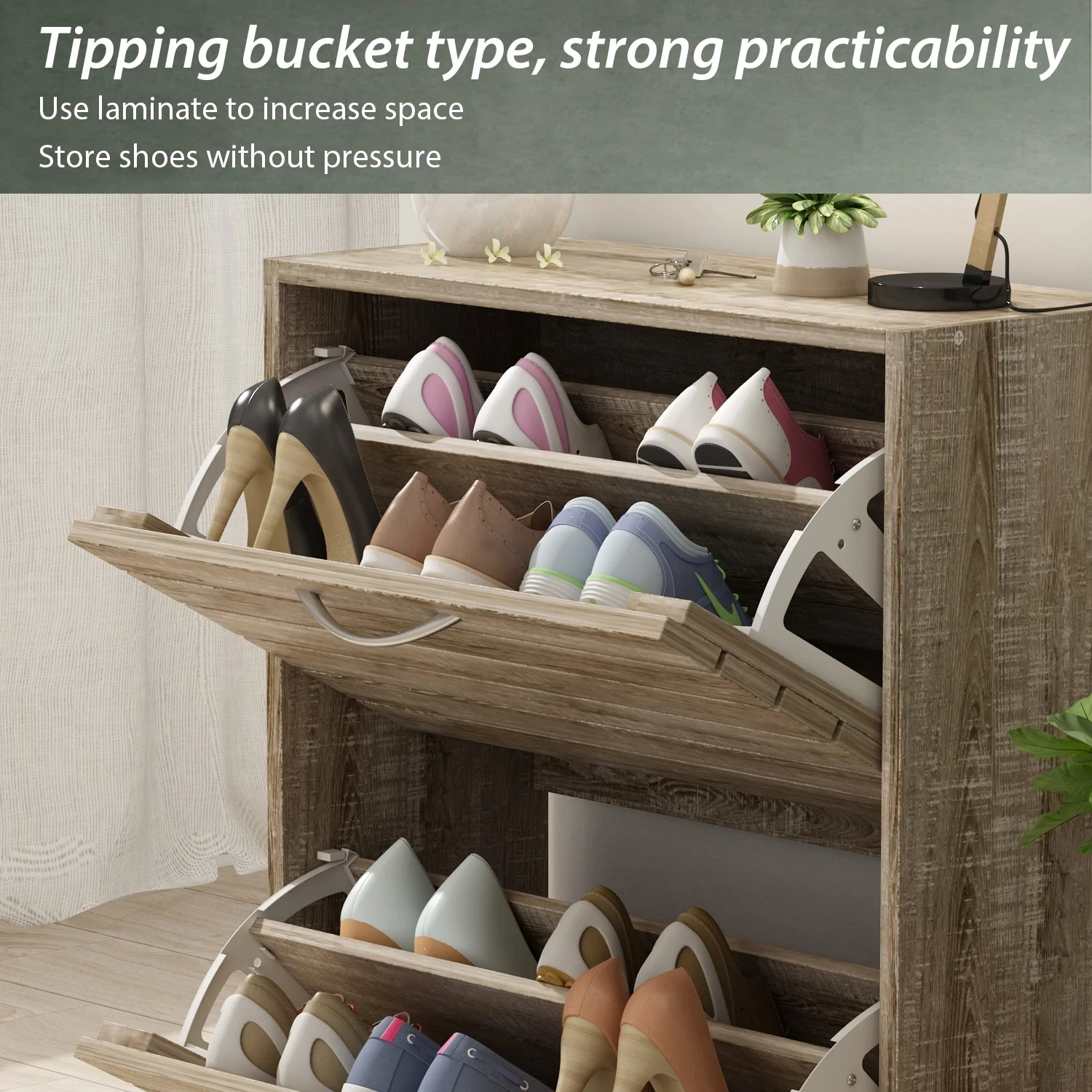 Shoe Storage Cabinet Two Drawer Space Saving Grey/Oak/White Dresser
