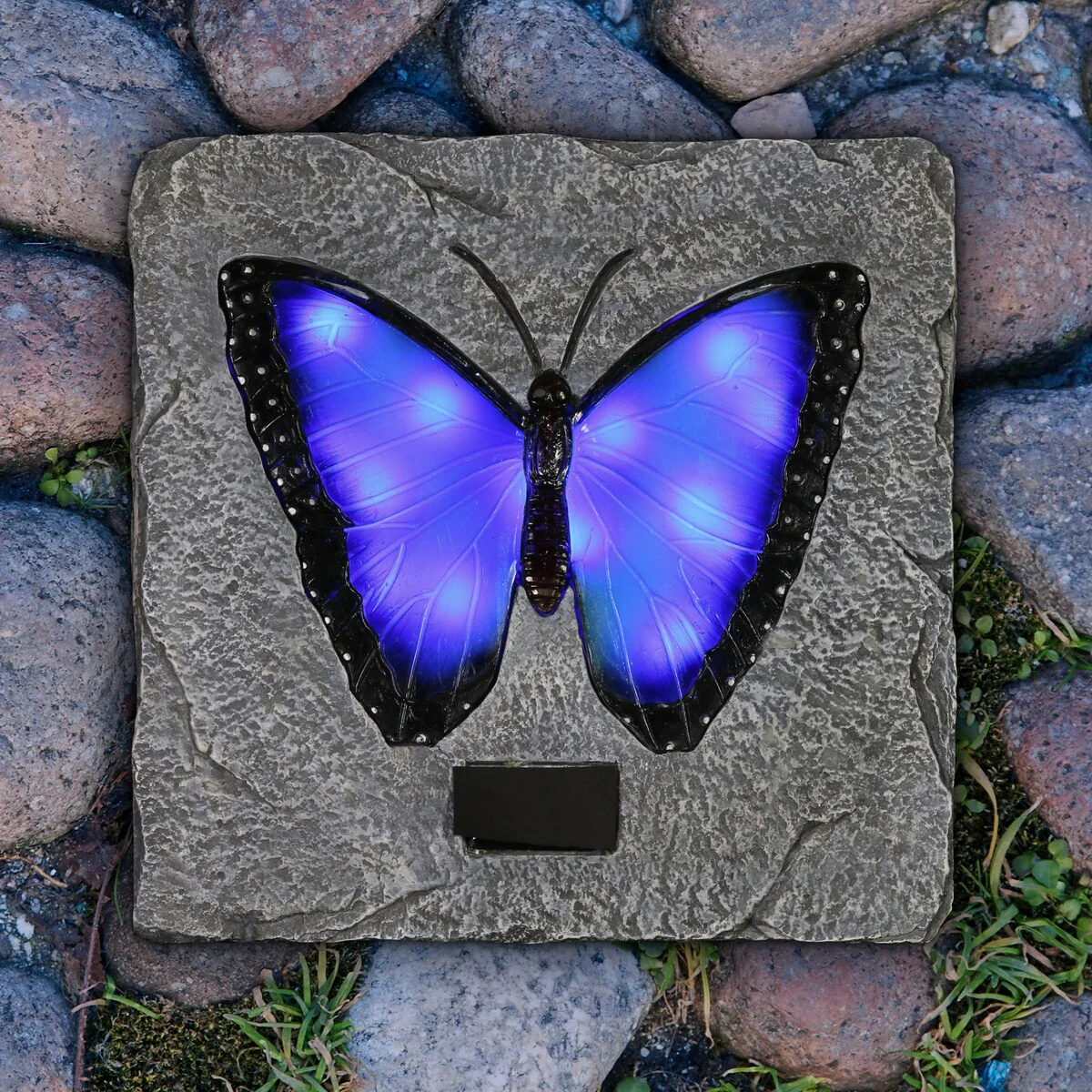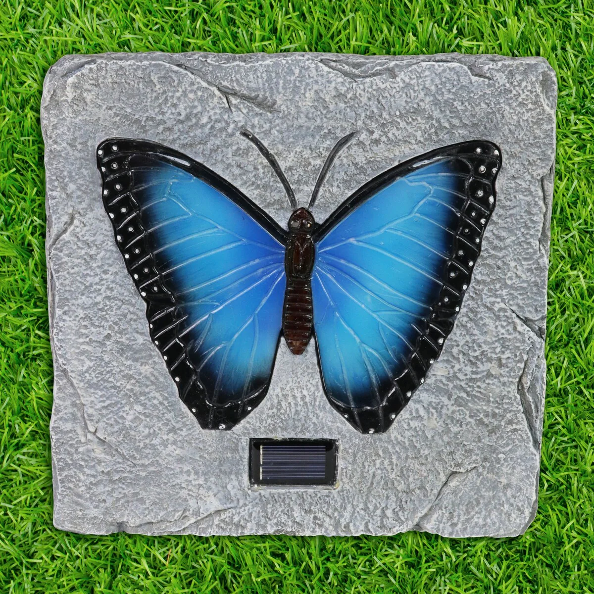 Exhart Solar Blue Butterfly Stepping Stone, 10 Inch