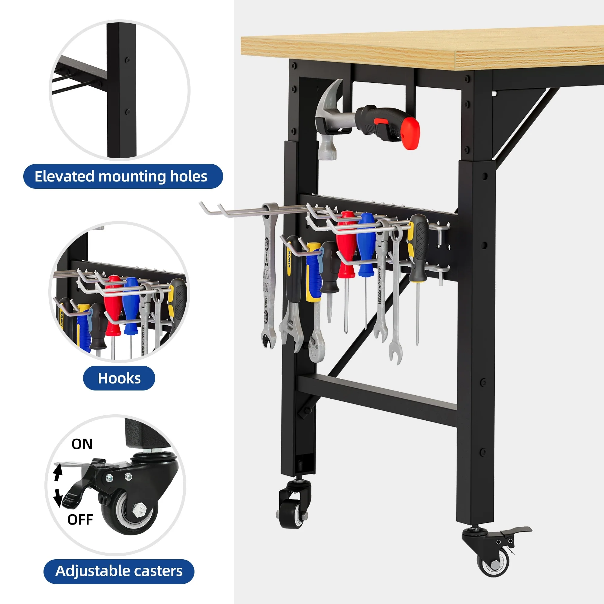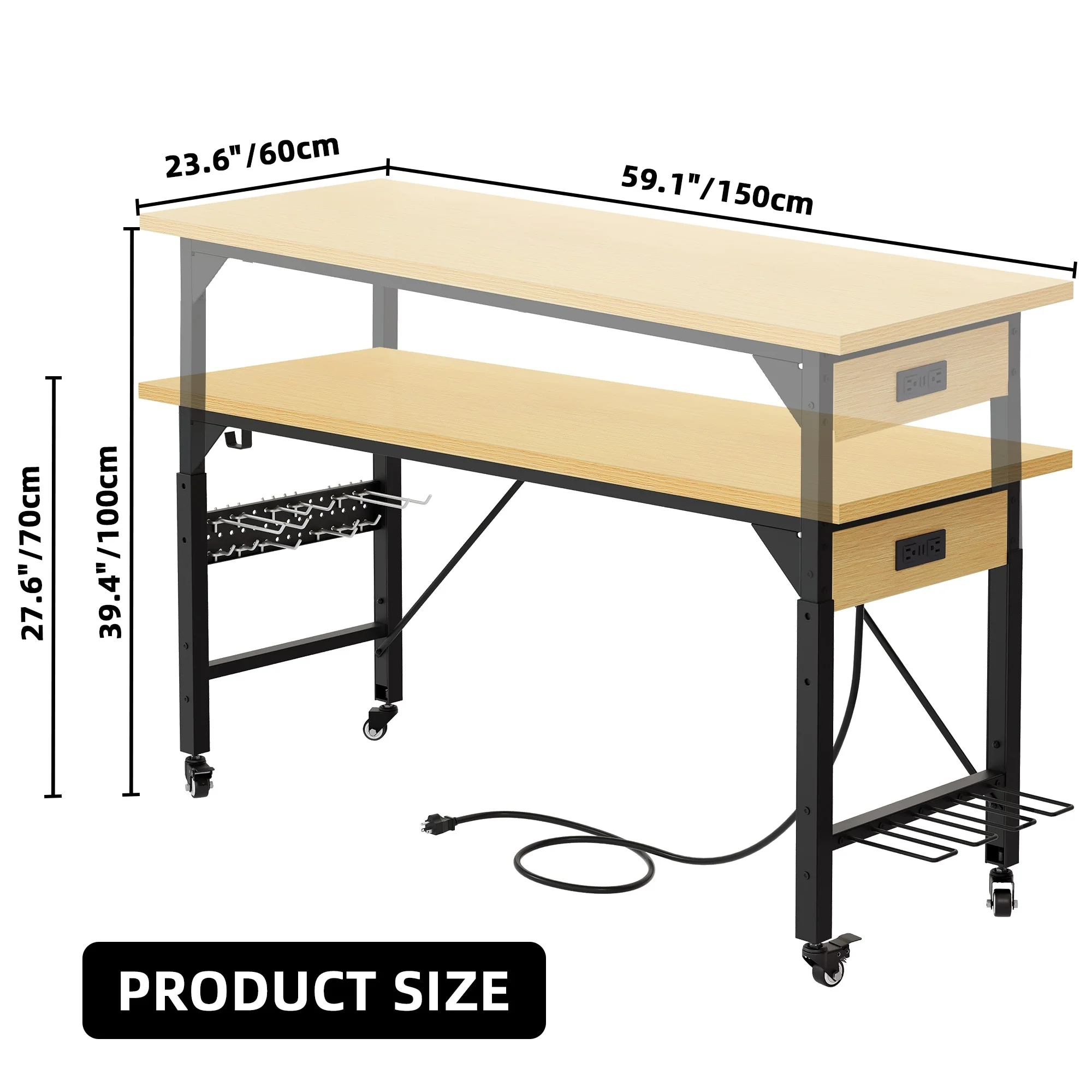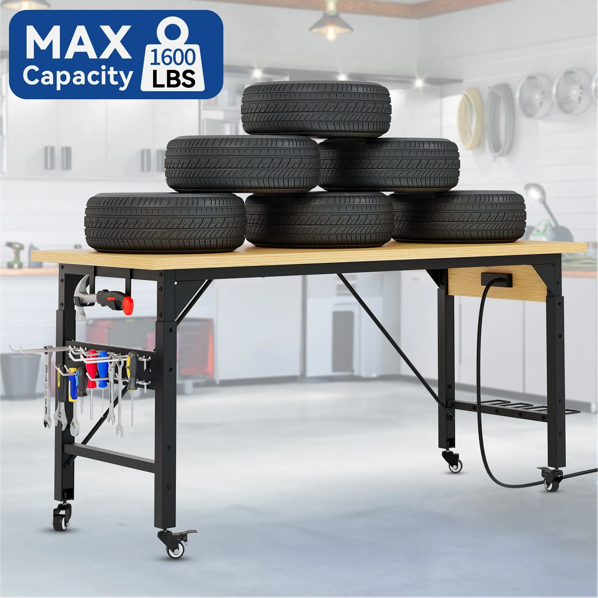 Moasis Adjustable Height Work Bench Table with Power Outlets