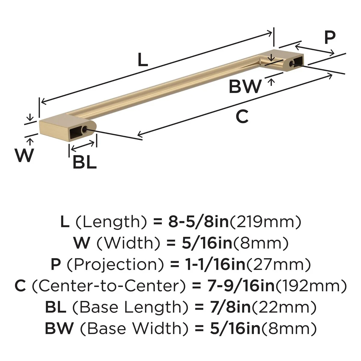 7-9/16 inch (192mm) Center-to-Center