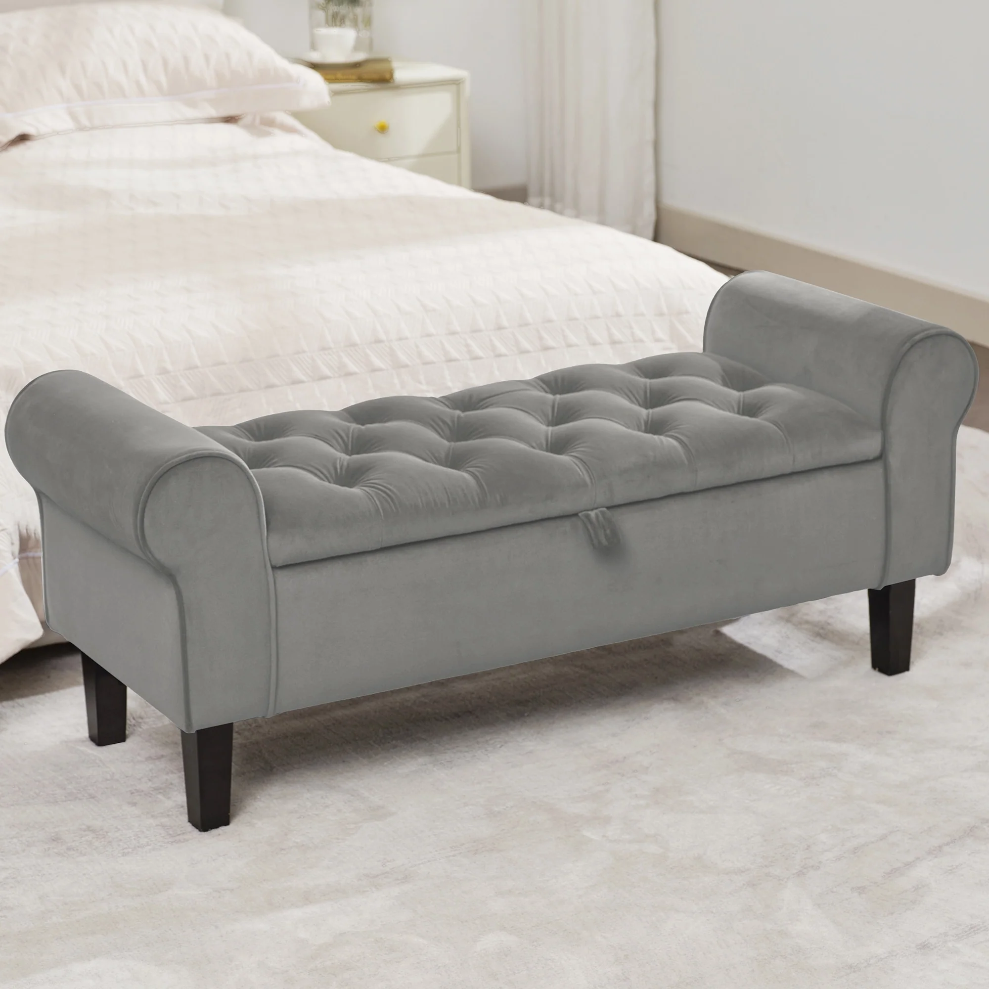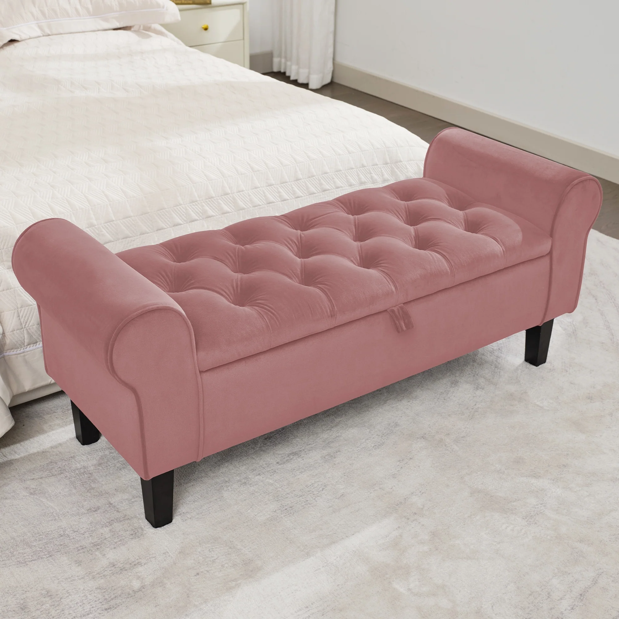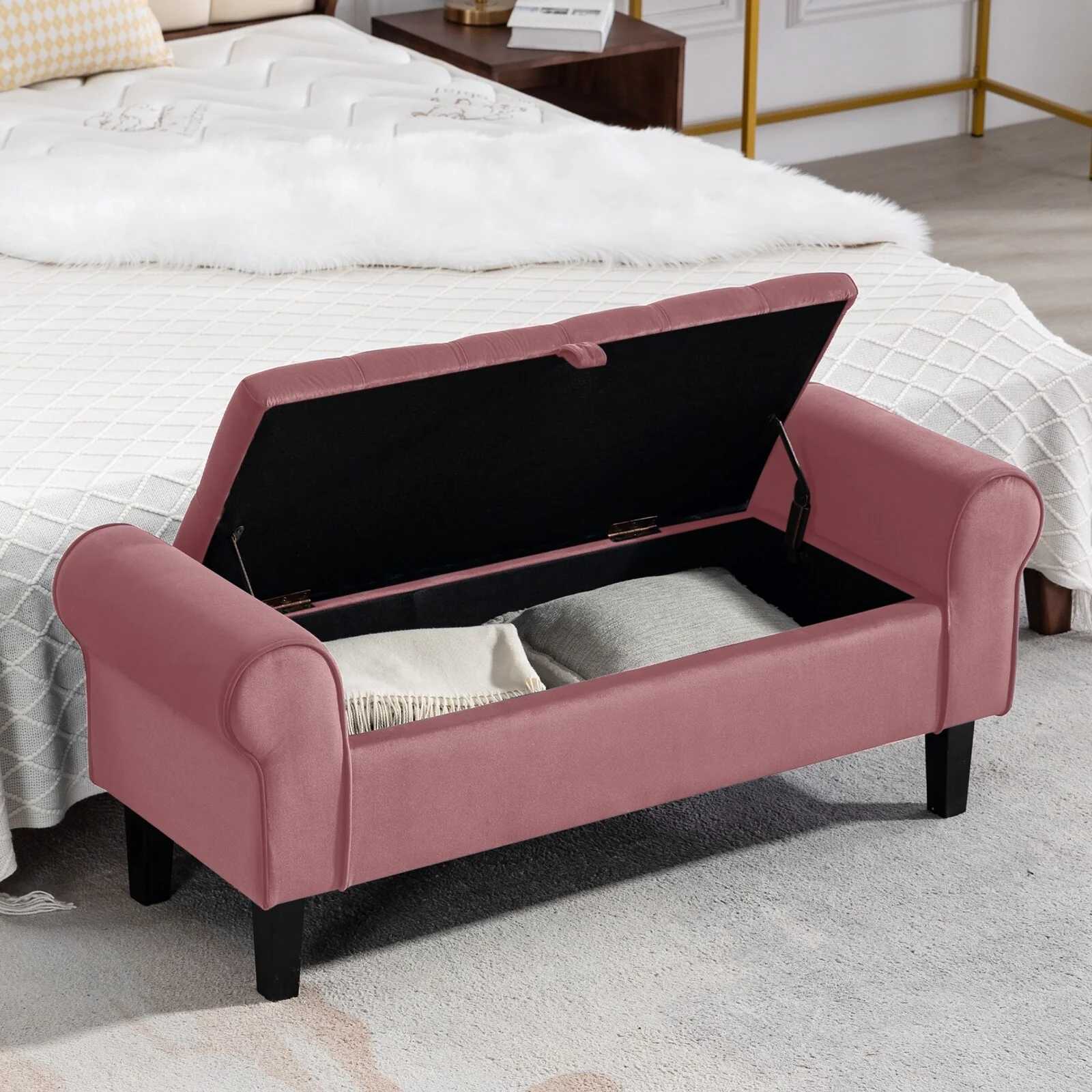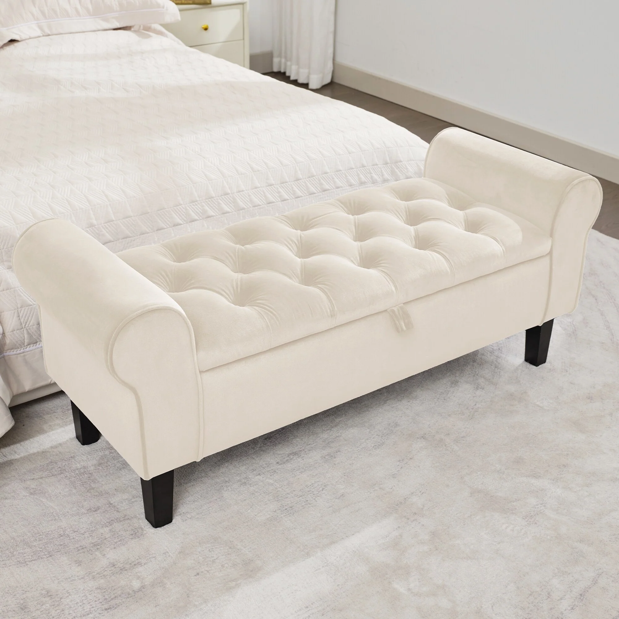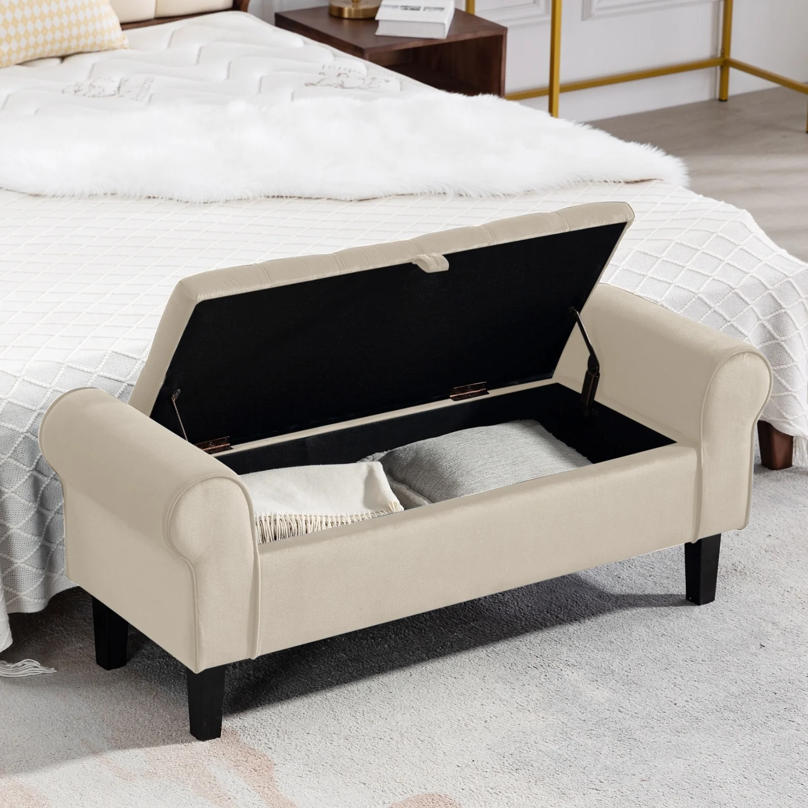 Velvet Storage Bench With Rubber Wood Legs for Bedroom