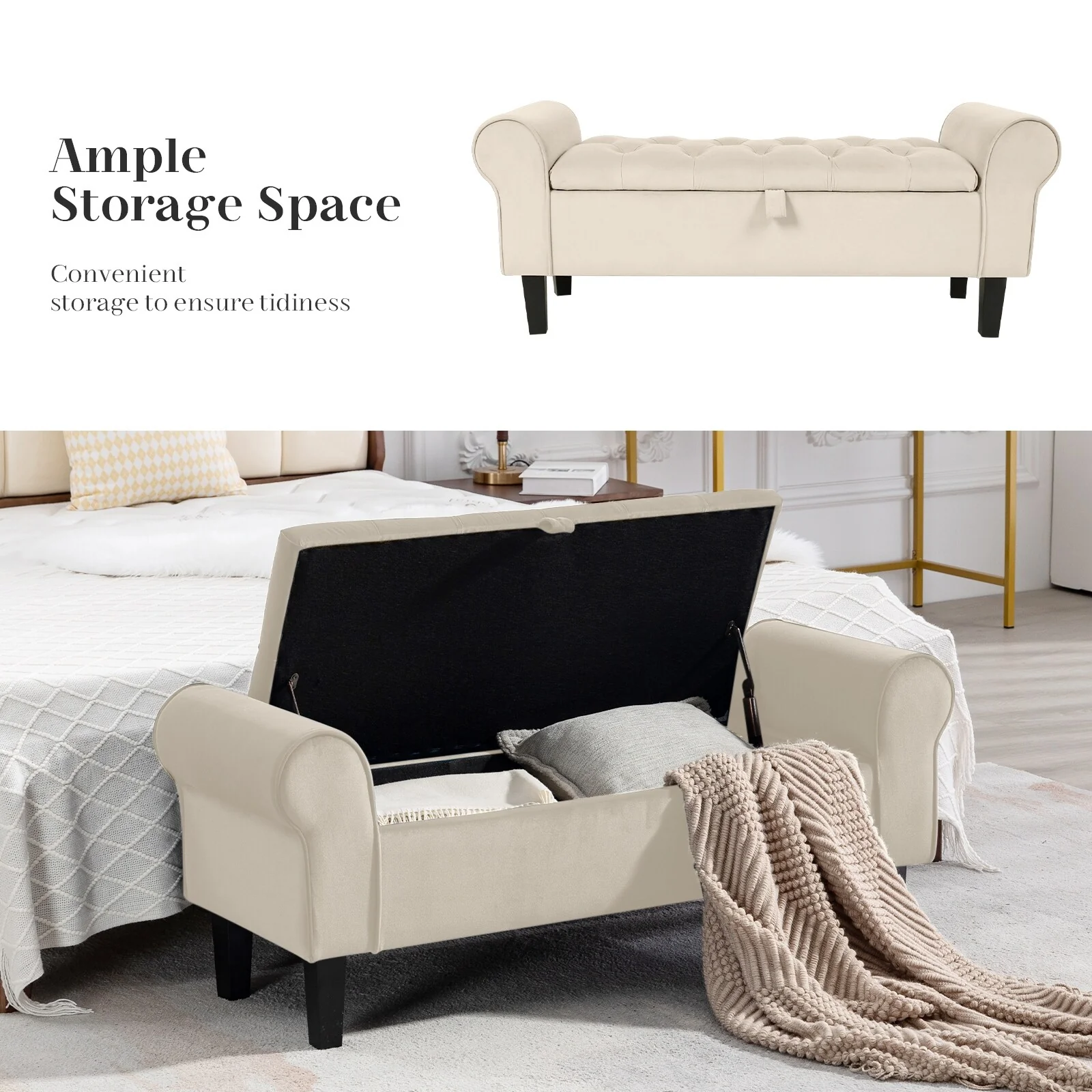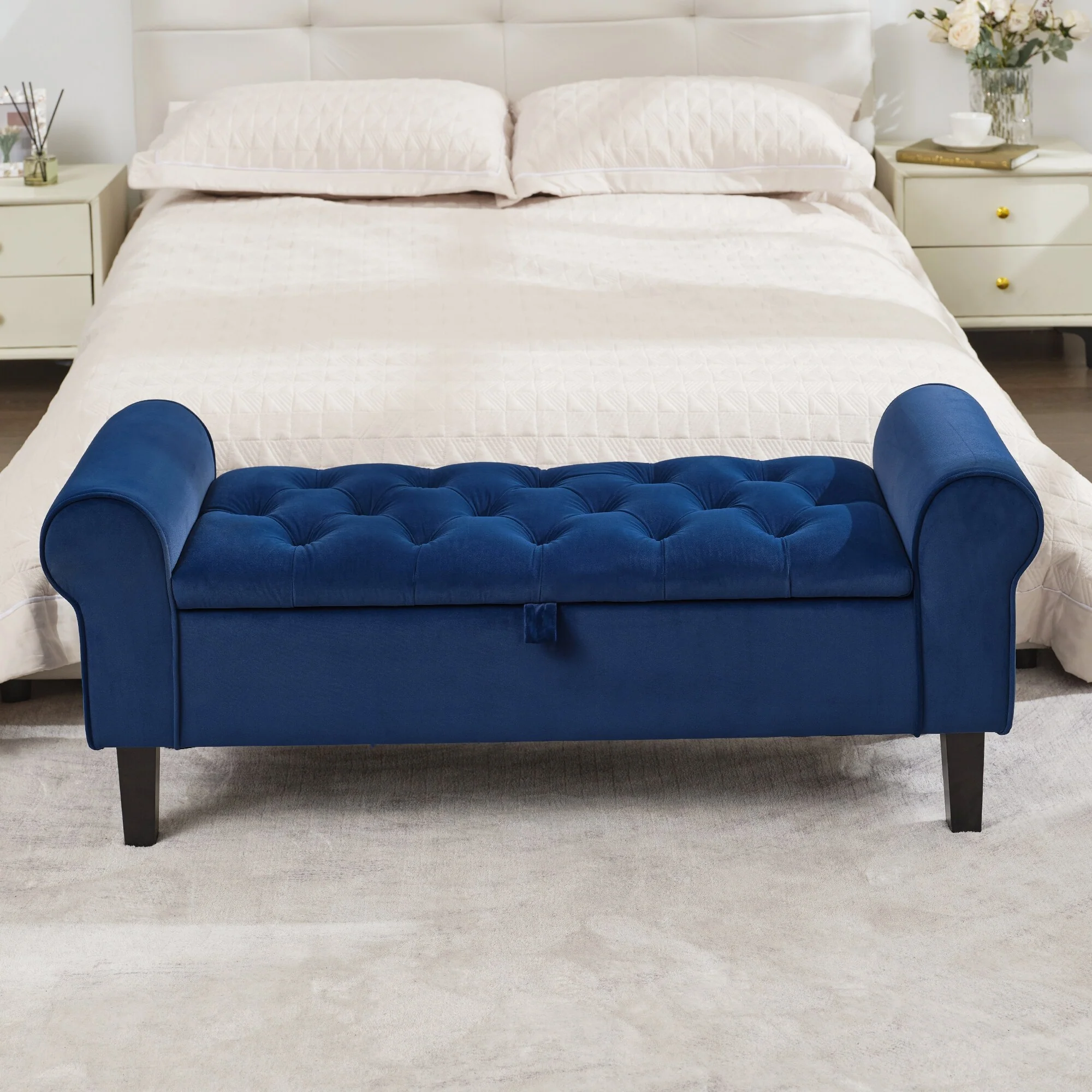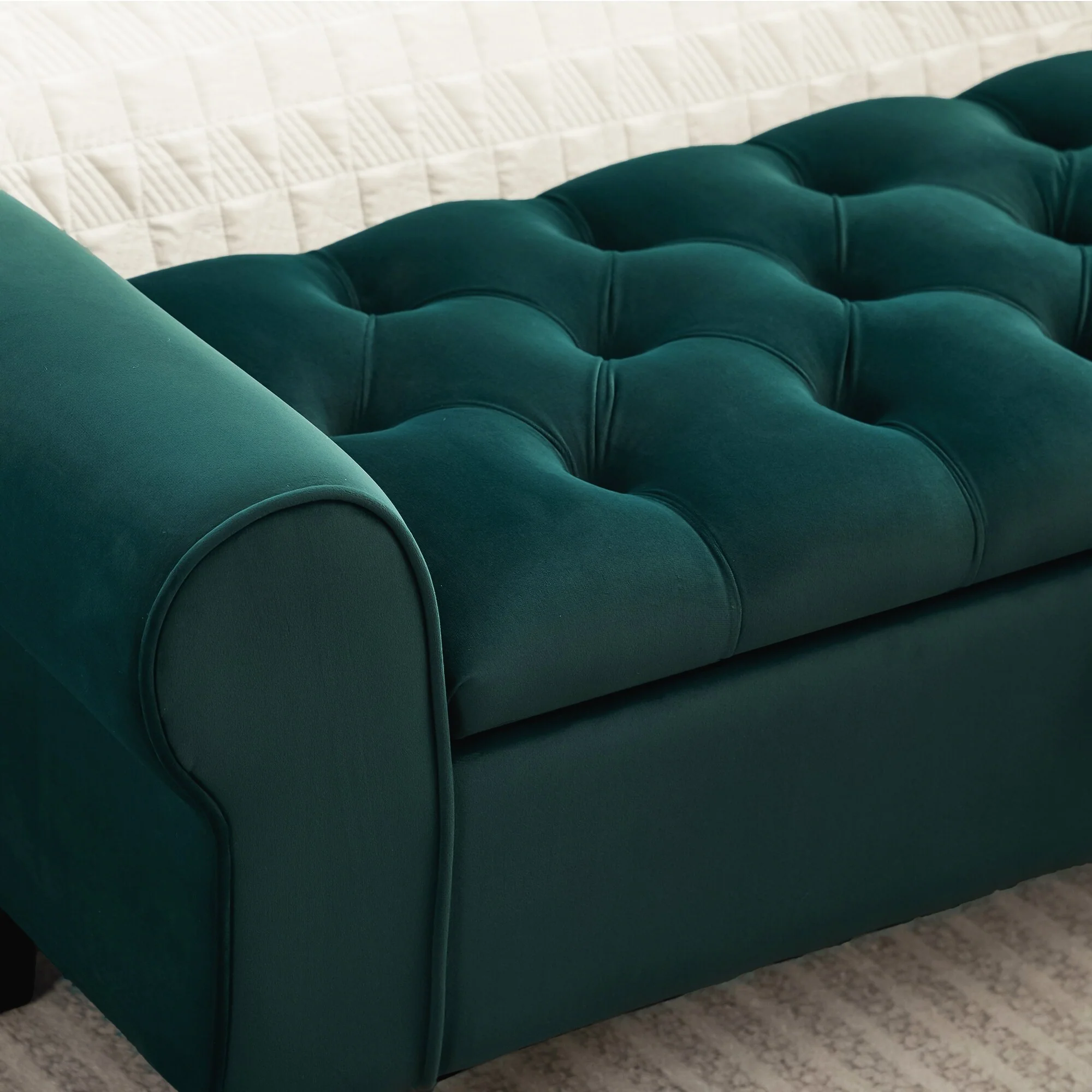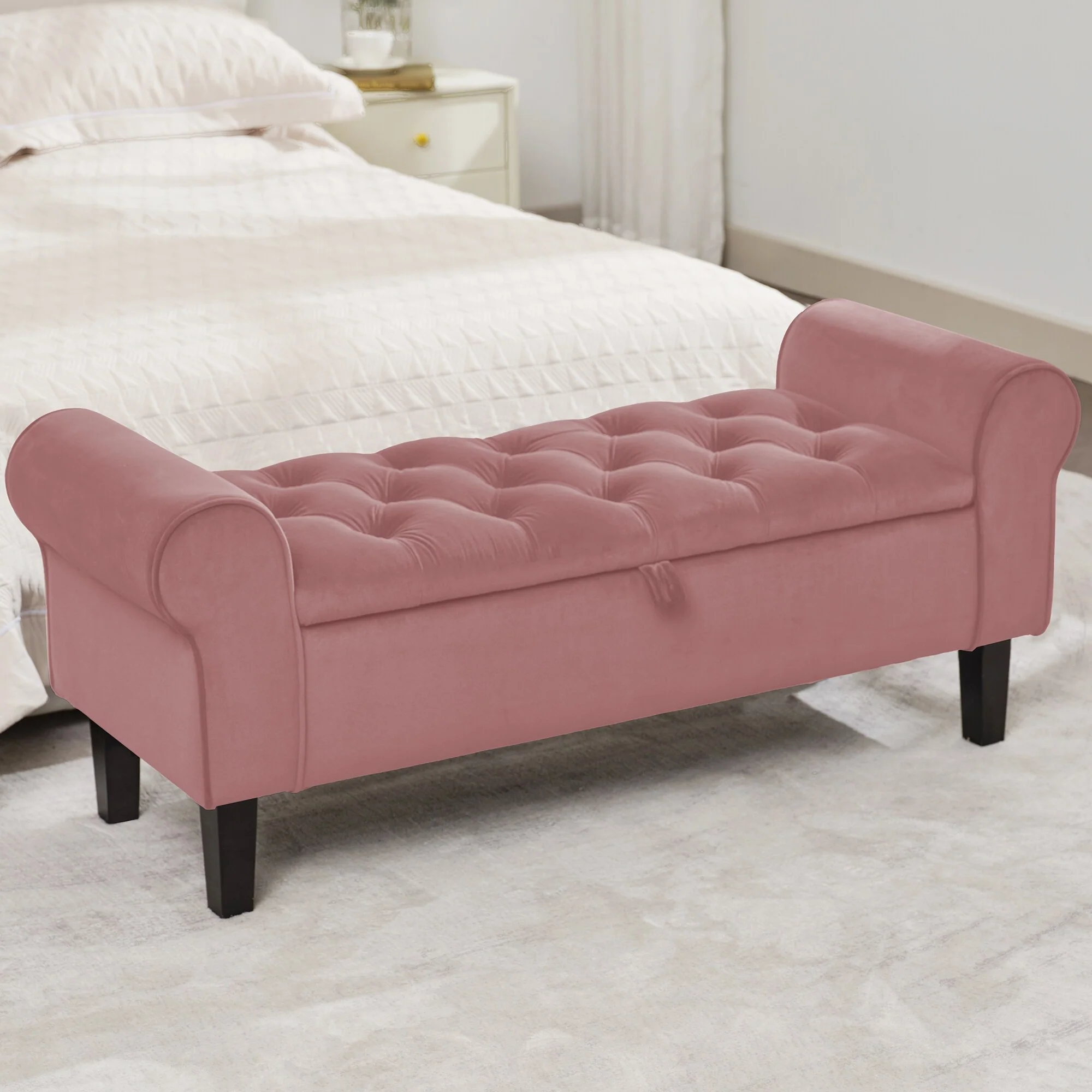 Velvet Storage Bench With Rubber Wood Legs for Bedroom