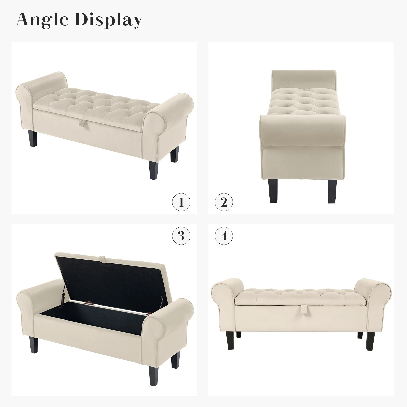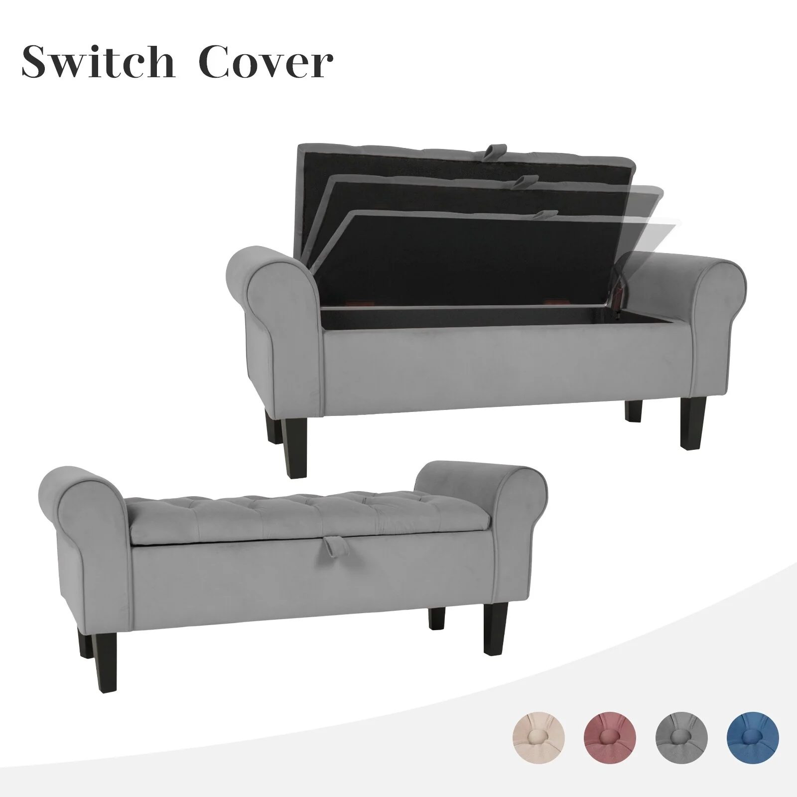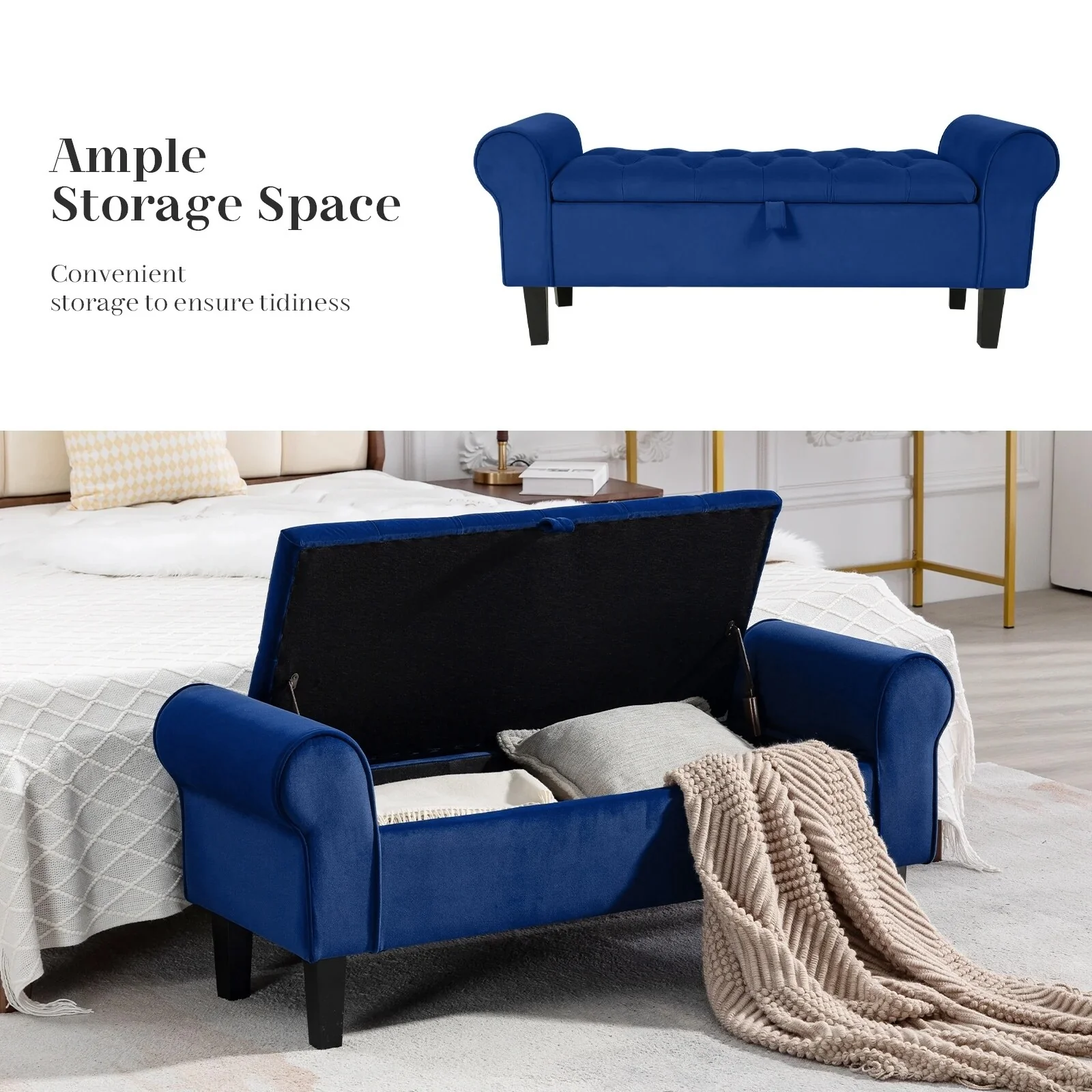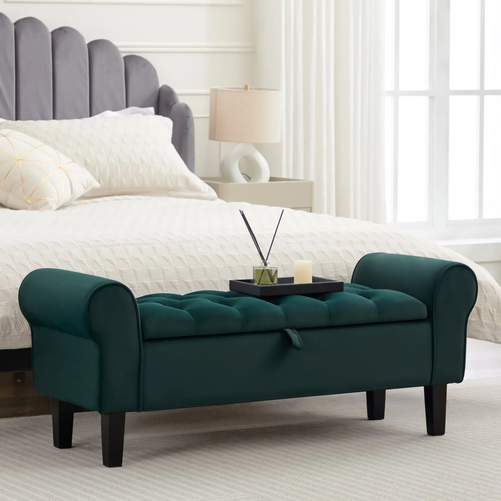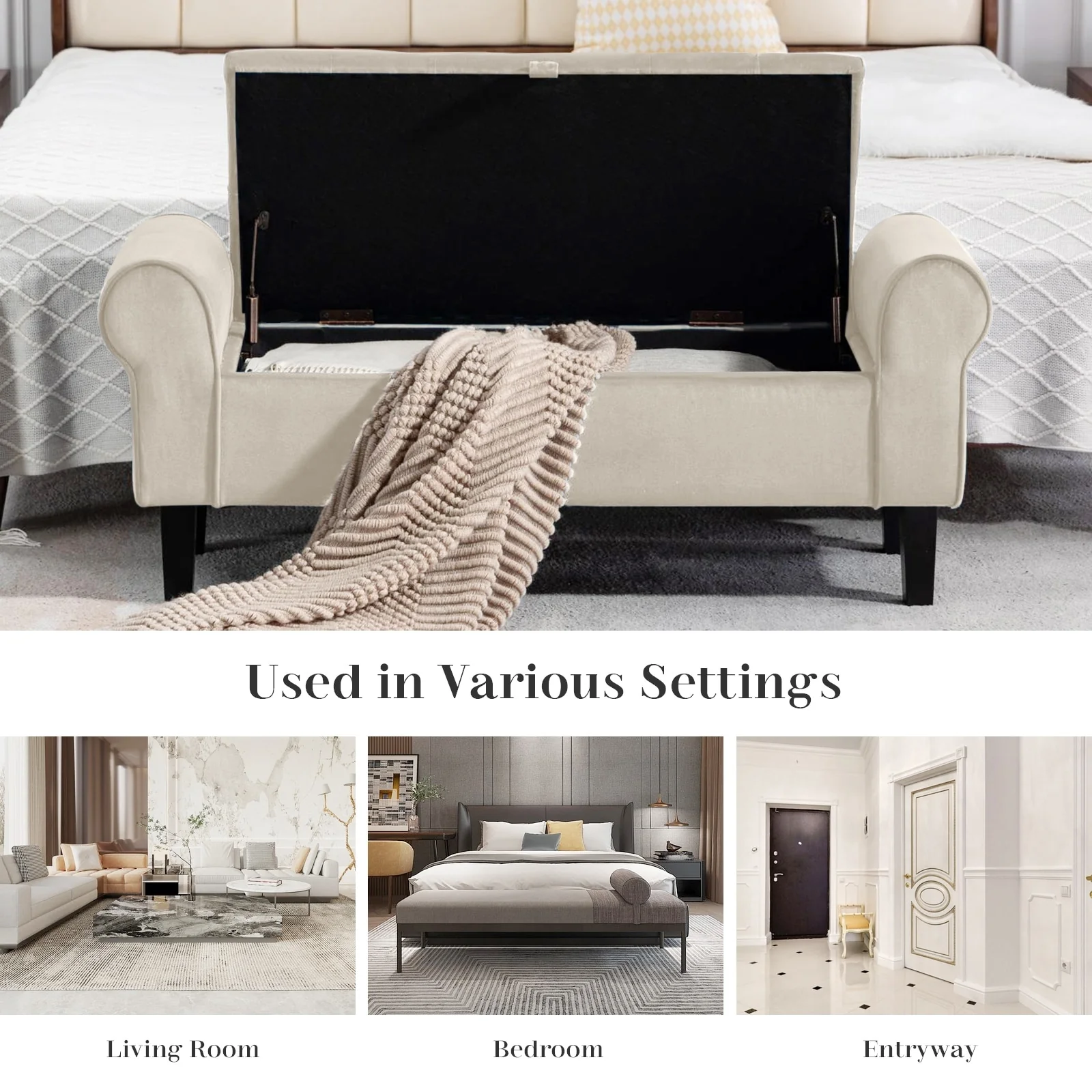 Velvet Storage Bench With Rubber Wood Legs for Bedroom