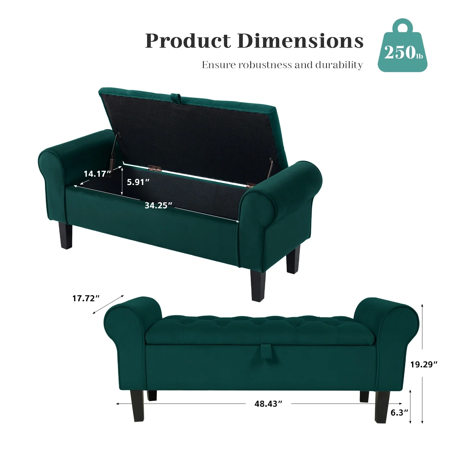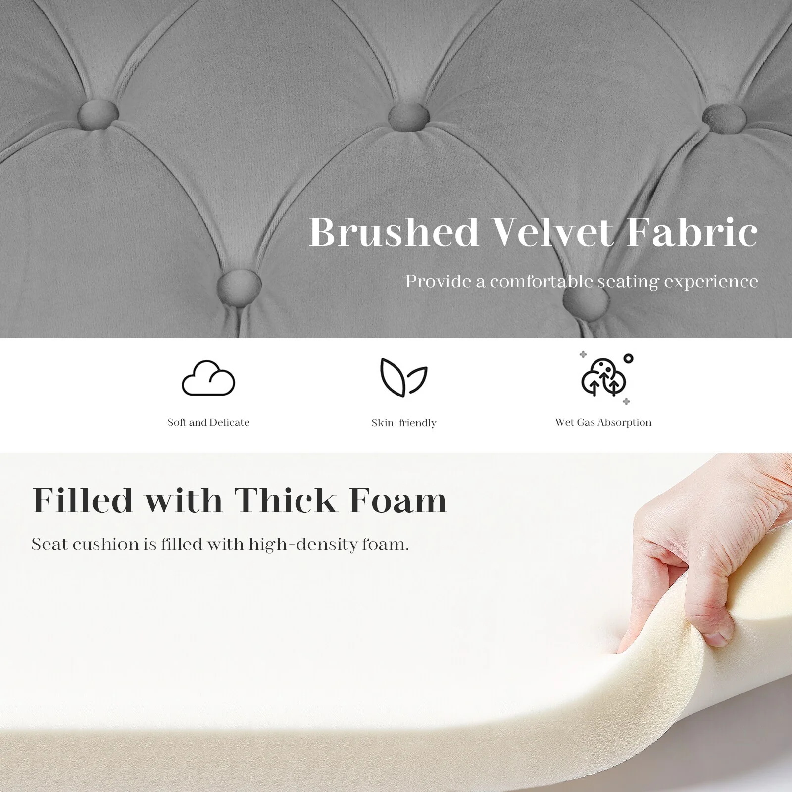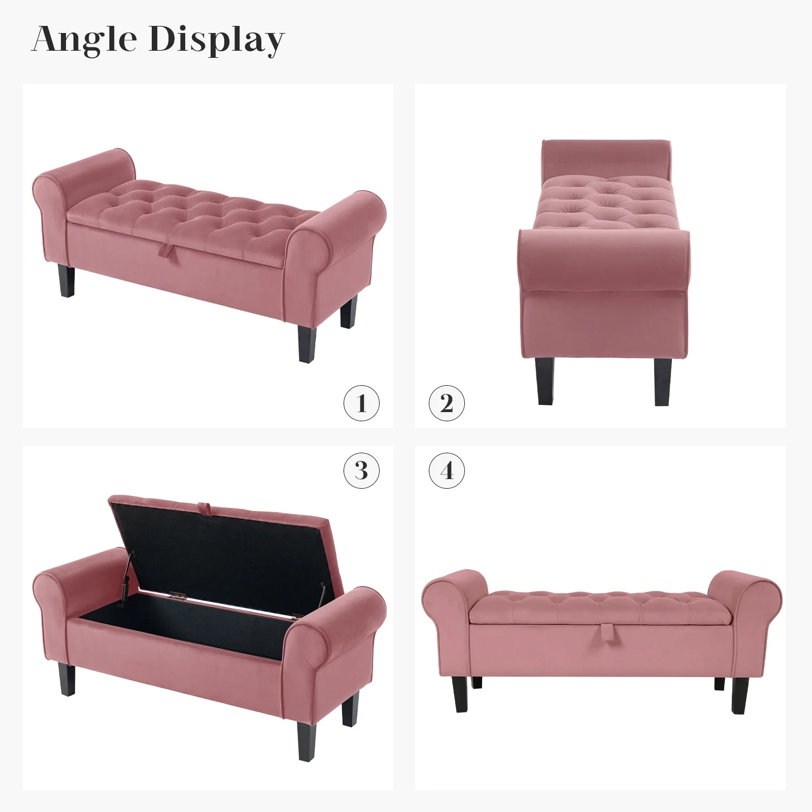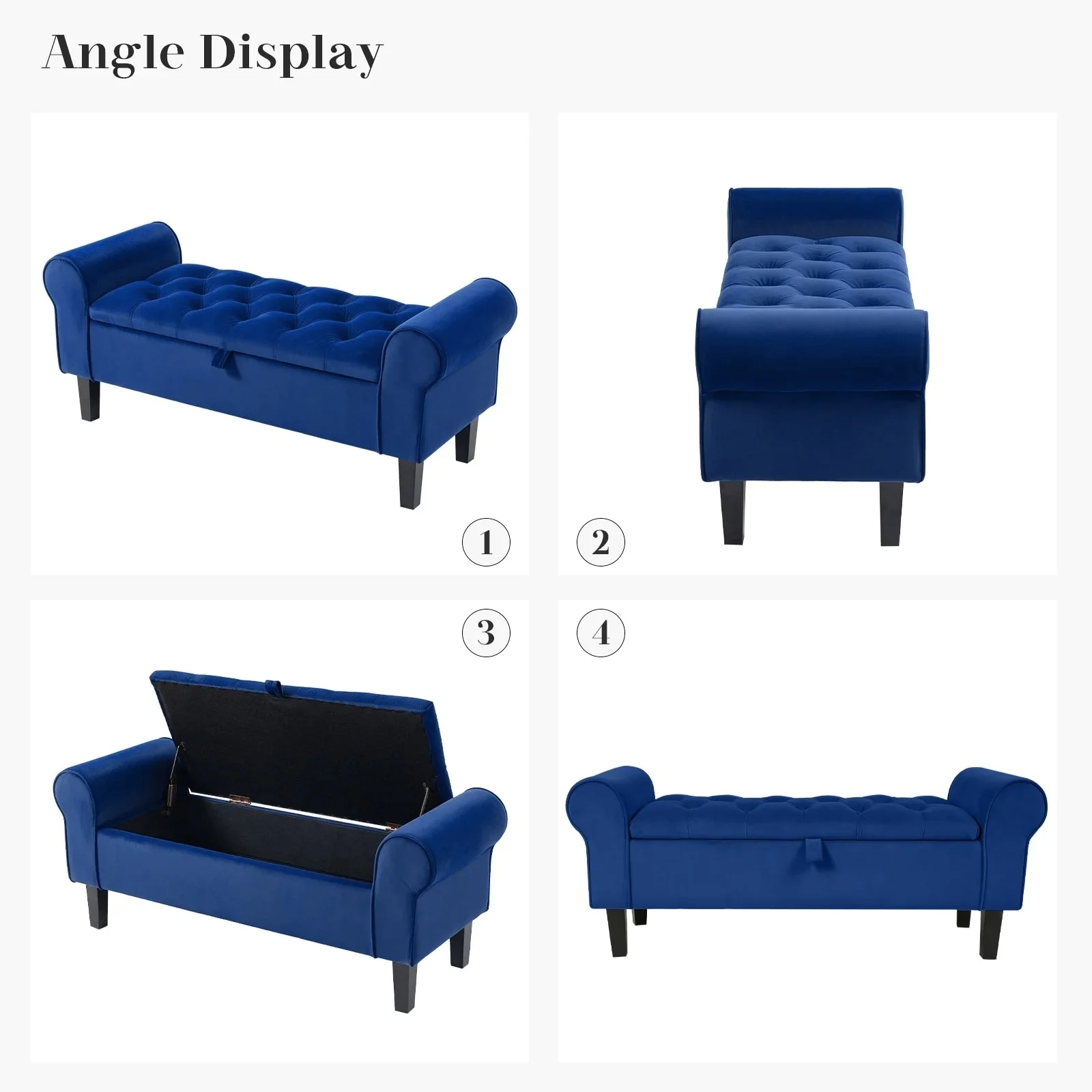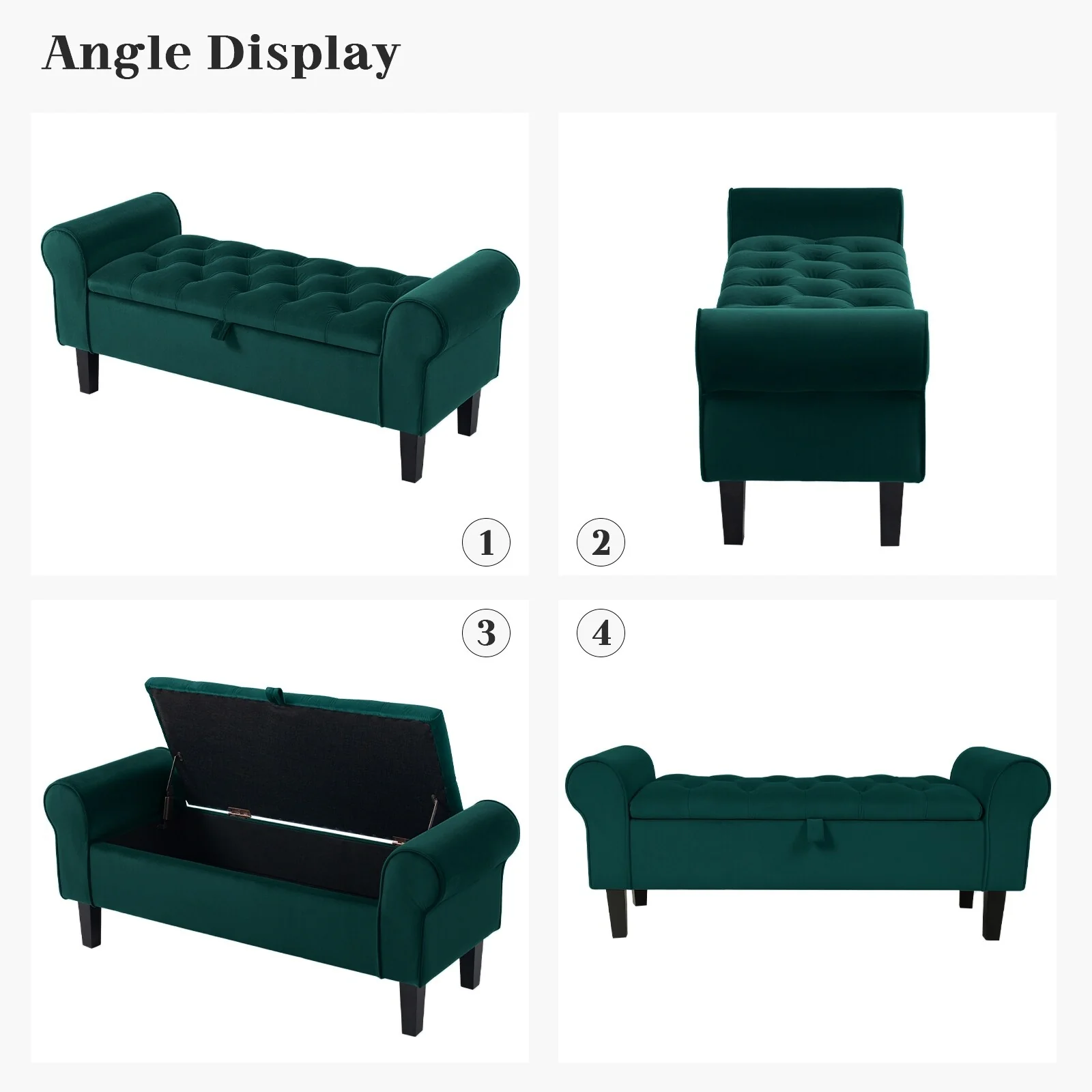 Velvet Storage Bench With Rubber Wood Legs for Bedroom