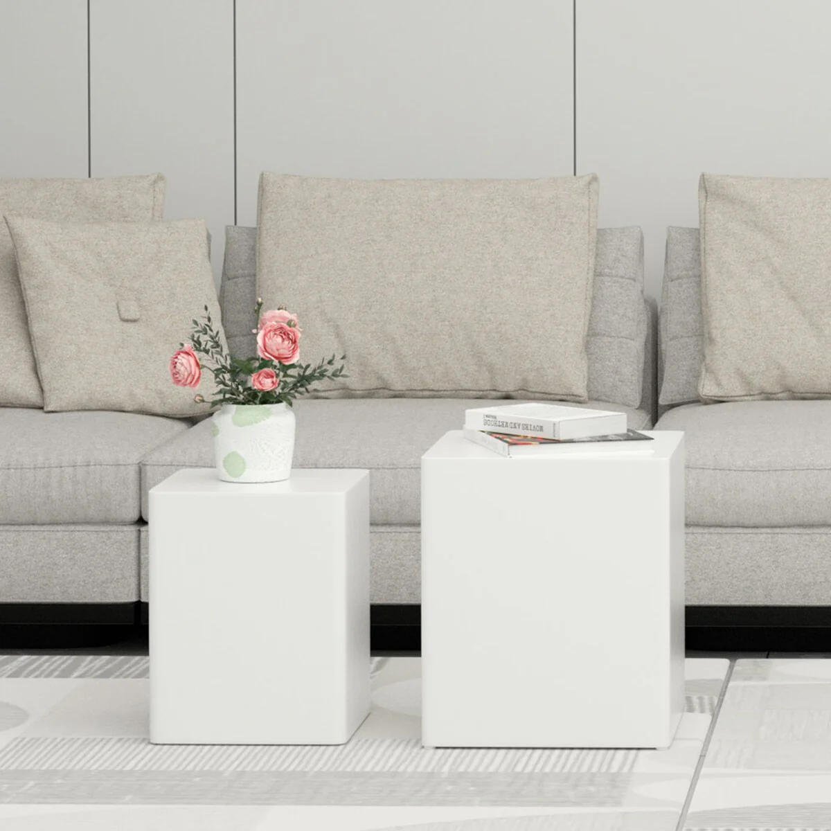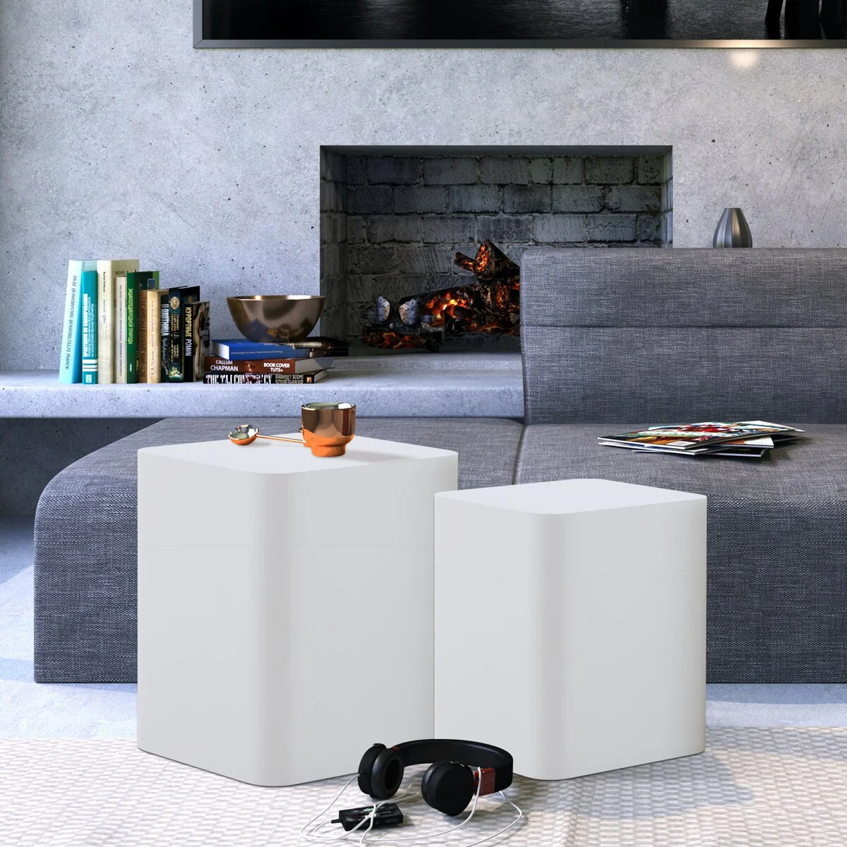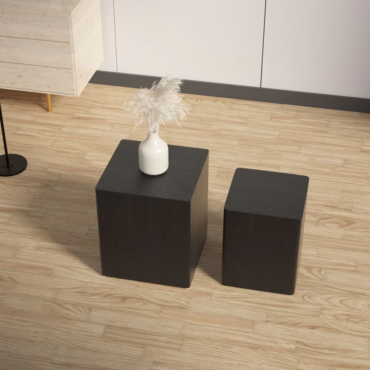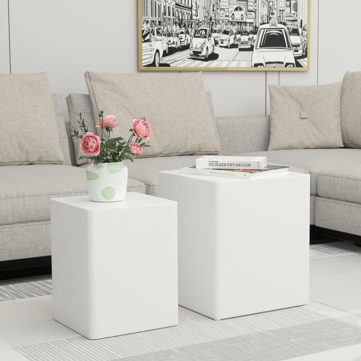Modern Square End Side Coffee Nesting Table (Set of 2)