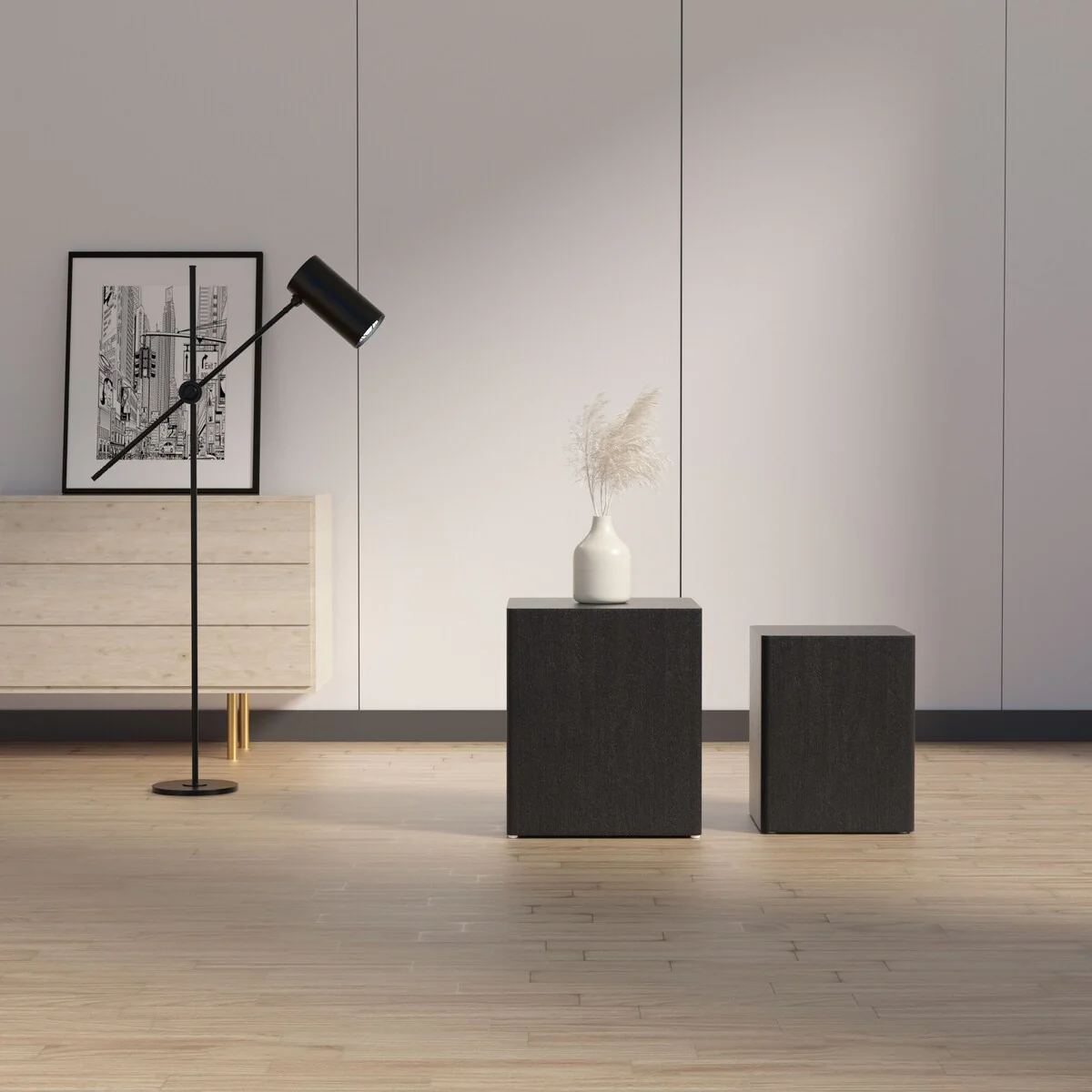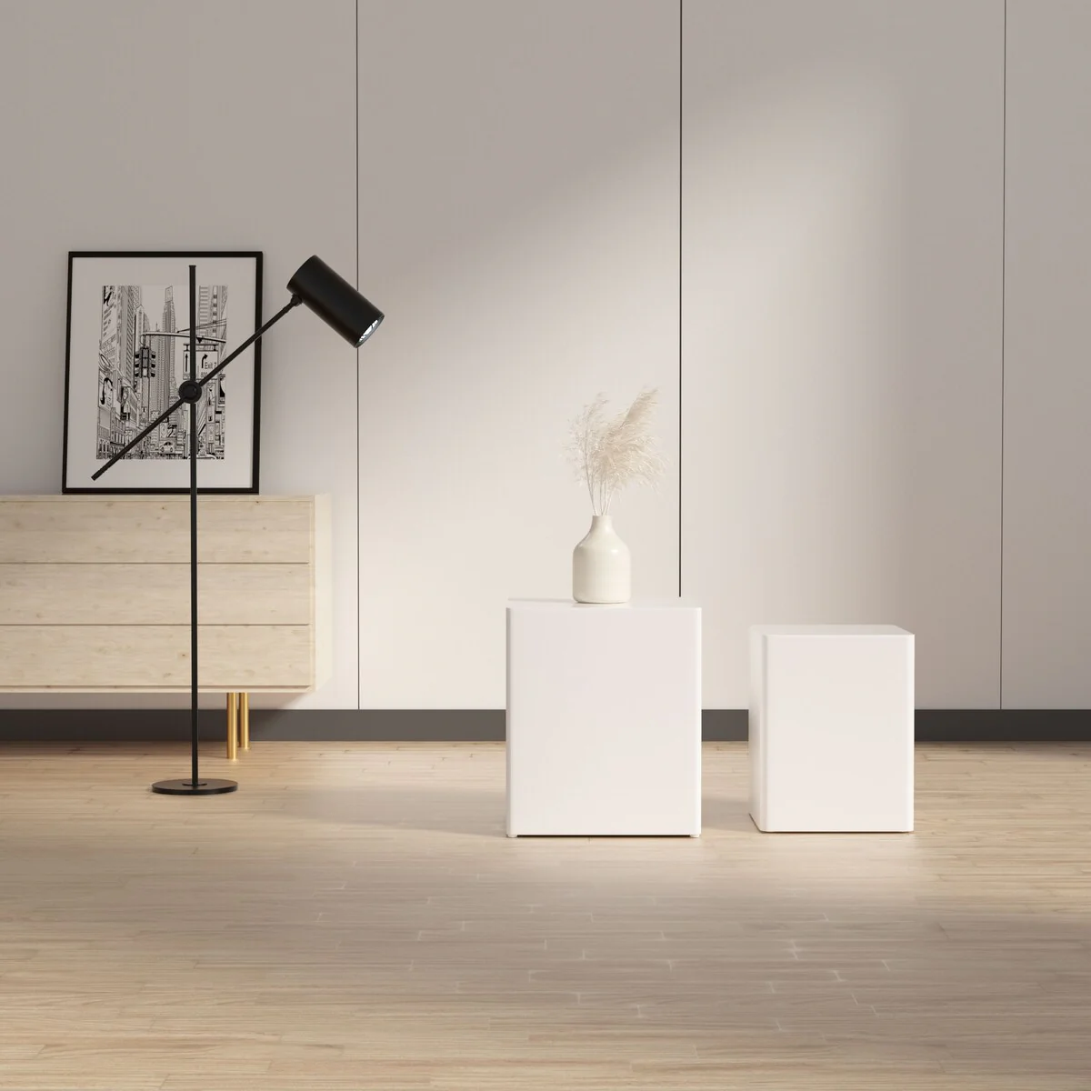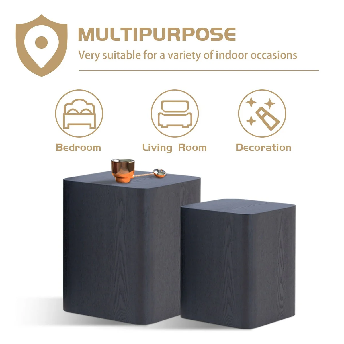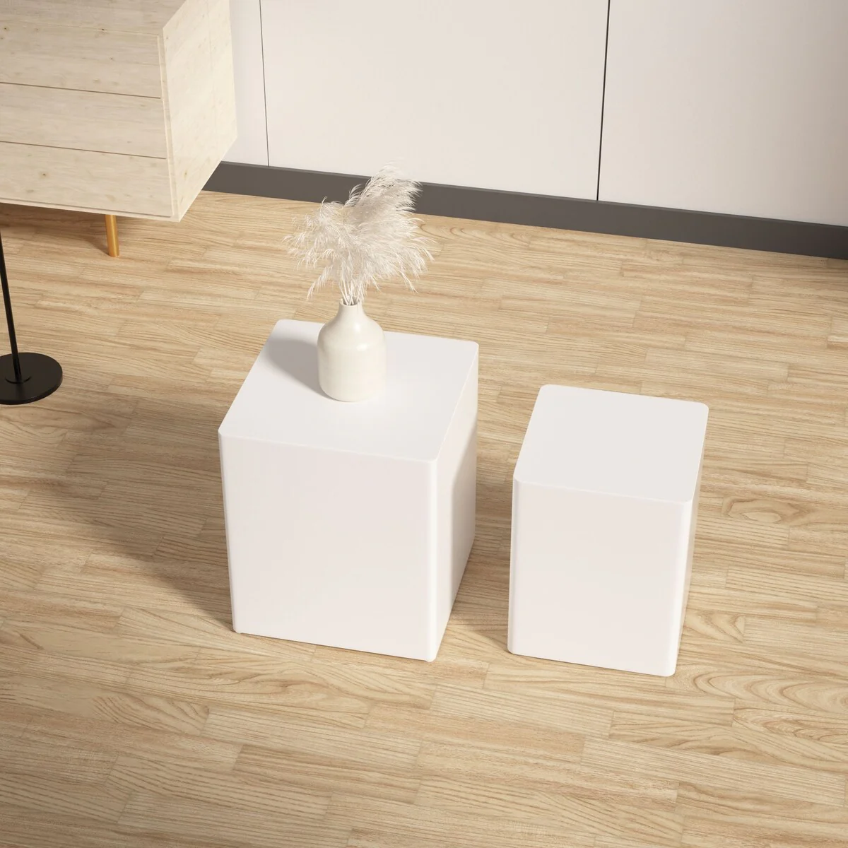 Modern Square End Side Coffee Nesting Table (Set of 2)