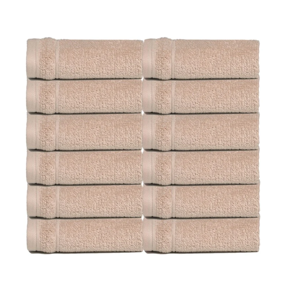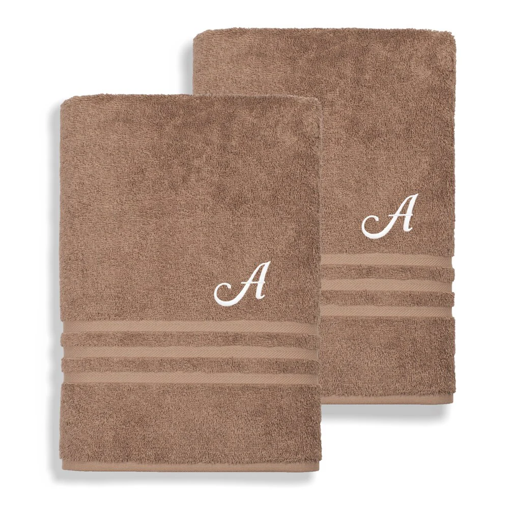 Authentic Hotel and Spa Omni Turkish Cotton Terry Set of 2 Latte Brown Bath Towels with White Script Monogrammed Initial