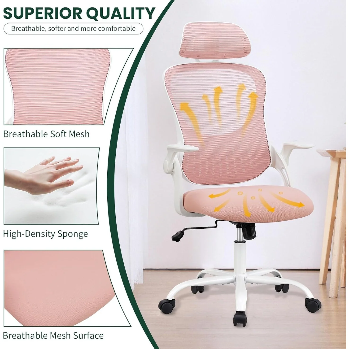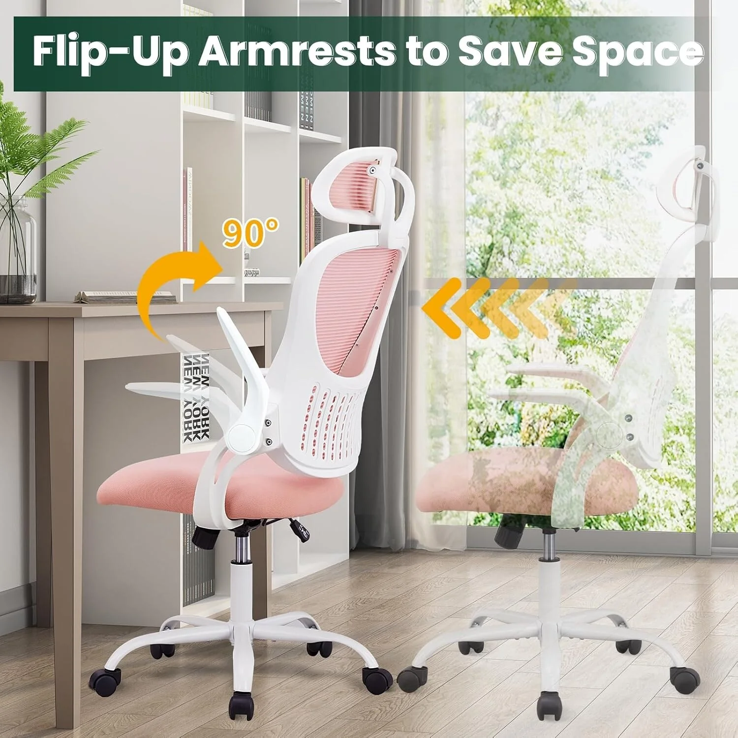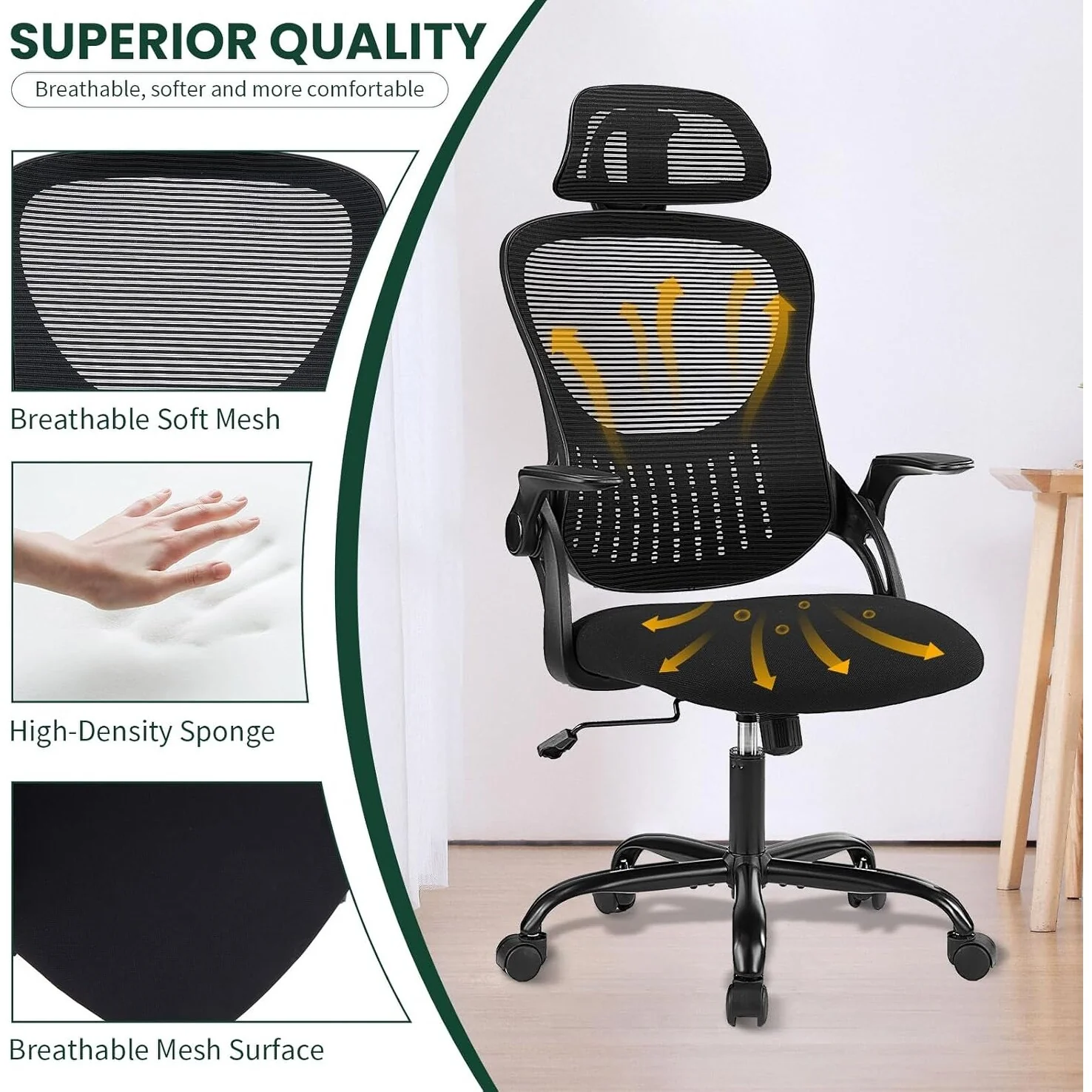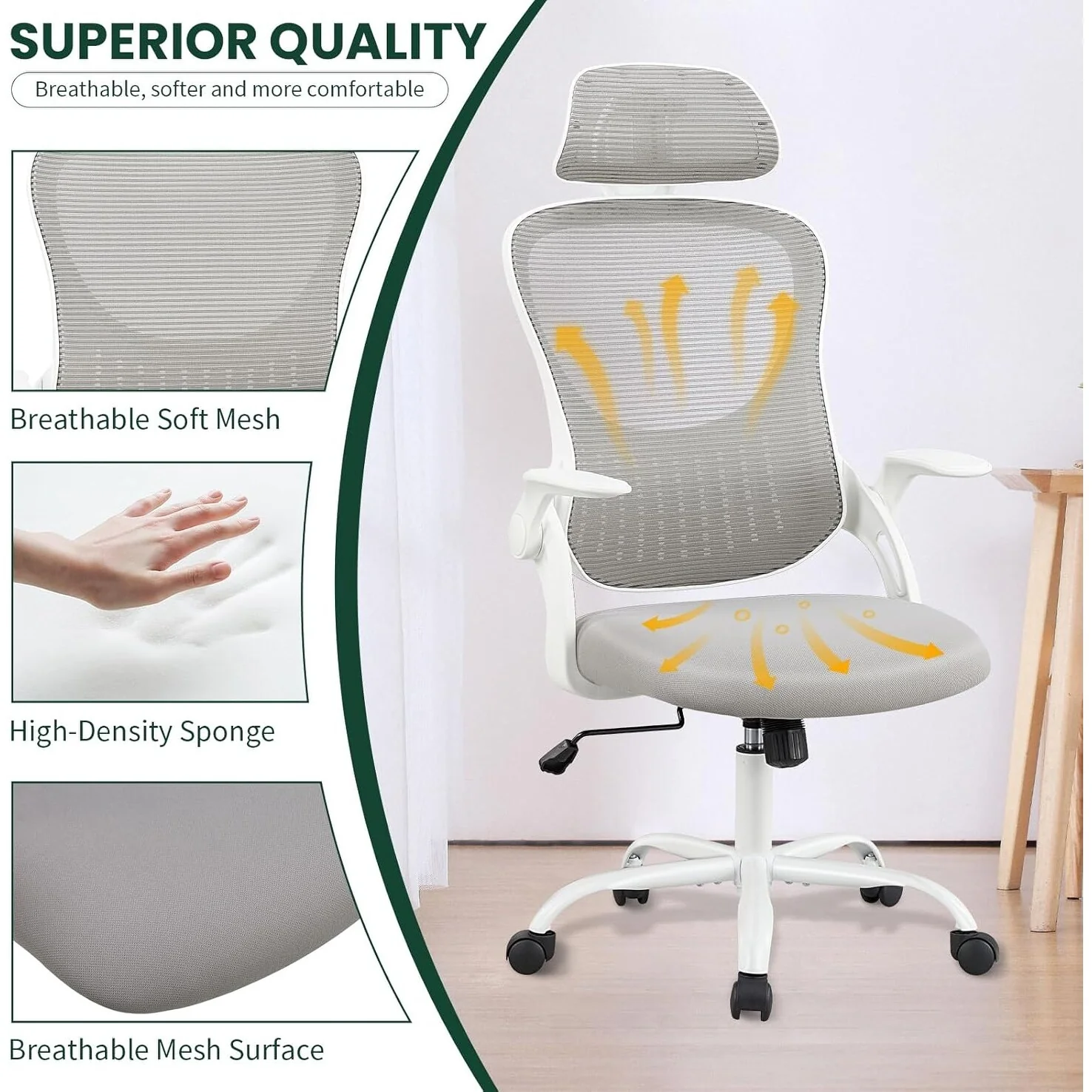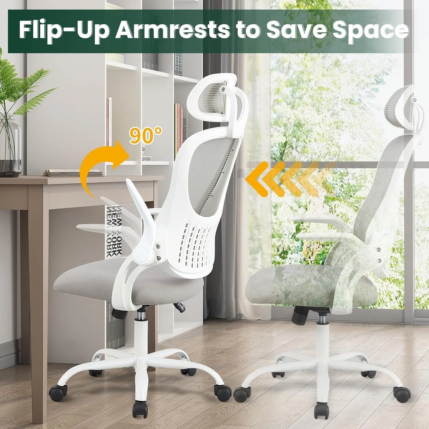 Home Office Desk Chairs, Ergonomic Computer High-Back Mesh Rolling Work Task Chairs with Wheels and Adjustable Headrests, Armest