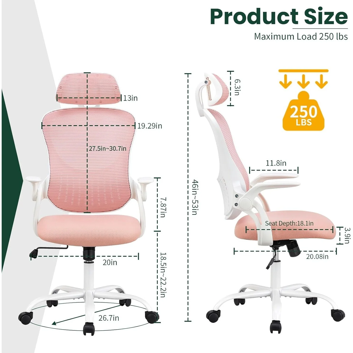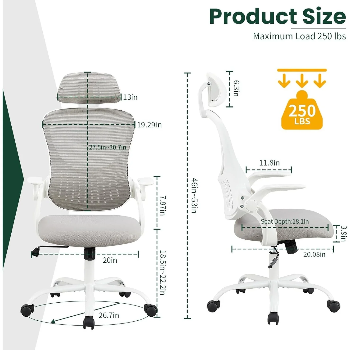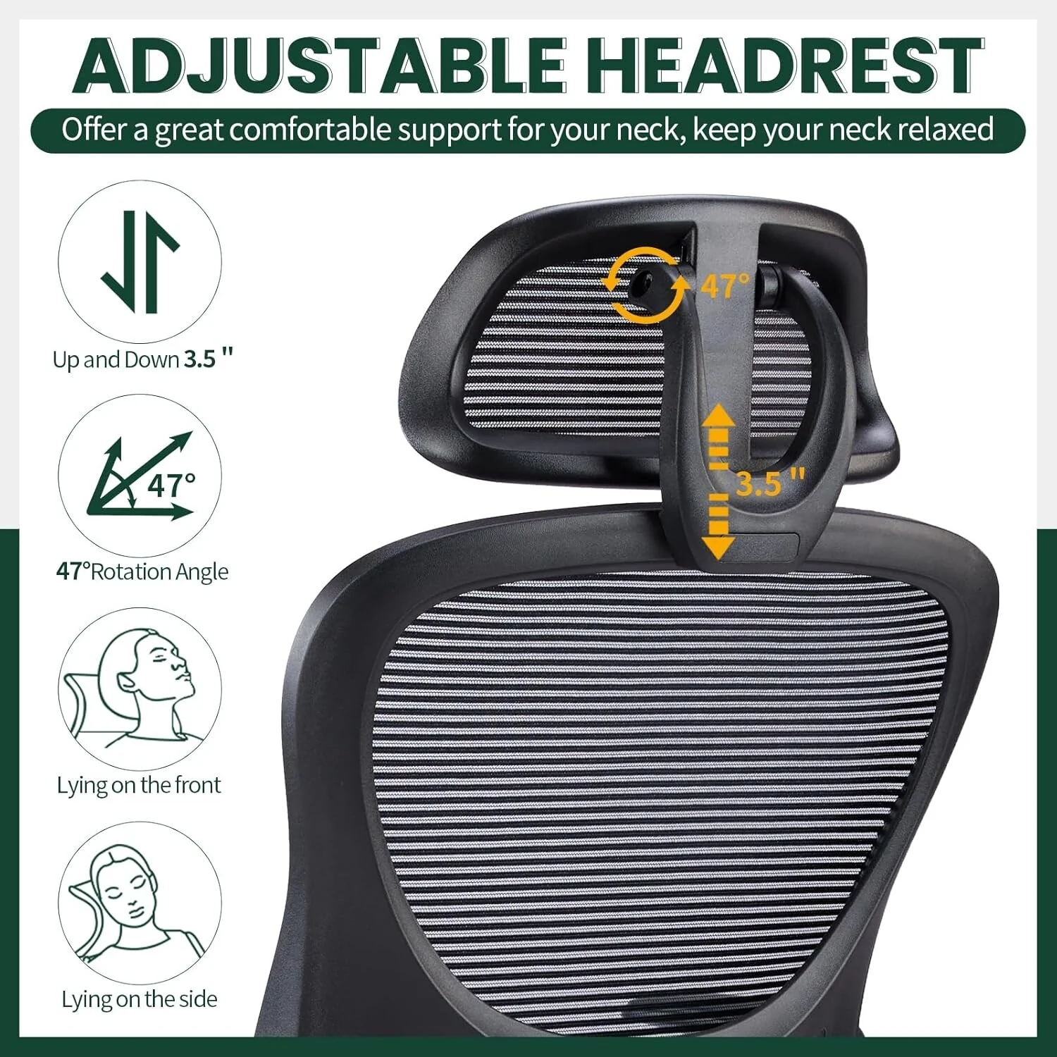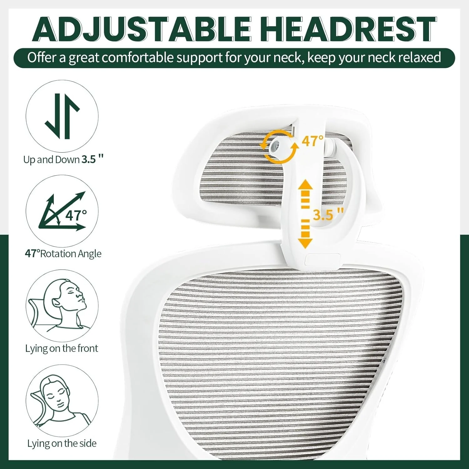 Home Office Desk Chairs, Ergonomic Computer High-Back Mesh Rolling Work Task Chairs with Wheels and Adjustable Headrests, Armest