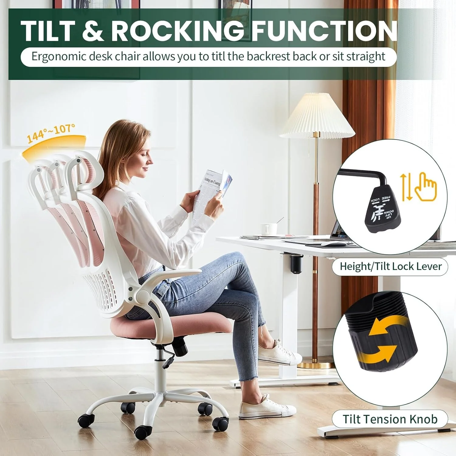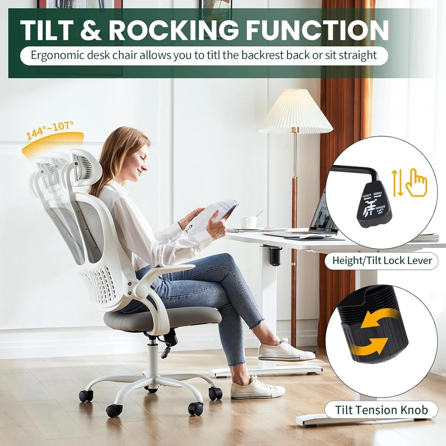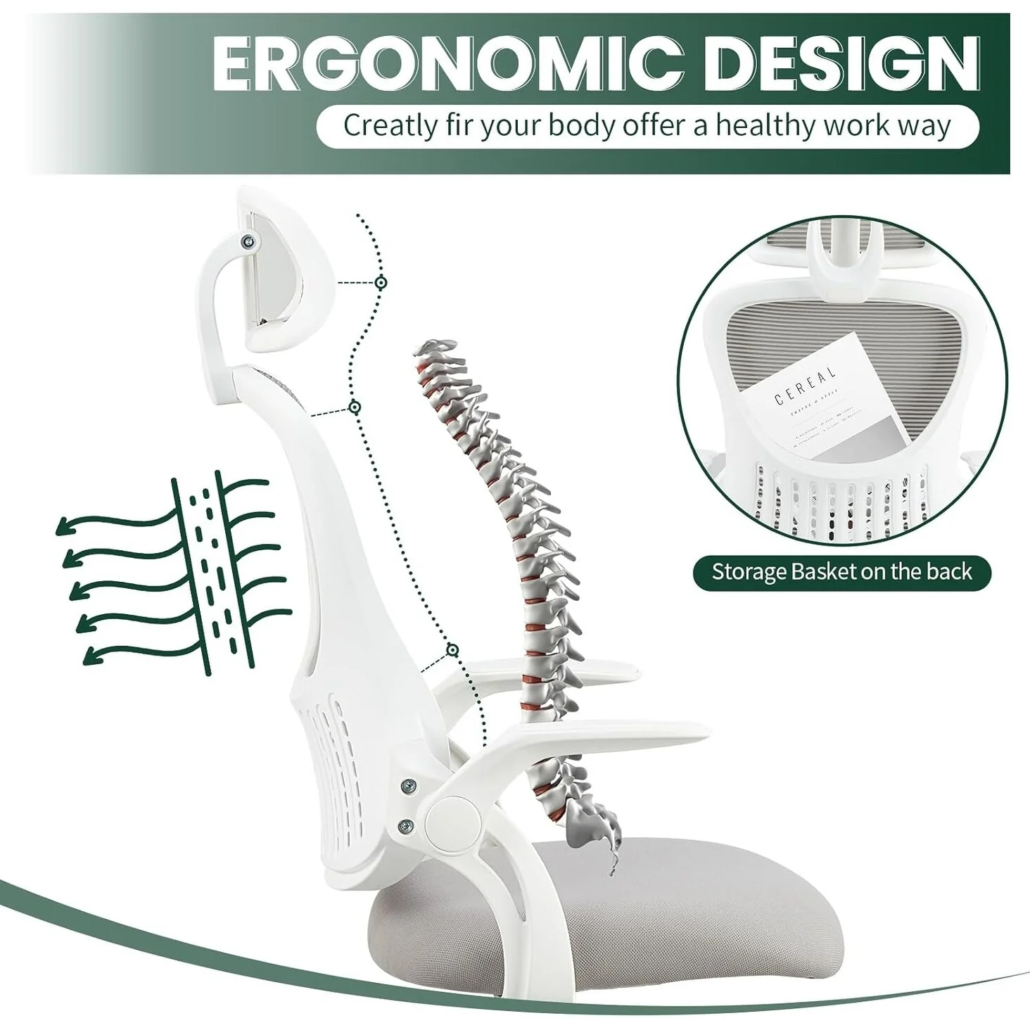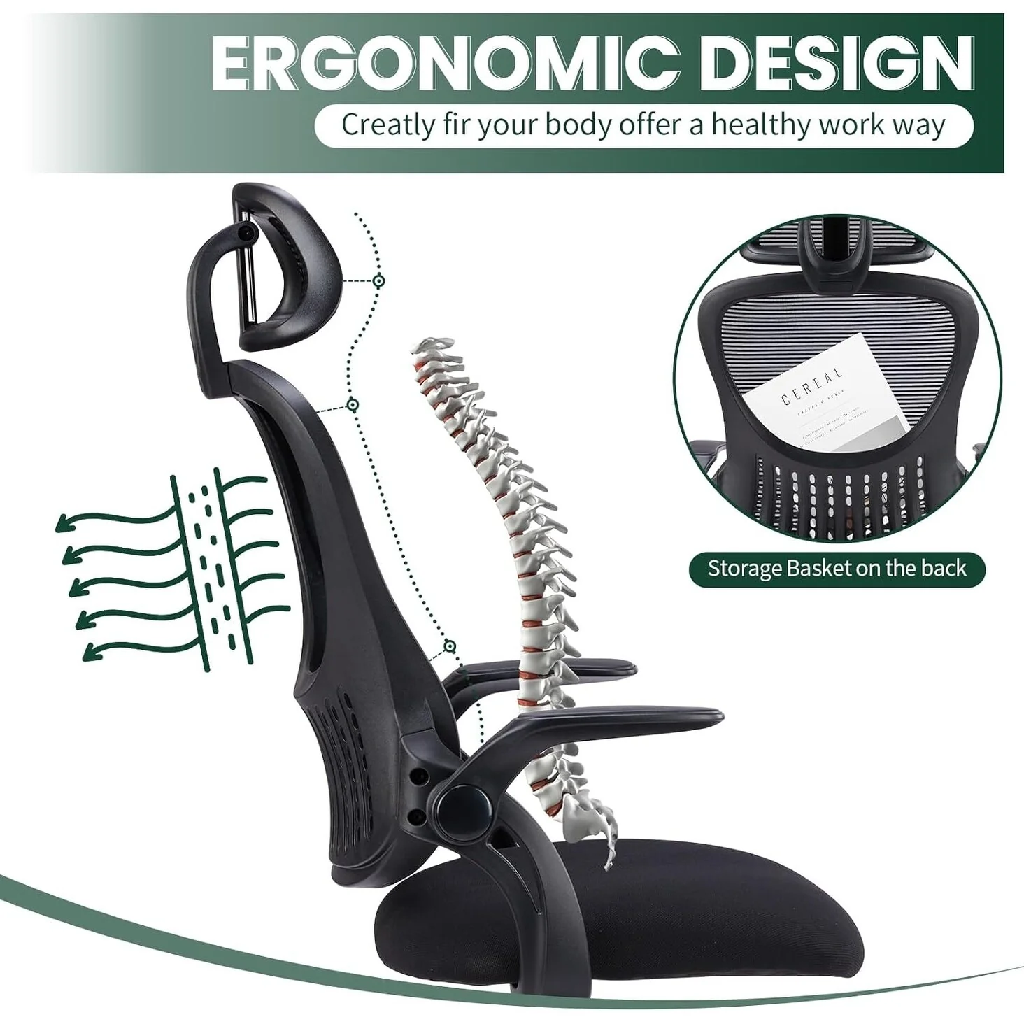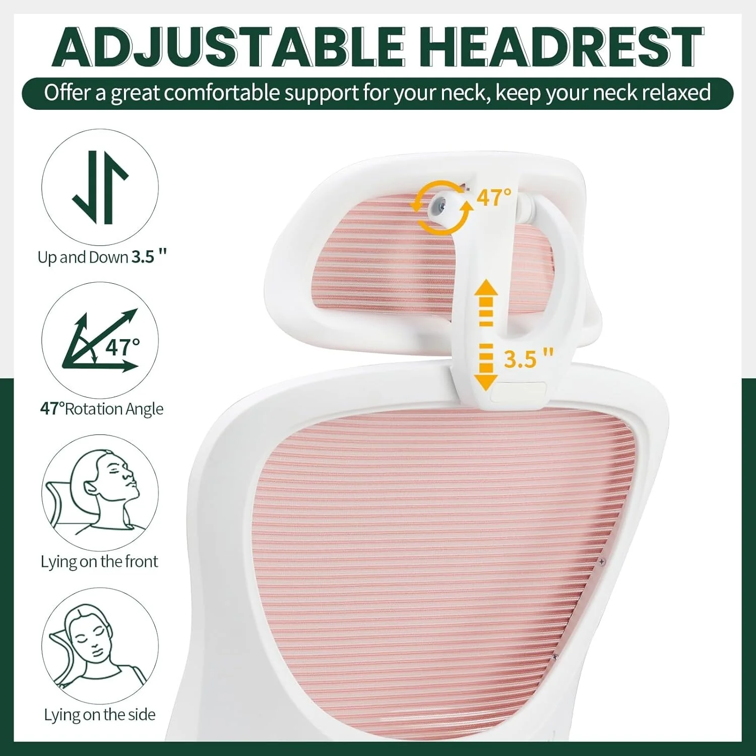 Home Office Desk Chairs, Ergonomic Computer High-Back Mesh Rolling Work Task Chairs with Wheels and Adjustable Headrests, Armest