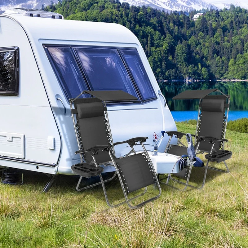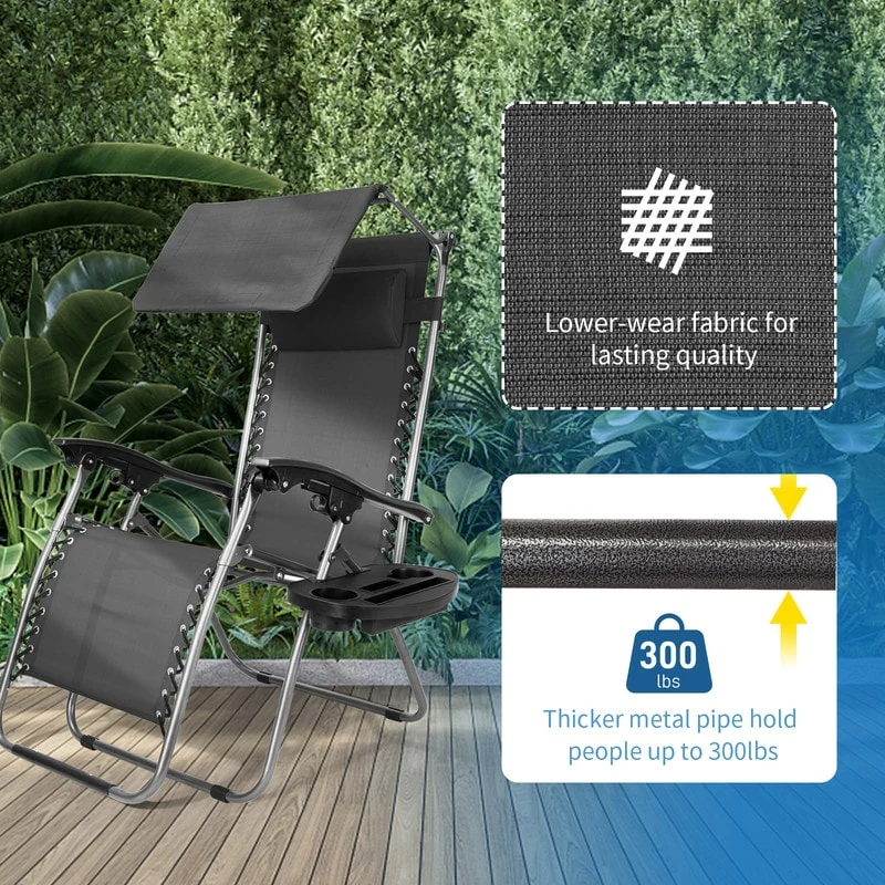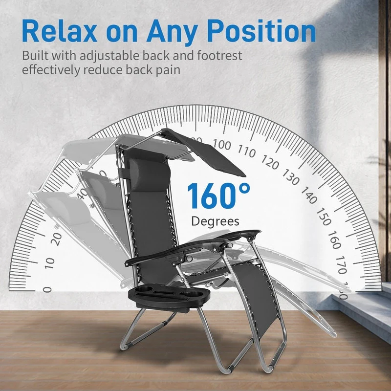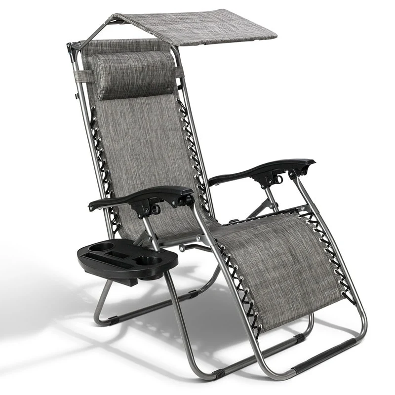 Patio Single Zero Gravity Folding Lounge Recliner Chair with Canopy and Cup Holder