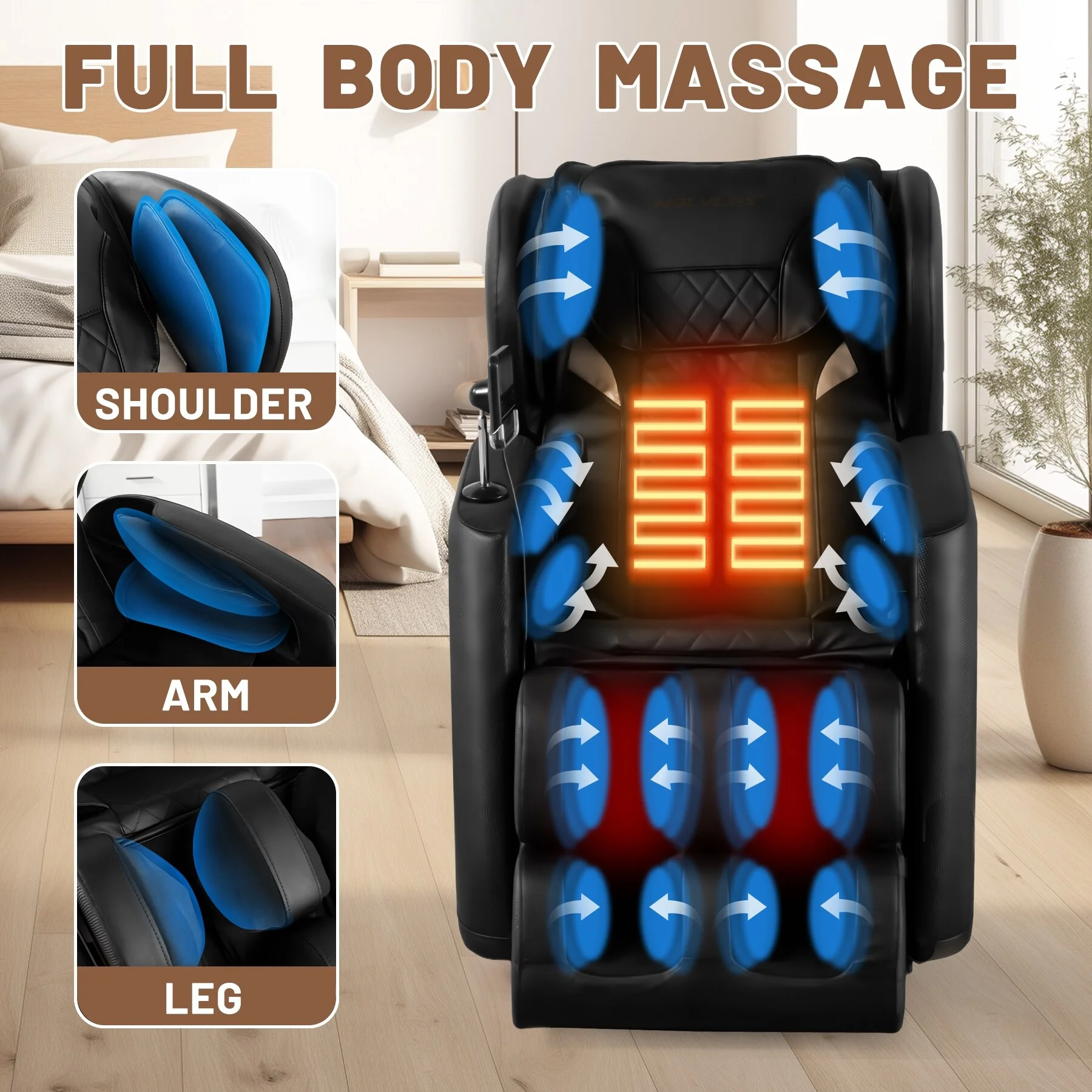 Black Zero Gravity Full Body Massage Chair with Air Pressure, Heated Foot Rollers, Bluetooth Connectivity and Reclining Function